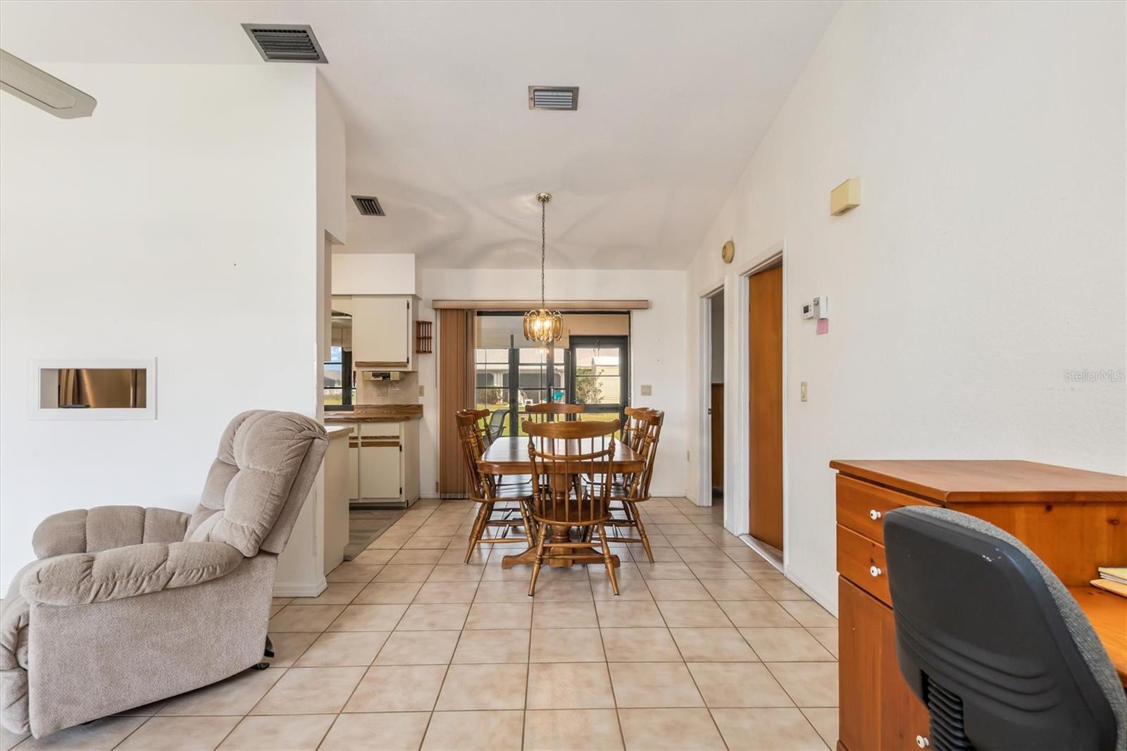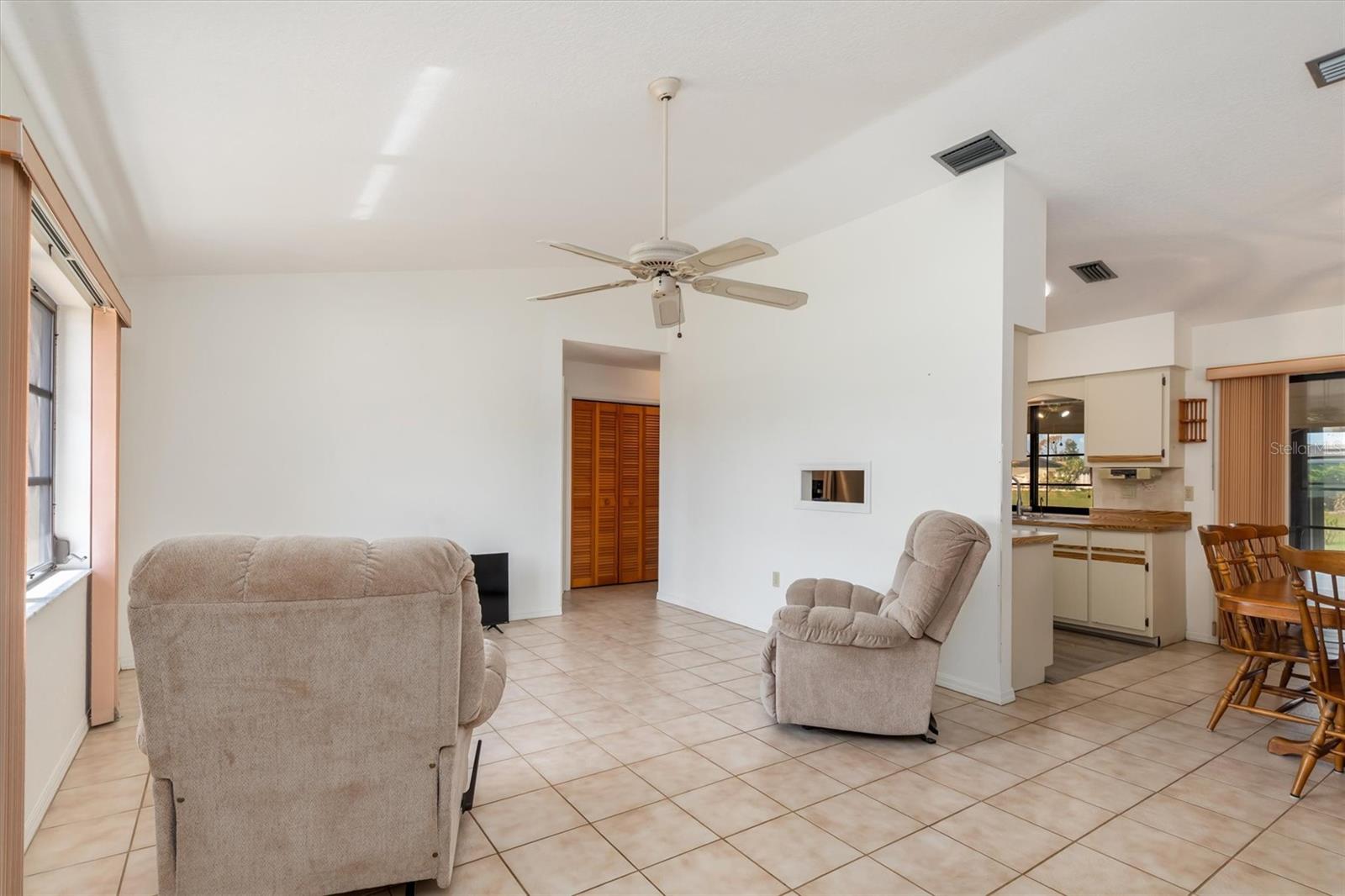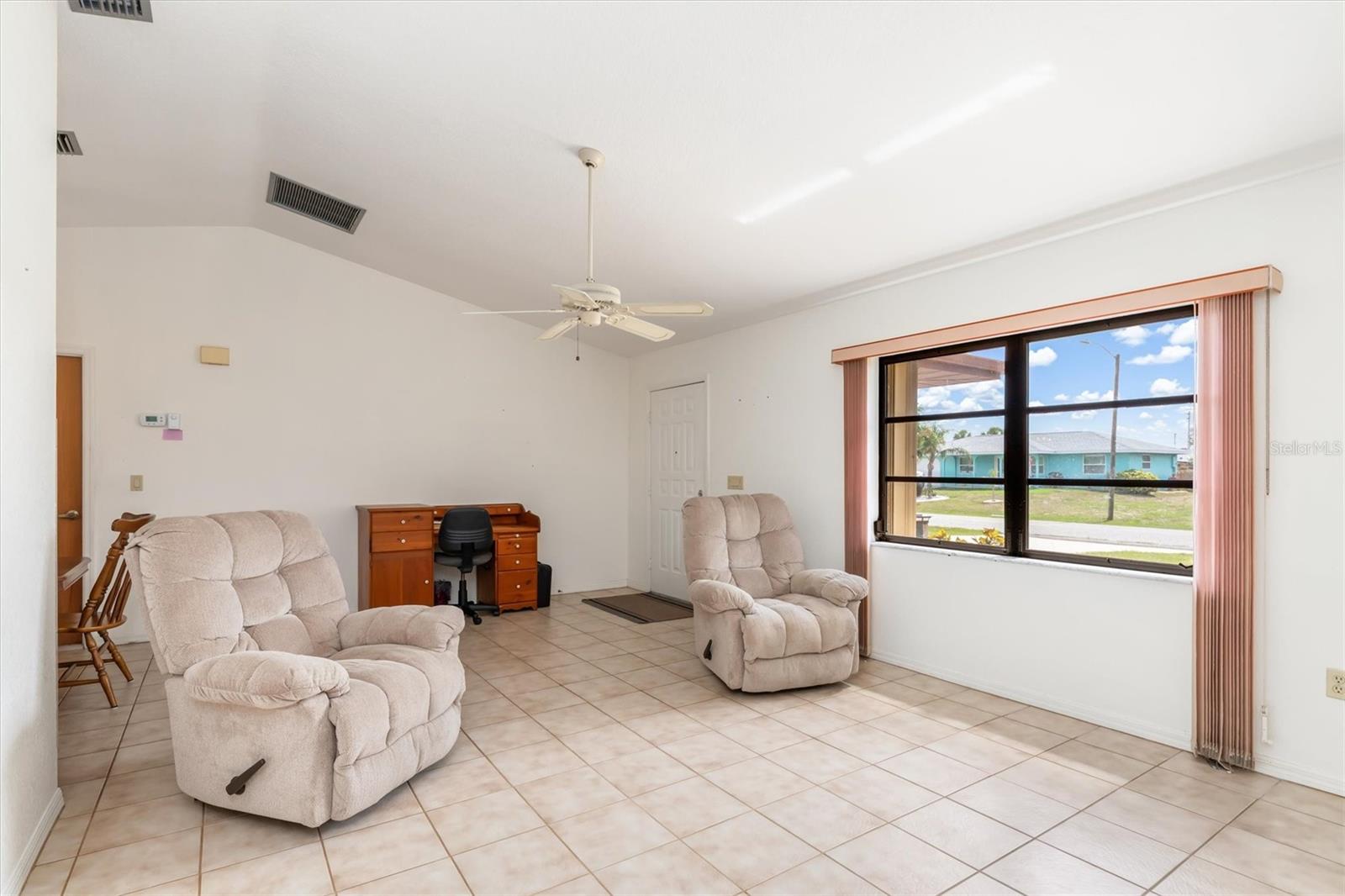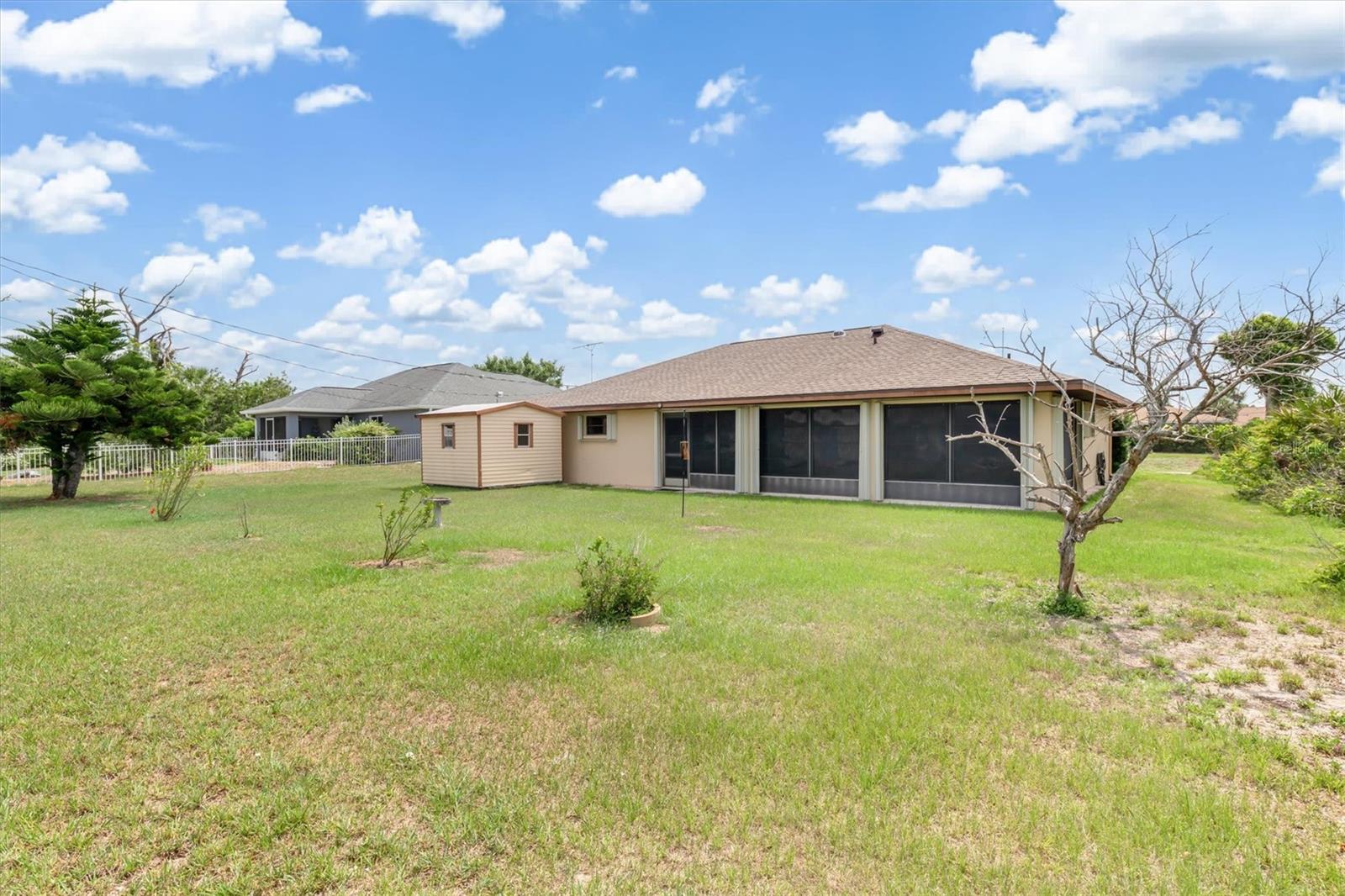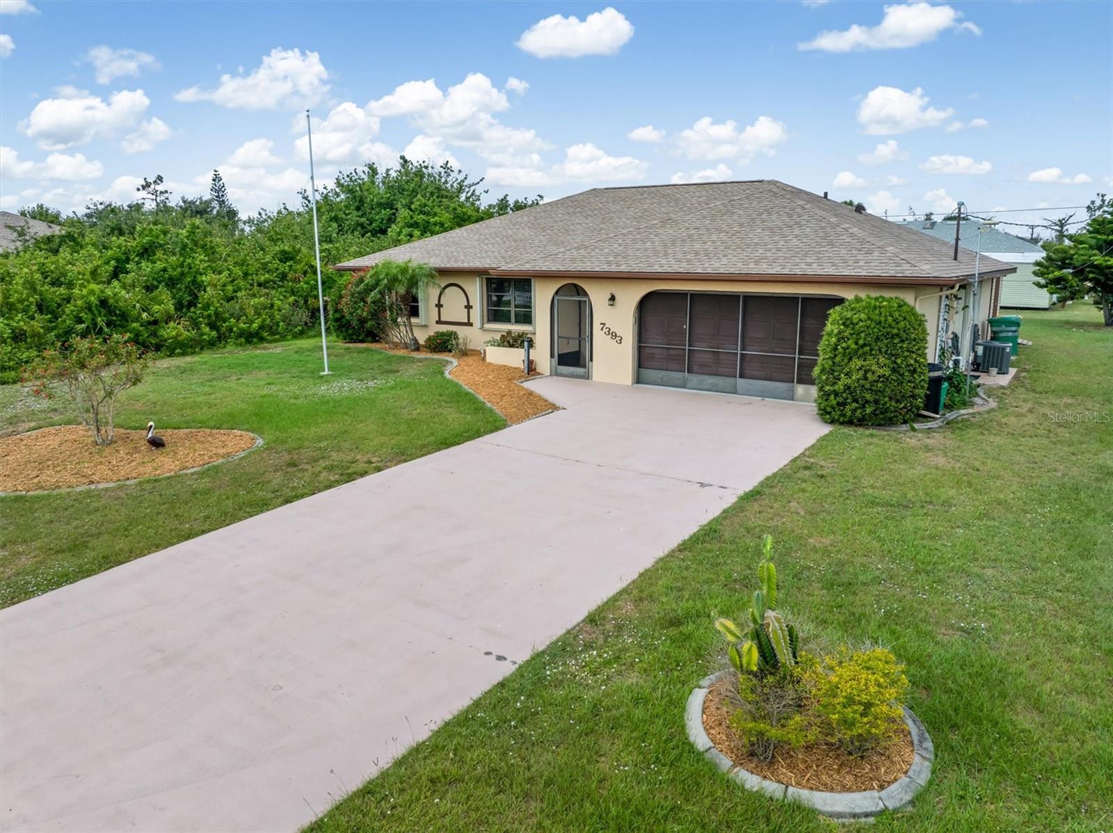 Under contract-accepting backup offers. This well-maintained 1987-built concrete block home has been lovingly cared for by its original owner, offering a solid foundation and timeless appeal. The split floor plan ensures privacy, while vaulted ceilings and a Florida room with air conditioning add to the home's spacious feel. Major updates include stainless steel kitchen appliances, a new roof installed in August 2023, a water heater replaced in 2018, and an air conditioning system upgraded in 2016. The property is situated in a quiet community within an "X" flood zone, offering low flood risk and no flood insurance requirement. Equipped with manual storm shutters, it's well-prepared for hurricane season. Additionally, the home features an irrigation system with its own well, providing cost-effective and chemical-free watering. This feature not only reduces water bills but also ensures a lush, healthy landscape year-round. Ideal as a starter or second home, this property combines affordability with Florida charm.