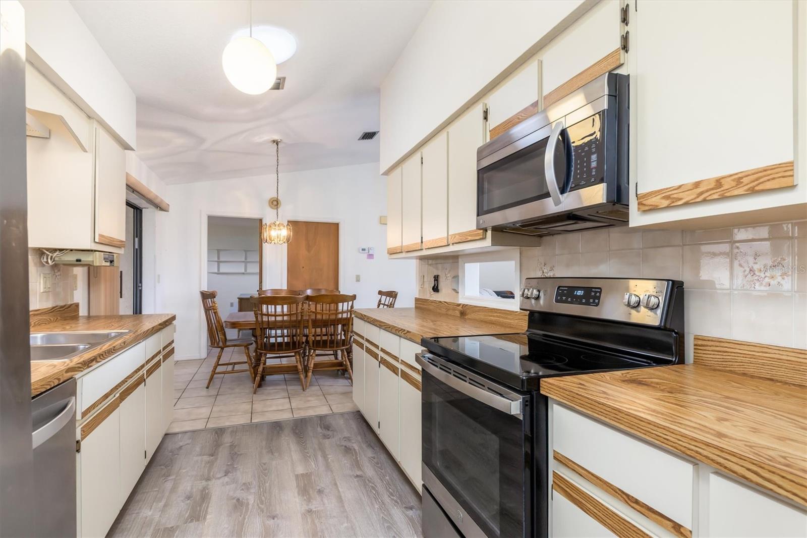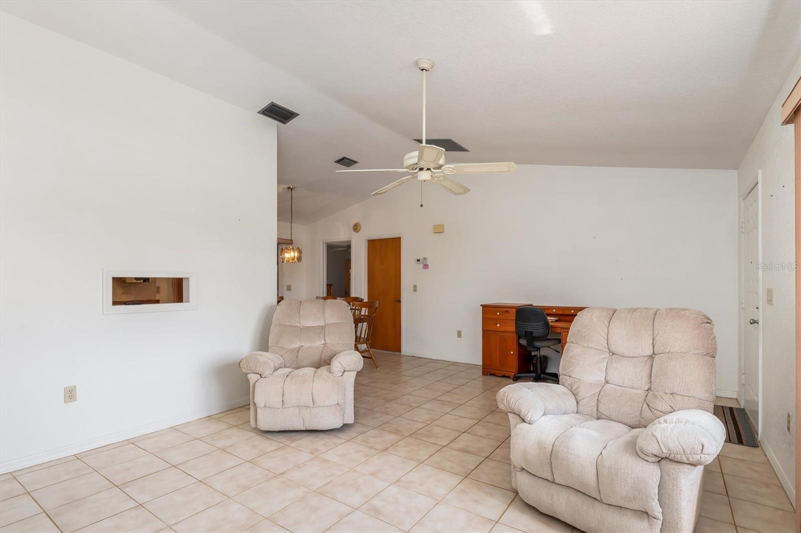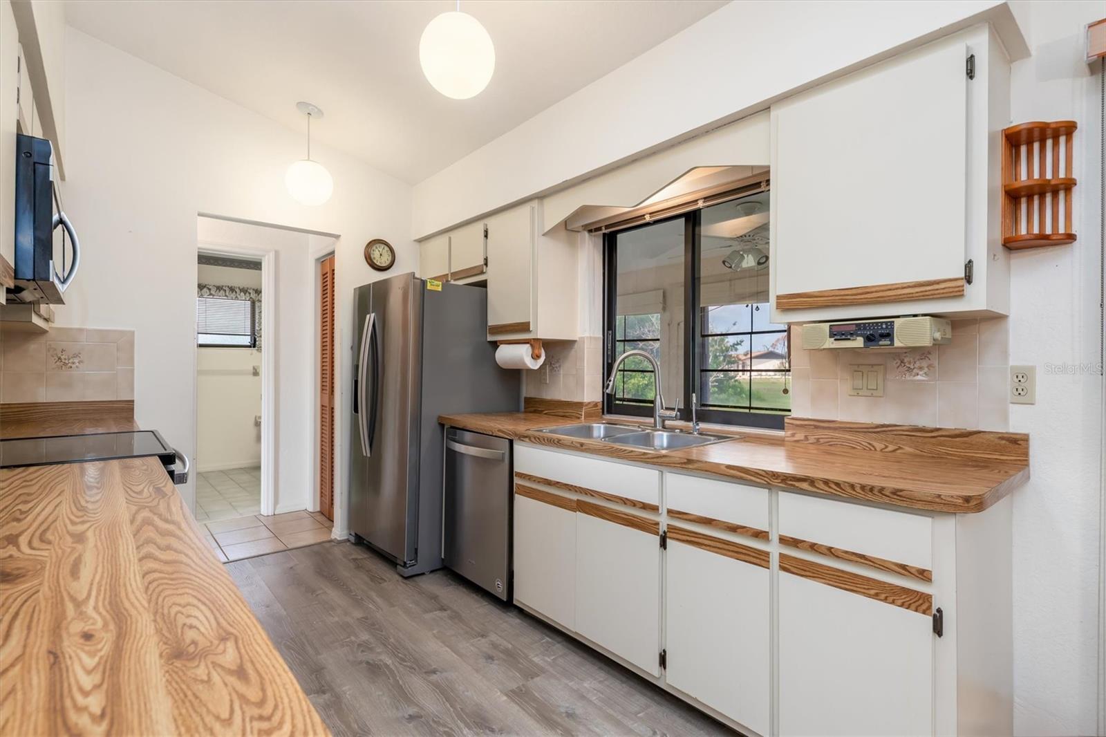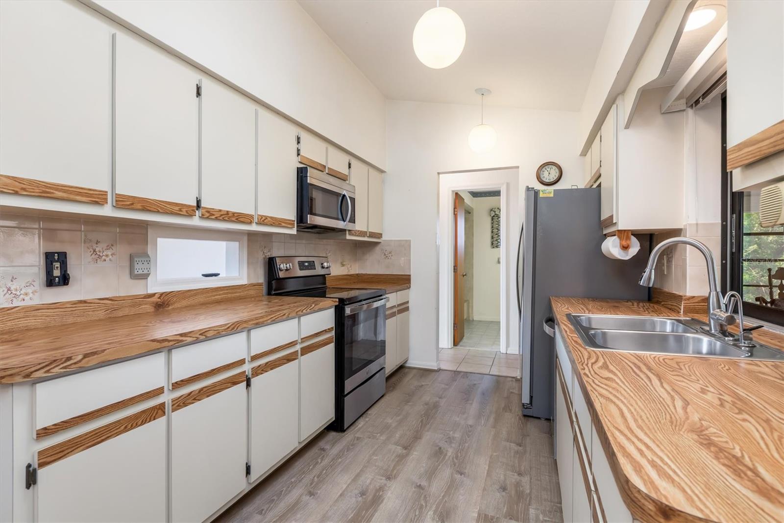 Under contract-accepting backup offers. This well-maintained 1987-built concrete block home has been lovingly cared for by its original owner, offering a solid foundation and timeless appeal. The split floor plan ensures privacy, while vaulted ceilings and a Florida room with air conditioning add to the home's spacious feel. Major updates include stainless steel kitchen appliances, a new roof installed in August 2023, a water heater replaced in 2018, and an air conditioning system upgraded in 2016. The property is situated in a quiet community within an "X" flood zone, offering low flood risk and no flood insurance requirement. Equipped with manual storm shutters, it's well-prepared for hurricane season. Additionally, the home features an irrigation system with its own well, providing cost-effective and chemical-free watering. This feature not only reduces water bills but also ensures a lush, healthy landscape year-round. Ideal as a starter or second home, this property combines affordability with Florida charm.
