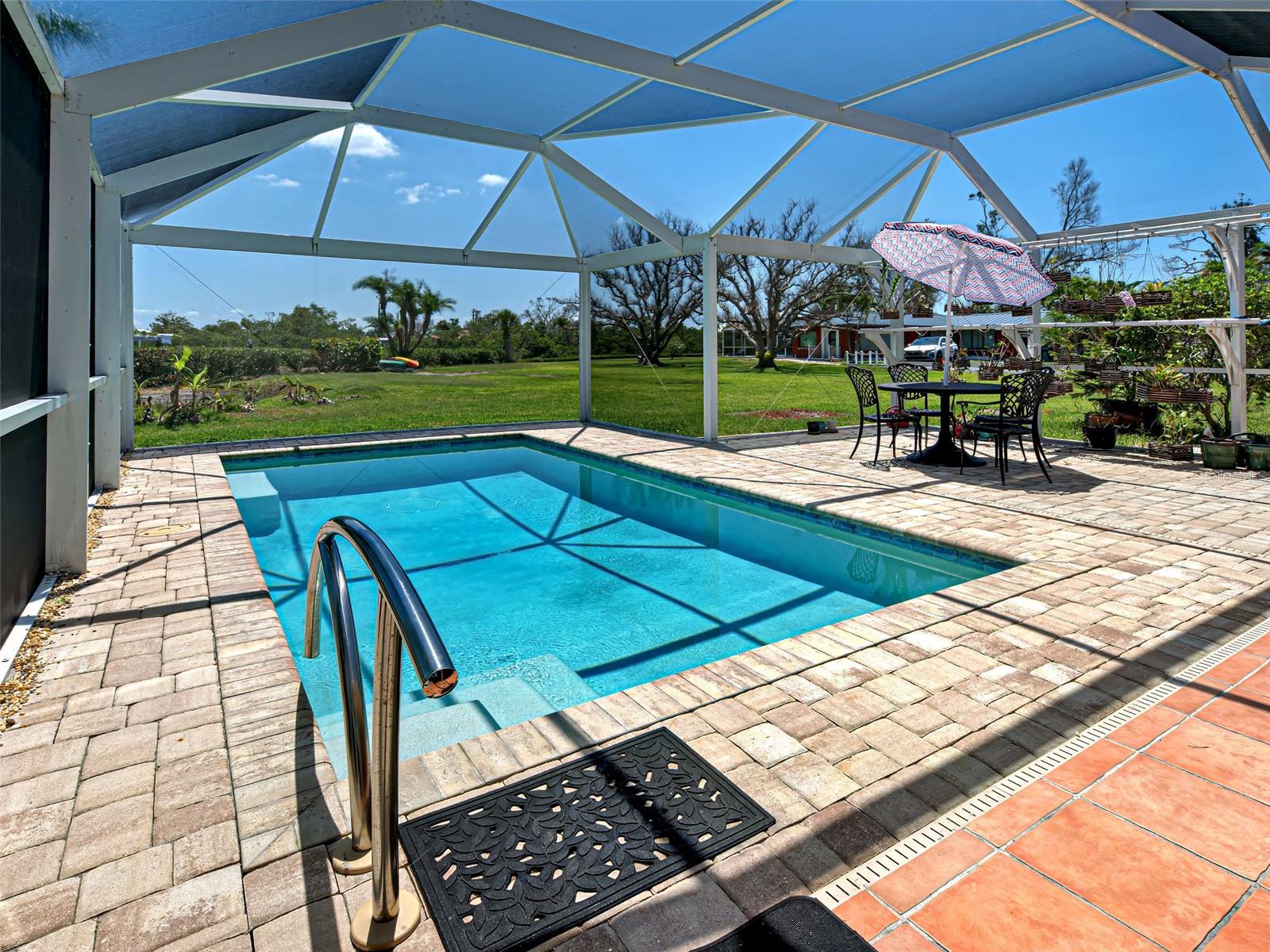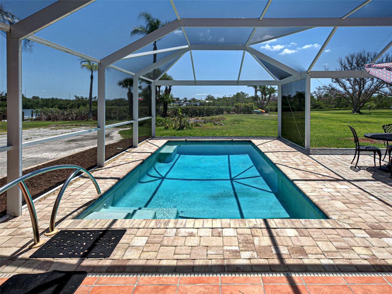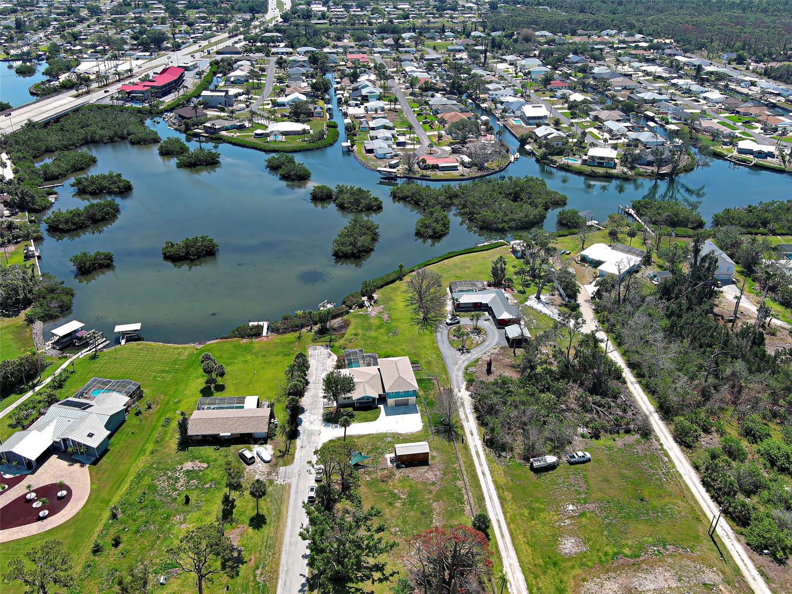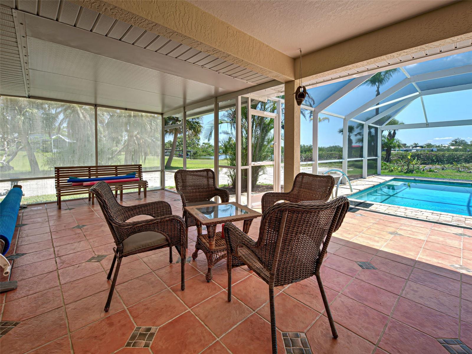 Boater's Paradise!!! Beautifully renovated waterfront home with one bridge to Lemon Bay and easy access to the Gulf at Stump Pass. Dock is equipped with a 6000 lb. Boat Lift and there is a floating dock for canoe/kayak access along the 170 ft. pristine Ainger Creek. This serene 1.08 acres property includes the home and Lots 3,4 and 5. Lots 1 and two totals .7 acres and are available under a separate agreement. The entire first floor and lanai are artfully tiled and natural stone pavers encircle the pool. This home doubled in size in 2000 with a two story addition including a primary bedroom with a wonderful view of the creek from a private balcony. Also has a sitting area and en suite with a jetted tub. The second level also includes a guest room with bath and laundry room. The sparkling, heated, saltwater pool was added in 2021 and has a Clearview pool cage and a new pump and pool heater this year. Large area on the lanai is wired for a hot tub or perfect for adding an outdoor kitchen. The dining room opens up to the lanai with two sets of French doors. There is a bonus room with plank floor tile and an oversized attached one car garage with plenty of room for storage. The first level also has a guest room. totally remodeled bath, and an office/den with closet which could be a fourth bedroom The beautiful remodeled kitchen has exotic granite countertops, tumbled marble backsplash, hardwood Cherry cabinetry, and all new appliances. Impact windows are installed on all the windows on the second floor and hurricane fabric on the balcony and all windows and doors on the lower level. The roof was re-shingled in 2022. The entire exterior and first level interior was just painted this year The first floor AC unit is new and the main electric service is also new this year. A detached 12x24 garage/workshop was recently built. Dogs can find all the legroom they need in the supersized fenced area accessed through a dog door in the garage. You will love the location of this property near shopping, restaurants , numerous golf courses and just two miles from the beautiful beaches on Manasota Key. Come experience the old Florida charm that this wonderful Englewood home has to offer.