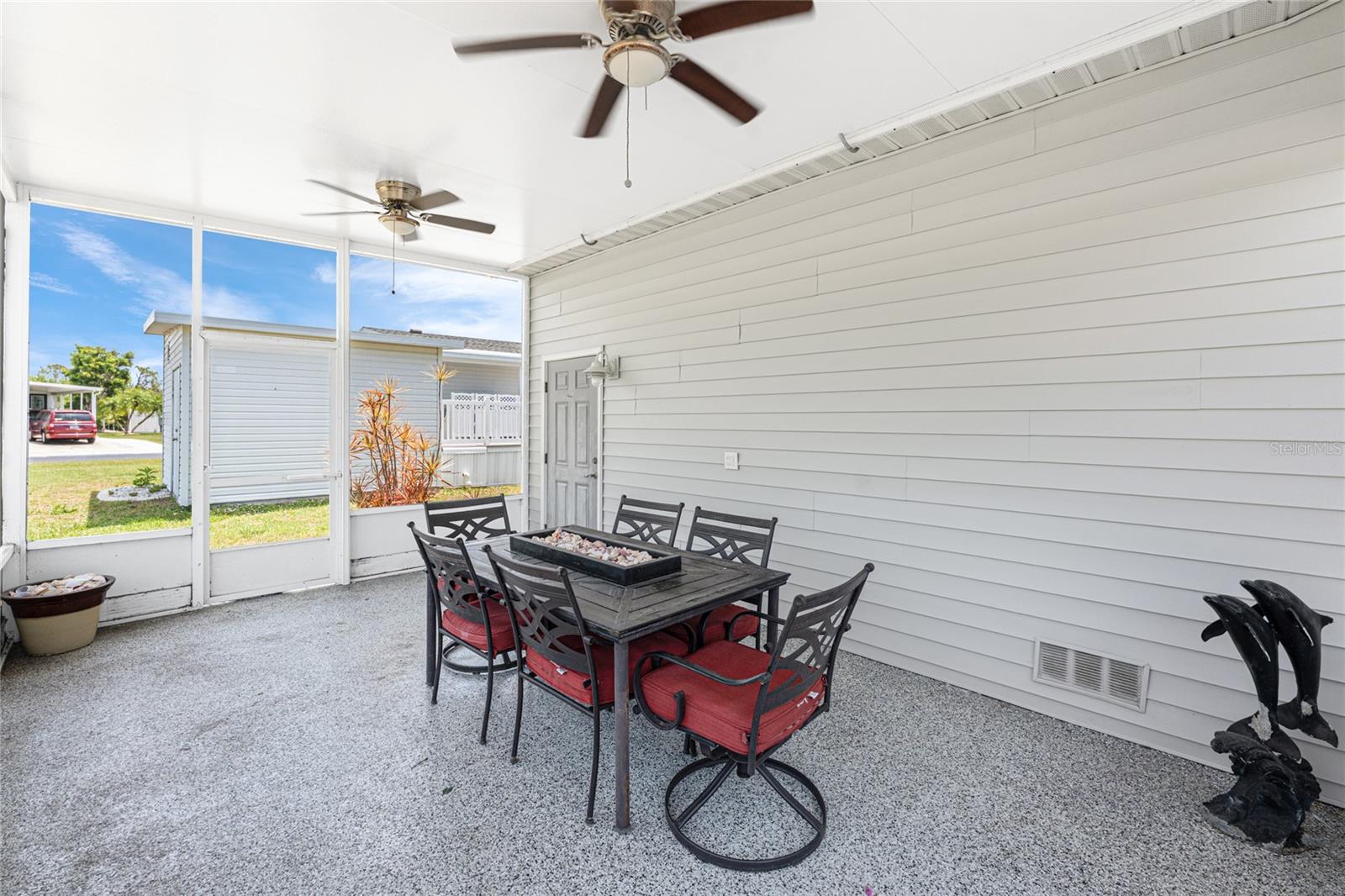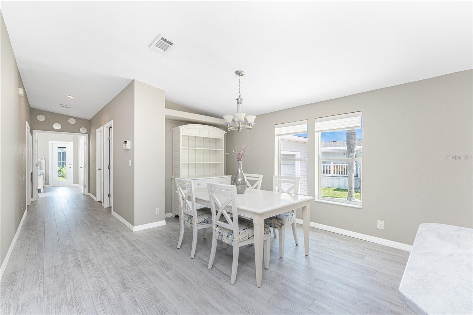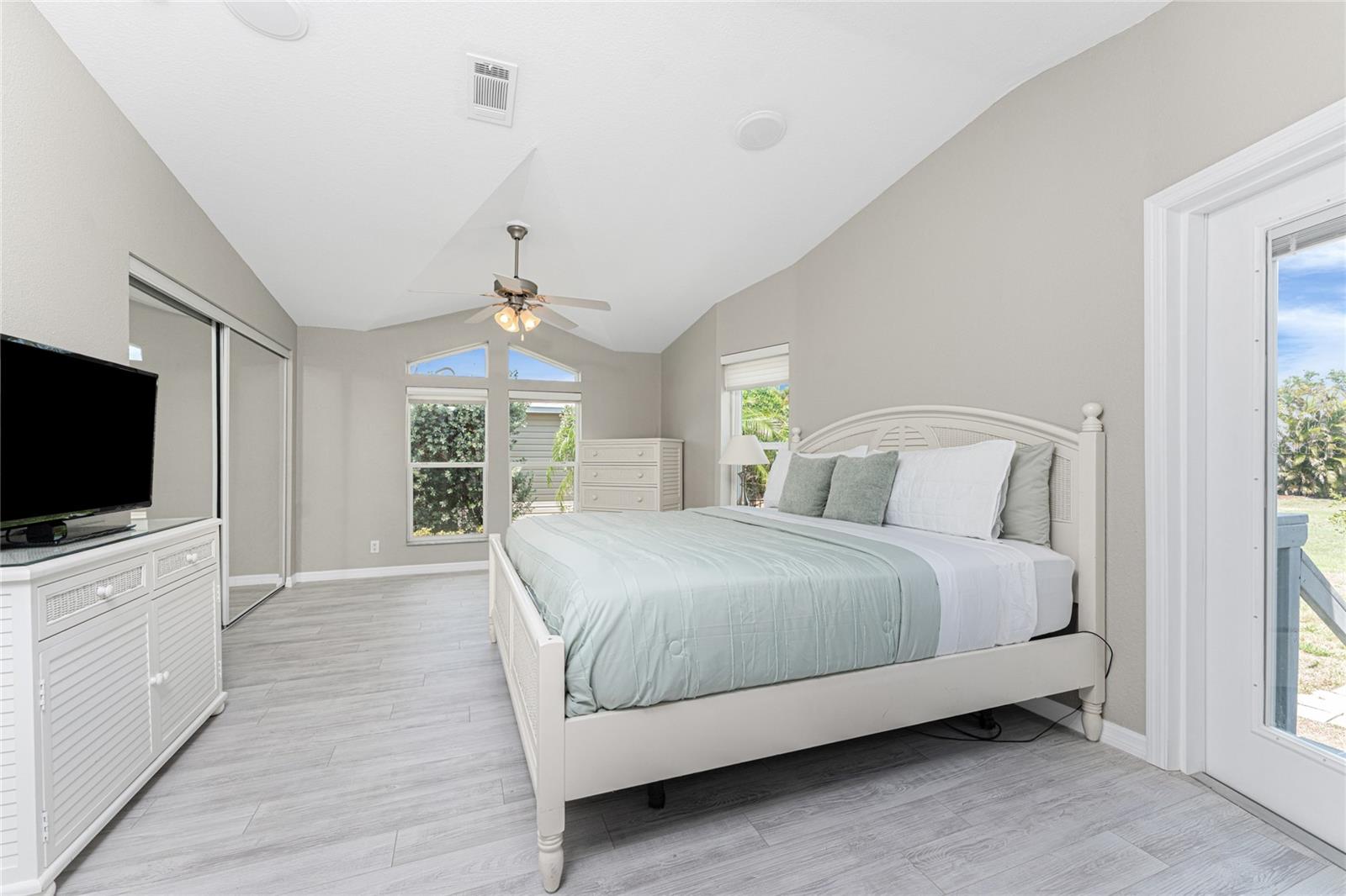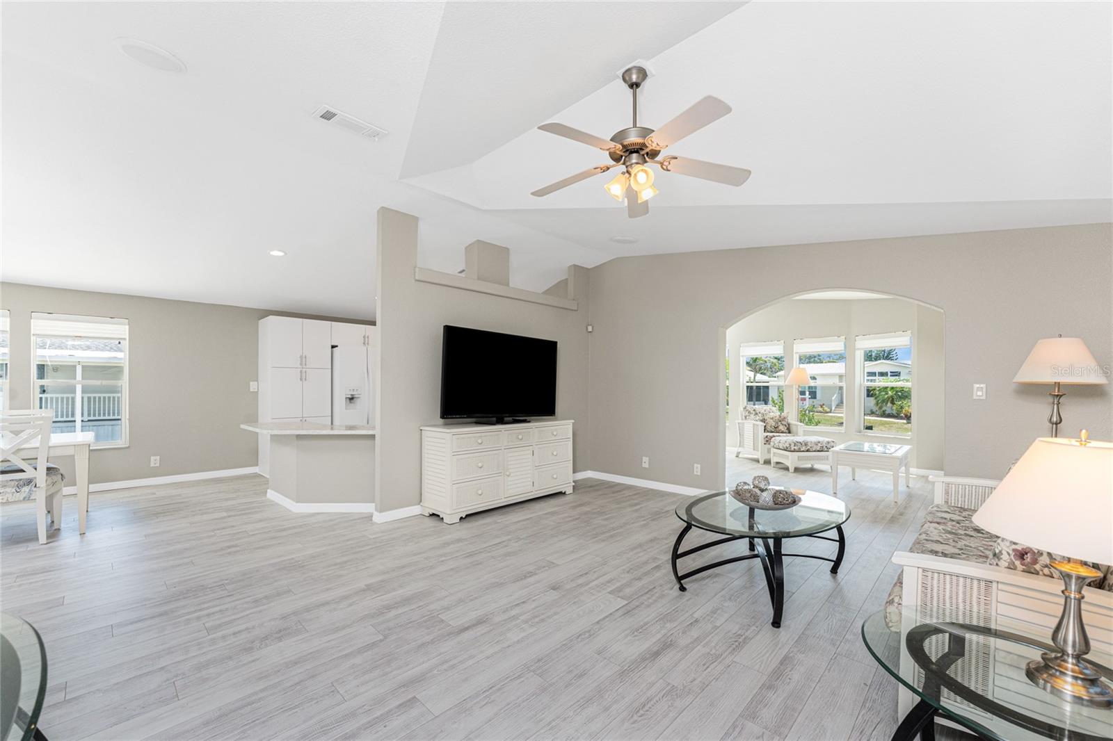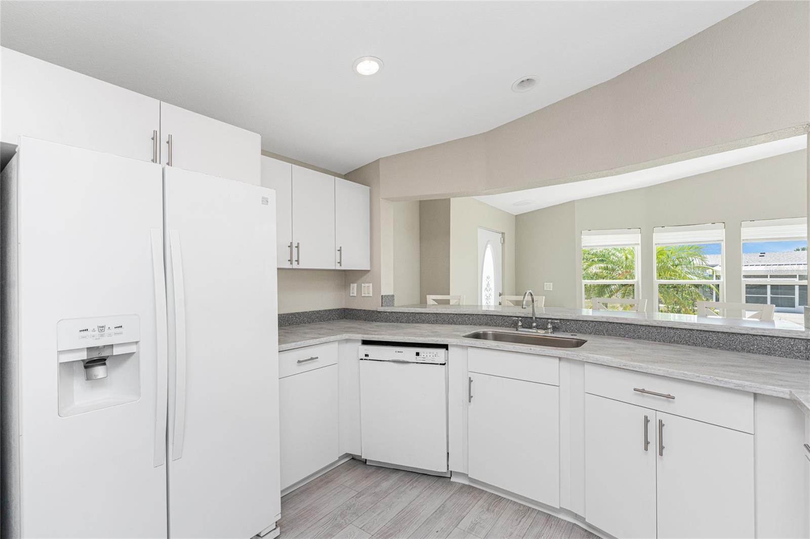 Enjoy peace of mind and the comfort of a like-new home at The Pines of Sandalhaven. Located in the X flood zone and equipped with hurricane shutters, this furnished three-bedroom, two-bathroom home is set within a 55+ deed-restricted community. A one-of-a-kind oversized enclosed garage, the only one of its kind in the neighborhood, is included with its contents such as a golf cart with newer batteries, a lawn mower, and a bicycle, offering exceptional storage, security, and flexibility that is incredibly rare for a manufactured home. Extensive renovations completed in 2024 and 2025 have transformed the property into a light, bright, and stylish retreat. Outside, you’ll find brand-new siding with stone accents, mature landscaping, and a 2023 roof. Inside feels fresh and modern, with new insulation, drywall, paint, vaulted ceilings, light-toned luxury vinyl plank flooring throughout, and a soft, neutral color palette that ties it all together. A decorative leaded glass front door opens to a spacious sunroom, perfect as a formal living area or a bonus space. The main living room features a soaring cathedral-style wall of windows that floods the home with natural light. The kitchen includes ample white cabinetry, plenty of counter space, and two breakfast bars ideal for casual meals or entertaining. A formal dining area next to the kitchen is just right for hosting gatherings or holiday dinners. The primary suite offers a quiet escape with vaulted ceilings, access to the backyard, a large reach-in closet, and an en-suite bath with dual sinks and a walk-in shower. Two guest bedrooms and the full guest bath includes a convenient tub/shower combo, great for family and friends. The interior laundry room adds functionality with built-in shelving for storage. When you are ready to enjoy the outdoors, the screened lanai with ceiling fans is a great place to kick back and relax—or fire up the grill after a day on the water. The Pines of Sandalhaven offers a low-maintenance, pet-friendly lifestyle with low quarterly HOA fees, no lot rent (you own the land), and fantastic amenities including a heated pool, clubhouse with year-round activities, pickleball and bocce courts, and beautifully maintained park areas. You’re also just minutes from Englewood and Boca Grande beaches, golf courses, local dining, shopping, and nature trails at Wildflower Preserve and Amberjack Environmental Park. Come see everything this move-in ready home at 9209 Pinehaven Way has to offer, schedule your private showing today.