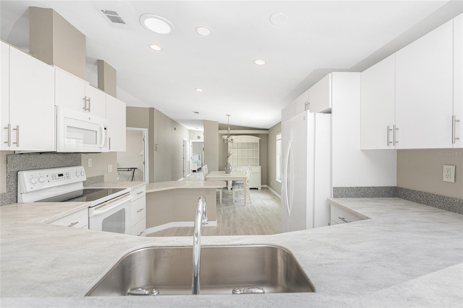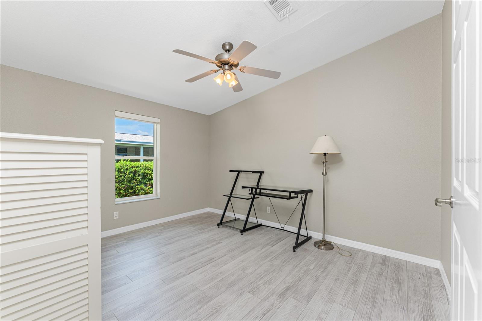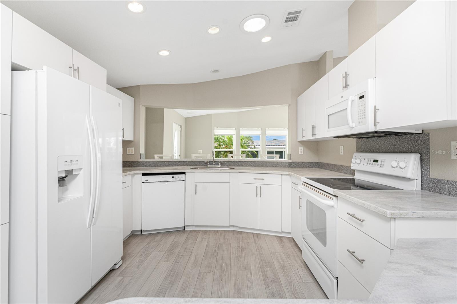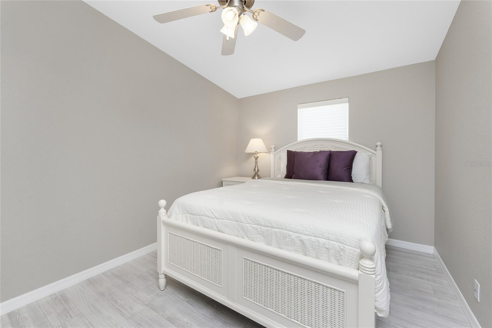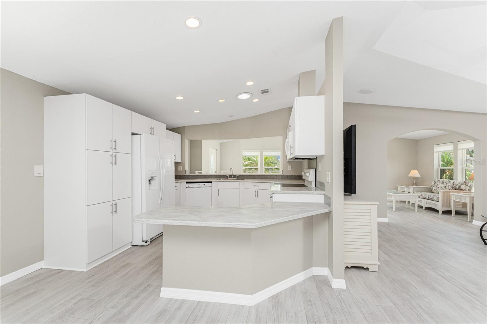 Enjoy peace of mind and the comfort of a like-new home at The Pines of Sandalhaven. Located in the X flood zone and equipped with hurricane shutters, this furnished three-bedroom, two-bathroom home is set within a 55+ deed-restricted community. A one-of-a-kind oversized enclosed garage, the only one of its kind in the neighborhood, is included with its contents such as a golf cart with newer batteries, a lawn mower, and a bicycle, offering exceptional storage, security, and flexibility that is incredibly rare for a manufactured home. Extensive renovations completed in 2024 and 2025 have transformed the property into a light, bright, and stylish retreat. Outside, you’ll find brand-new siding with stone accents, mature landscaping, and a 2023 roof. Inside feels fresh and modern, with new insulation, drywall, paint, vaulted ceilings, light-toned luxury vinyl plank flooring throughout, and a soft, neutral color palette that ties it all together. A decorative leaded glass front door opens to a spacious sunroom, perfect as a formal living area or a bonus space. The main living room features a soaring cathedral-style wall of windows that floods the home with natural light. The kitchen includes ample white cabinetry, plenty of counter space, and two breakfast bars ideal for casual meals or entertaining. A formal dining area next to the kitchen is just right for hosting gatherings or holiday dinners. The primary suite offers a quiet escape with vaulted ceilings, access to the backyard, a large reach-in closet, and an en-suite bath with dual sinks and a walk-in shower. Two guest bedrooms and the full guest bath includes a convenient tub/shower combo, great for family and friends. The interior laundry room adds functionality with built-in shelving for storage. When you are ready to enjoy the outdoors, the screened lanai with ceiling fans is a great place to kick back and relax—or fire up the grill after a day on the water. The Pines of Sandalhaven offers a low-maintenance, pet-friendly lifestyle with low quarterly HOA fees, no lot rent (you own the land), and fantastic amenities including a heated pool, clubhouse with year-round activities, pickleball and bocce courts, and beautifully maintained park areas. You’re also just minutes from Englewood and Boca Grande beaches, golf courses, local dining, shopping, and nature trails at Wildflower Preserve and Amberjack Environmental Park. Come see everything this move-in ready home at 9209 Pinehaven Way has to offer, schedule your private showing today.