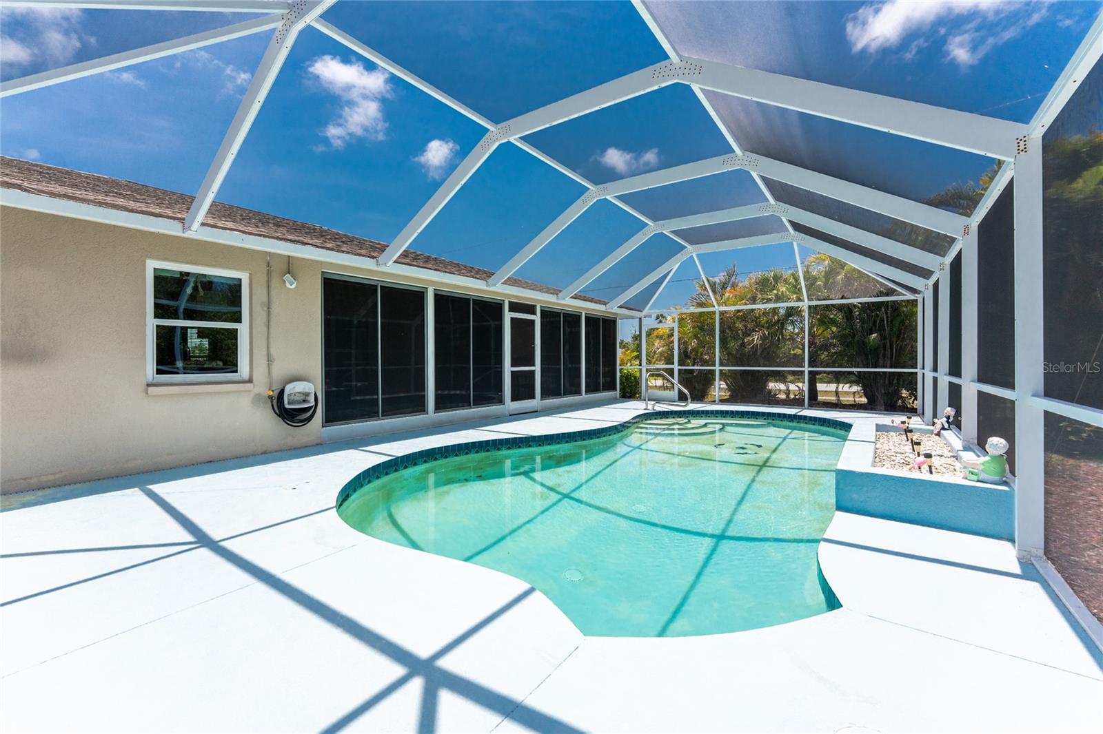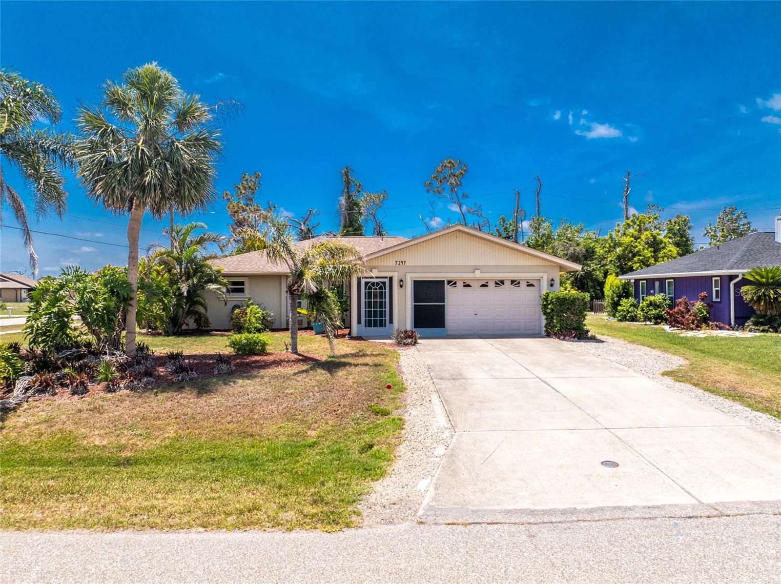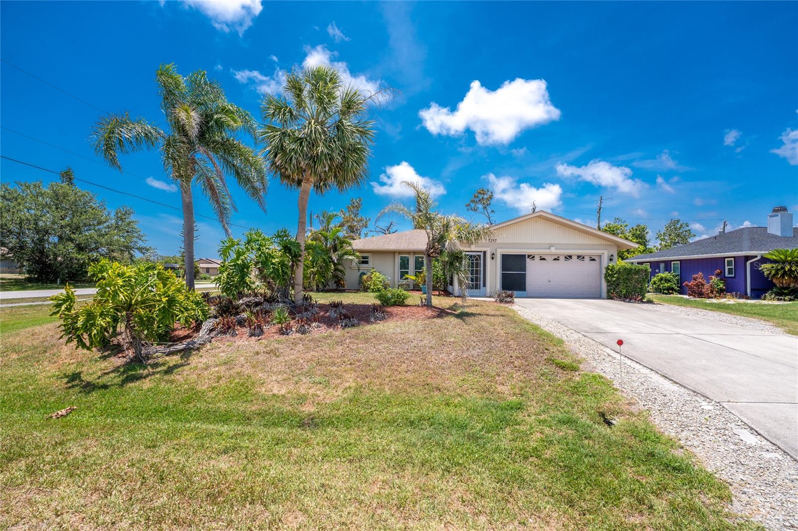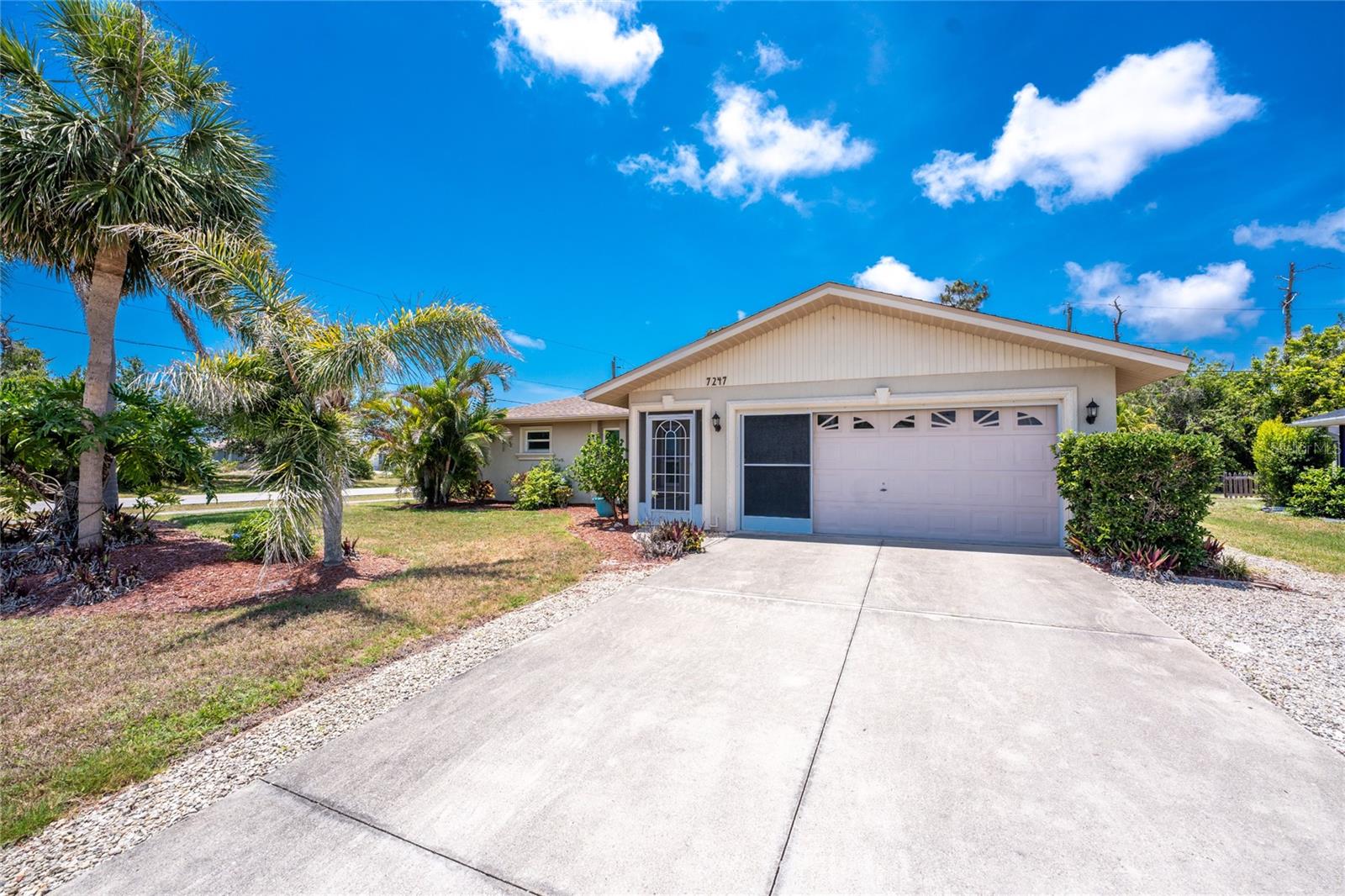 Move-In Ready Pool Home on a Corner Lot in Englewood – X Flood Zone, Impact Windows & No HOA! This two-bedroom, two-bath home is full of charm and ready to become your next Florida home. From the moment you arrive, you’ll notice the mature landscaping and thoughtful exterior features like the screened garage door, which allows you to open the home and let the salty breezes flow through, a screened entryway, and an oversized driveway offering plenty of parking. Step through the tropical teal front door into the open living space, where your eye is immediately drawn to the pool area through impact-resistant sliding glass doors. Inside, the neutral paint palette, vaulted ceilings, contrasting cherry wood flooring, and open layout connecting the kitchen and dining areas create a light, bright, and airy atmosphere. The kitchen overlooks the formal dining area and living room and features tile flooring, a large breakfast bar, abundant white cabinetry and counter space, a double-door closet pantry, and a breakfast nook with additional impact sliding doors leading out to the pool, ideal for entertaining. The ensuite master bedroom offers plenty of space and features crown molding and dual walk-in closets for ample storage. The master bath includes tile flooring, a large step-in shower with multiple showerheads, and an oversized vanity. The guest bedroom includes a double-door reach-in closet, and the guest bathroom has tile floors, a large vanity, and a tiled tub/shower combo. The laundry area is located just inside the garage and includes storage shelving and a utility tub. Outside, the fully screened and covered lanai with tile flooring expands your living space and provides the perfect spot to enjoy a BBQ with friends or simply relax by the screened pool with a water feature on a sunny Florida day. Additional home highlights include unique wood trim around the windows, larger baseboards, a convenient coat closet in the entryway, and the home was replumbed with Pex overhead in 2022. Englewood Beach is less than 6 miles away, where you can unwind at waterfront restaurants or enjoy live music at several tiki bars. For nature lovers, Oyster Creek Environmental Park is under 3 miles away and offers over 250 acres of preserved land with old-growth pines, scrub habitat, and mangrove-lined trails. Just 1.5 miles from home, the Ann and Chuck Dever Regional Park and Recreation Center features a multi-purpose gymnasium, fitness center, community garden, playground, skate park, splash pad, swimming pool, disc golf course, dog park, tennis courts, and lighted football fields, along with year-round programs and events. This home at 7247 Brookhaven Terrace offers the perfect blend of location, features, and lifestyle - contact us today to schedule your private showing.