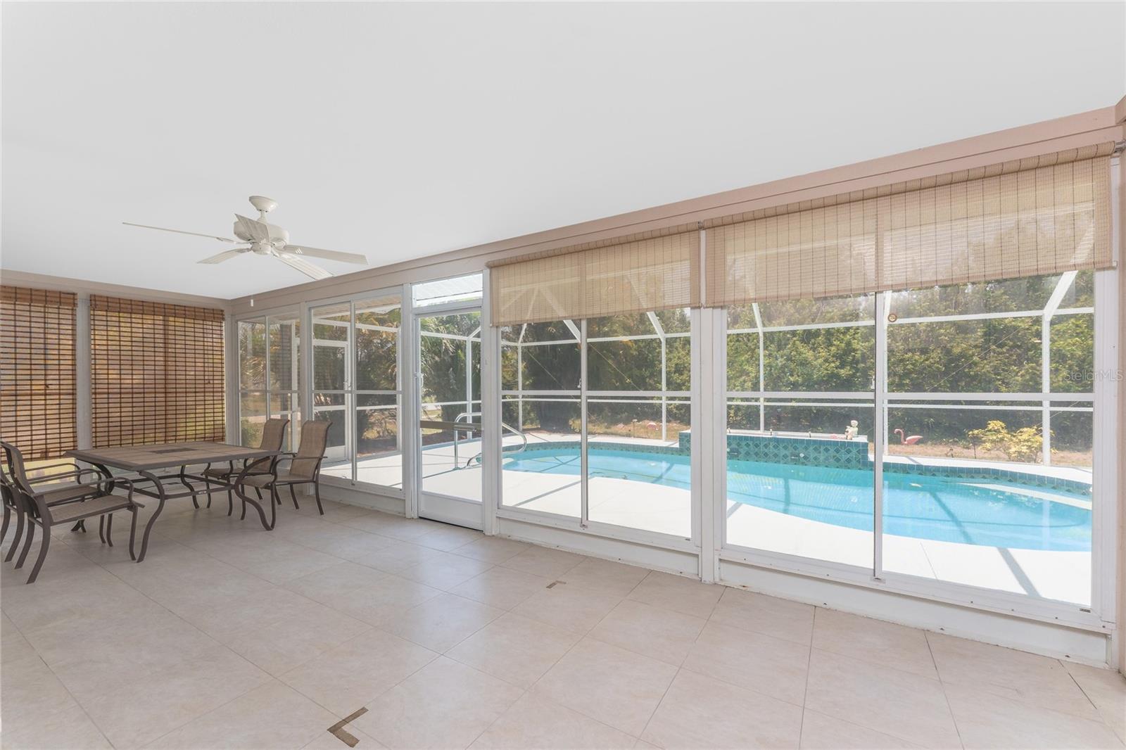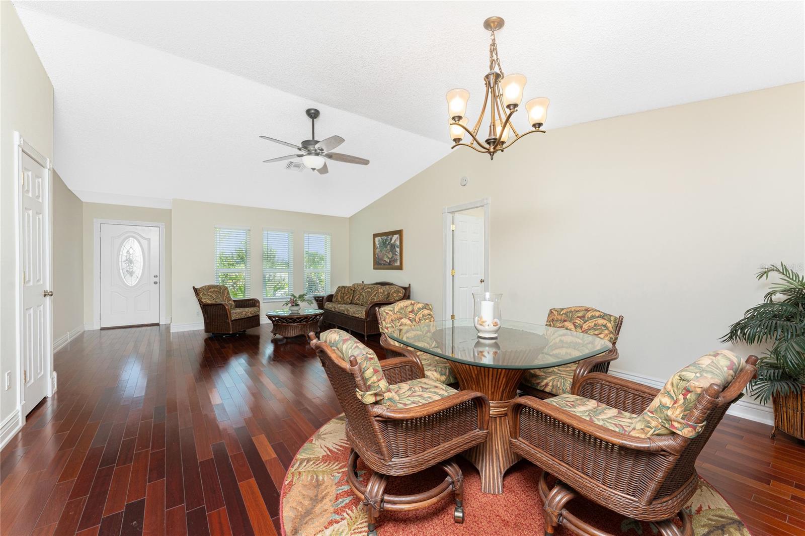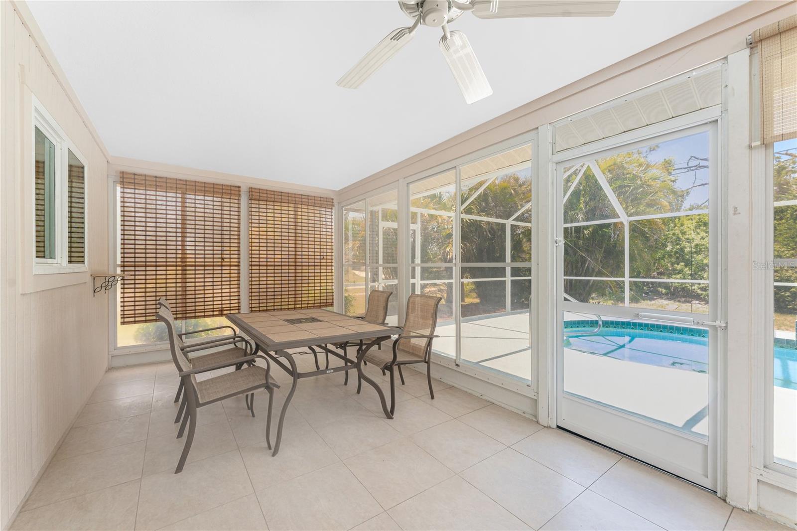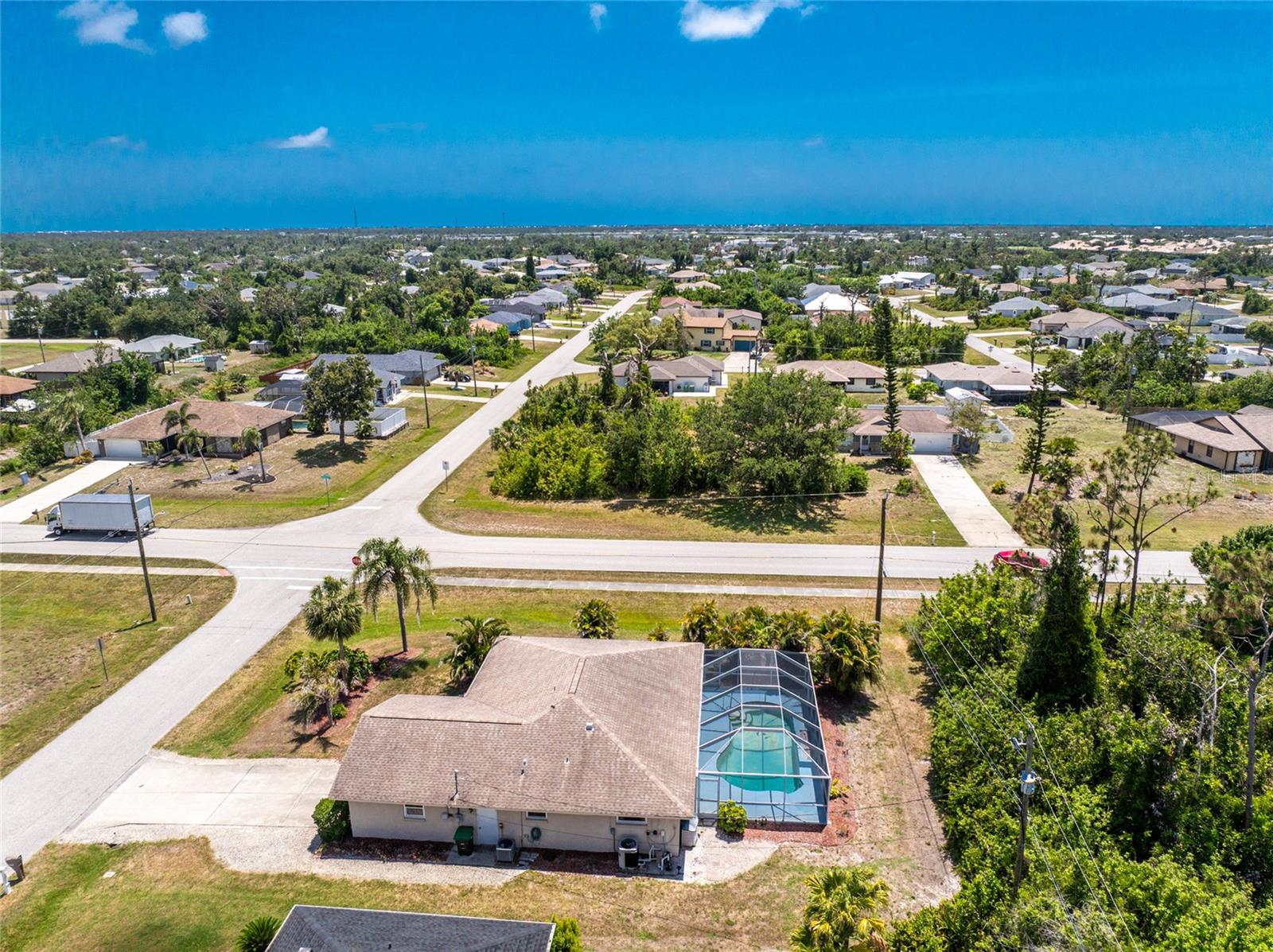 Move-In Ready Pool Home on a Corner Lot in Englewood – X Flood Zone, Impact Windows & No HOA! This two-bedroom, two-bath home is full of charm and ready to become your next Florida home. From the moment you arrive, you’ll notice the mature landscaping and thoughtful exterior features like the screened garage door, which allows you to open the home and let the salty breezes flow through, a screened entryway, and an oversized driveway offering plenty of parking. Step through the tropical teal front door into the open living space, where your eye is immediately drawn to the pool area through impact-resistant sliding glass doors. Inside, the neutral paint palette, vaulted ceilings, contrasting cherry wood flooring, and open layout connecting the kitchen and dining areas create a light, bright, and airy atmosphere. The kitchen overlooks the formal dining area and living room and features tile flooring, a large breakfast bar, abundant white cabinetry and counter space, a double-door closet pantry, and a breakfast nook with additional impact sliding doors leading out to the pool, ideal for entertaining. The ensuite master bedroom offers plenty of space and features crown molding and dual walk-in closets for ample storage. The master bath includes tile flooring, a large step-in shower with multiple showerheads, and an oversized vanity. The guest bedroom includes a double-door reach-in closet, and the guest bathroom has tile floors, a large vanity, and a tiled tub/shower combo. The laundry area is located just inside the garage and includes storage shelving and a utility tub. Outside, the fully screened and covered lanai with tile flooring expands your living space and provides the perfect spot to enjoy a BBQ with friends or simply relax by the screened pool with a water feature on a sunny Florida day. Additional home highlights include unique wood trim around the windows, larger baseboards, a convenient coat closet in the entryway, and the home was replumbed with Pex overhead in 2022. Englewood Beach is less than 6 miles away, where you can unwind at waterfront restaurants or enjoy live music at several tiki bars. For nature lovers, Oyster Creek Environmental Park is under 3 miles away and offers over 250 acres of preserved land with old-growth pines, scrub habitat, and mangrove-lined trails. Just 1.5 miles from home, the Ann and Chuck Dever Regional Park and Recreation Center features a multi-purpose gymnasium, fitness center, community garden, playground, skate park, splash pad, swimming pool, disc golf course, dog park, tennis courts, and lighted football fields, along with year-round programs and events. This home at 7247 Brookhaven Terrace offers the perfect blend of location, features, and lifestyle - contact us today to schedule your private showing.