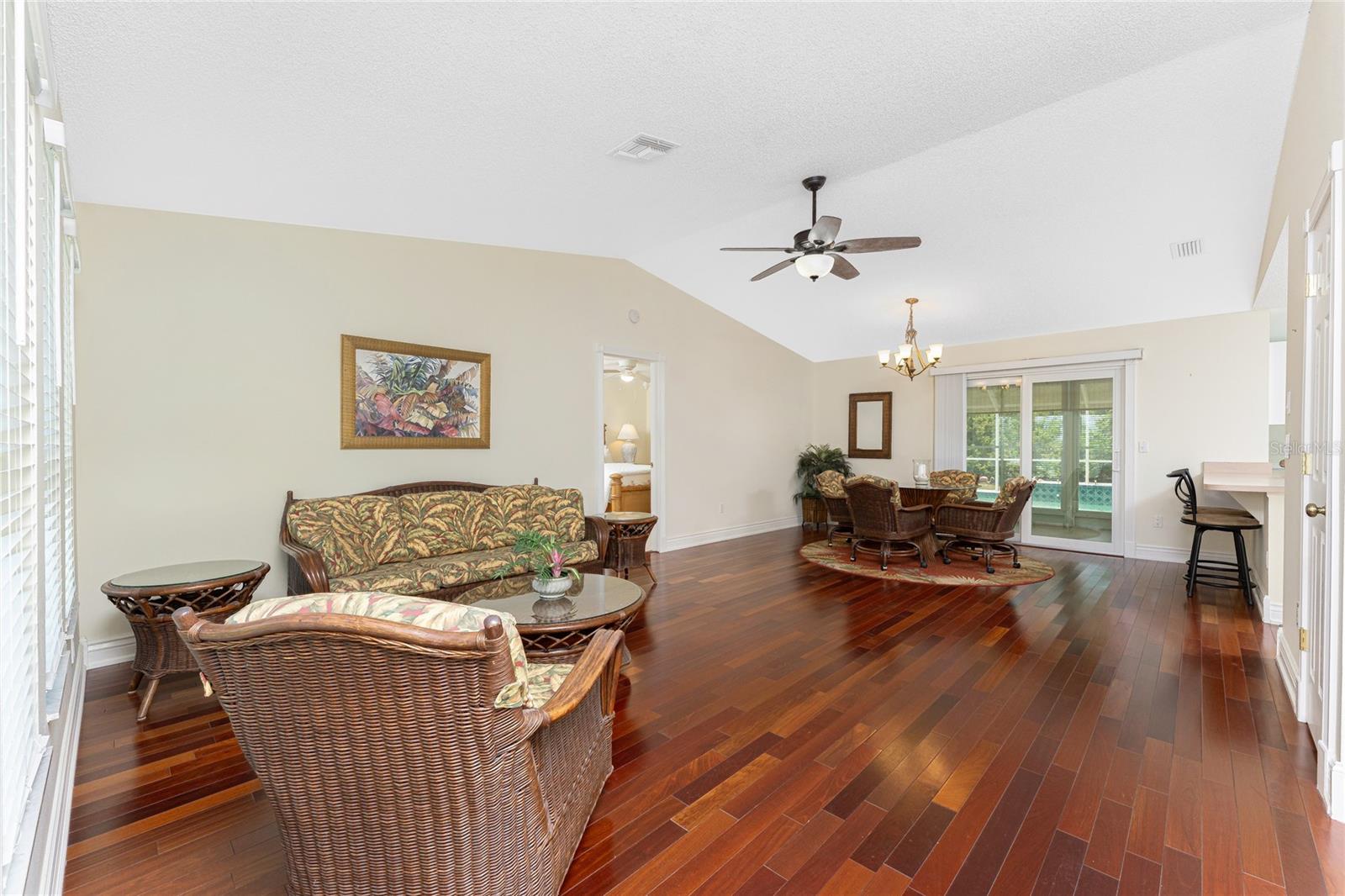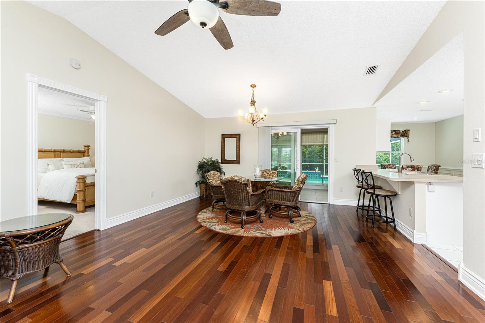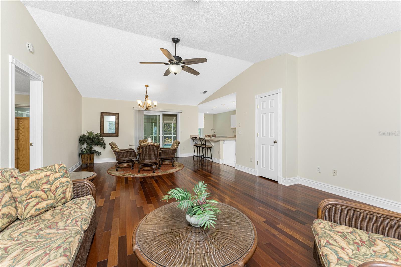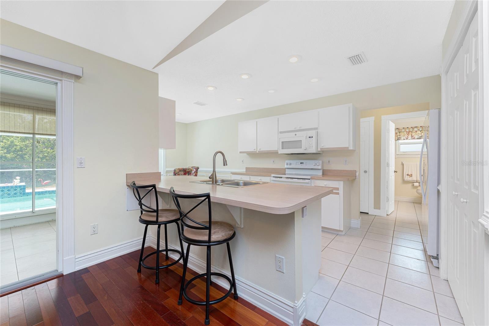 Move-In Ready Pool Home on a Corner Lot in Englewood – X Flood Zone, Impact Windows & No HOA! This two-bedroom, two-bath home is full of charm and ready to become your next Florida home. From the moment you arrive, you’ll notice the mature landscaping and thoughtful exterior features like the screened garage door, which allows you to open the home and let the salty breezes flow through, a screened entryway, and an oversized driveway offering plenty of parking. Step through the tropical teal front door into the open living space, where your eye is immediately drawn to the pool area through impact-resistant sliding glass doors. Inside, the neutral paint palette, vaulted ceilings, contrasting cherry wood flooring, and open layout connecting the kitchen and dining areas create a light, bright, and airy atmosphere. The kitchen overlooks the formal dining area and living room and features tile flooring, a large breakfast bar, abundant white cabinetry and counter space, a double-door closet pantry, and a breakfast nook with additional impact sliding doors leading out to the pool, ideal for entertaining. The ensuite master bedroom offers plenty of space and features crown molding and dual walk-in closets for ample storage. The master bath includes tile flooring, a large step-in shower with multiple showerheads, and an oversized vanity. The guest bedroom includes a double-door reach-in closet, and the guest bathroom has tile floors, a large vanity, and a tiled tub/shower combo. The laundry area is located just inside the garage and includes storage shelving and a utility tub. Outside, the fully screened and covered lanai with tile flooring expands your living space and provides the perfect spot to enjoy a BBQ with friends or simply relax by the screened pool with a water feature on a sunny Florida day. Additional home highlights include unique wood trim around the windows, larger baseboards, a convenient coat closet in the entryway, and the home was replumbed with Pex overhead in 2022. Englewood Beach is less than 6 miles away, where you can unwind at waterfront restaurants or enjoy live music at several tiki bars. For nature lovers, Oyster Creek Environmental Park is under 3 miles away and offers over 250 acres of preserved land with old-growth pines, scrub habitat, and mangrove-lined trails. Just 1.5 miles from home, the Ann and Chuck Dever Regional Park and Recreation Center features a multi-purpose gymnasium, fitness center, community garden, playground, skate park, splash pad, swimming pool, disc golf course, dog park, tennis courts, and lighted football fields, along with year-round programs and events. This home at 7247 Brookhaven Terrace offers the perfect blend of location, features, and lifestyle - contact us today to schedule your private showing.