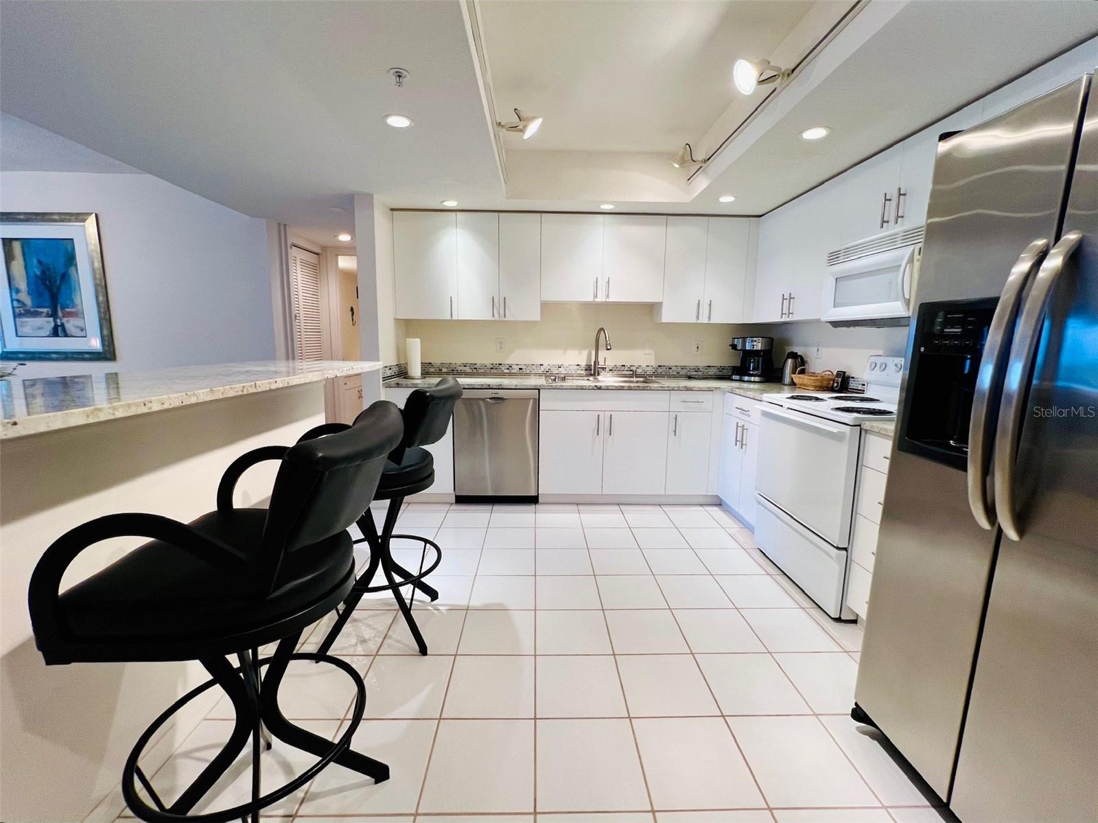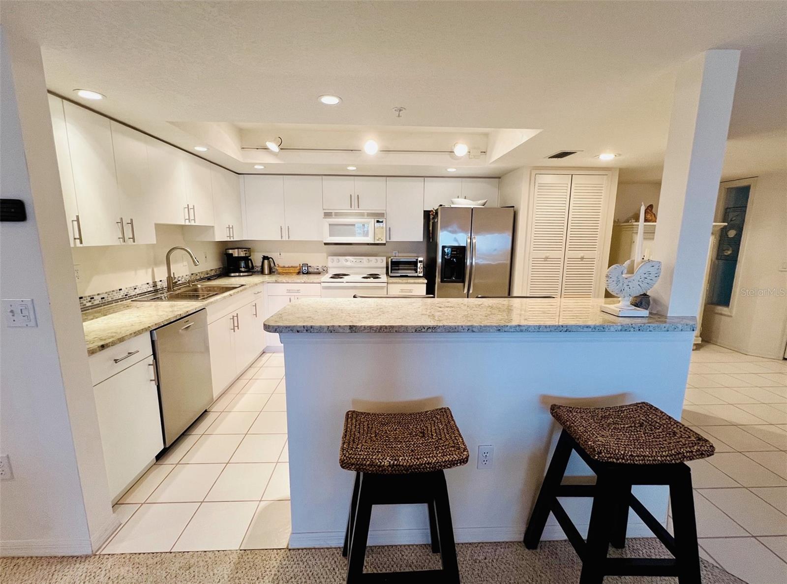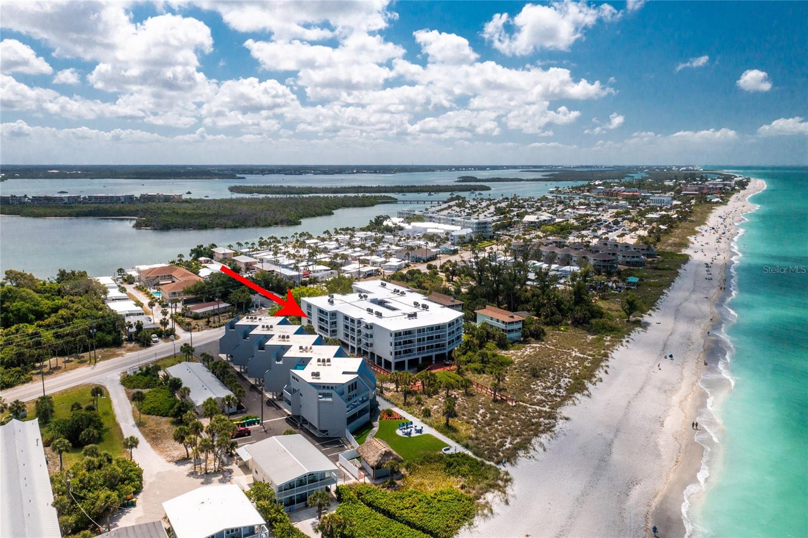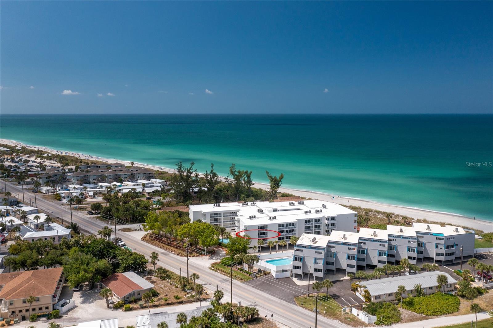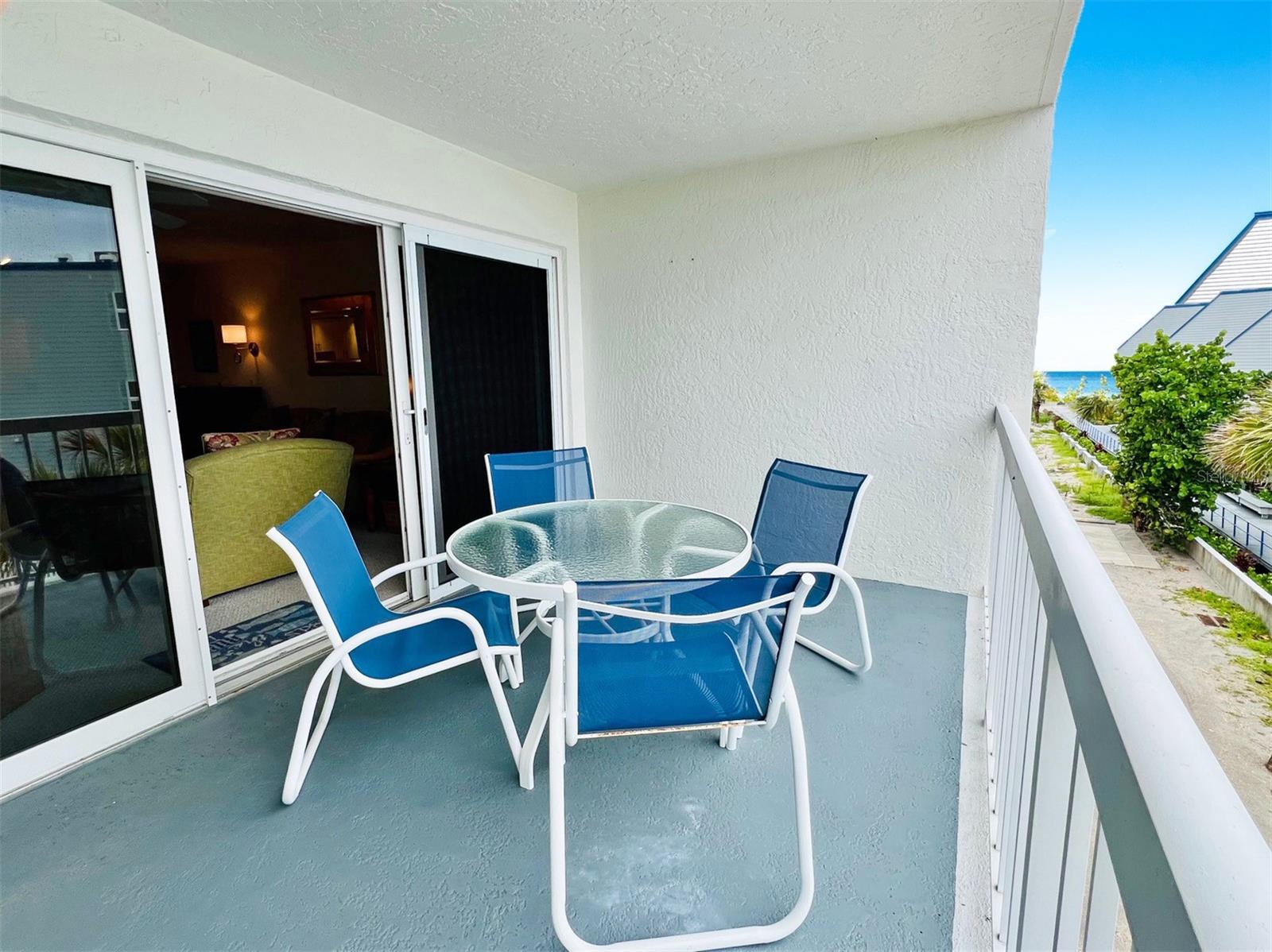 Welcome to this lovely turnkey-furnished 2-bedroom, 2-bathroom residence at Surf Club Condominiums, a 31-unit community on the sandy shores of Manasota Key in Englewood, Florida. Unit offers a spacious split-bedroom layout designed for comfort and privacy. Step onto the covered balcony—an ideal spot to enjoy your morning coffee or unwind in the evening. The bright eat-in kitchen features granite countertops, tile backsplash, and some stainless-steel appliances, perfect for everyday living. The Primary Bedroom suite offers direct access to the main balcony and an additional private balcony, plus a walk-in closet and an en-suite bathroom with double vanities, a walk-in shower, and a separate soaking tub. Additional highlights include storm-rated sliding glass doors throughout, a new A/C system, and a full-size washer and dryer. The unit also comes with two assigned parking spaces—one covered, one open. Surf Club residents enjoy access to a heated community pool, community room, elevator access, and a private boardwalk leading to nearly 200 feet of pristine beach frontage. Ideally located near island dining, shopping, and entertainment, this home is your perfect coastal retreat. Experience the best of beachside living—your slice of paradise awaits.