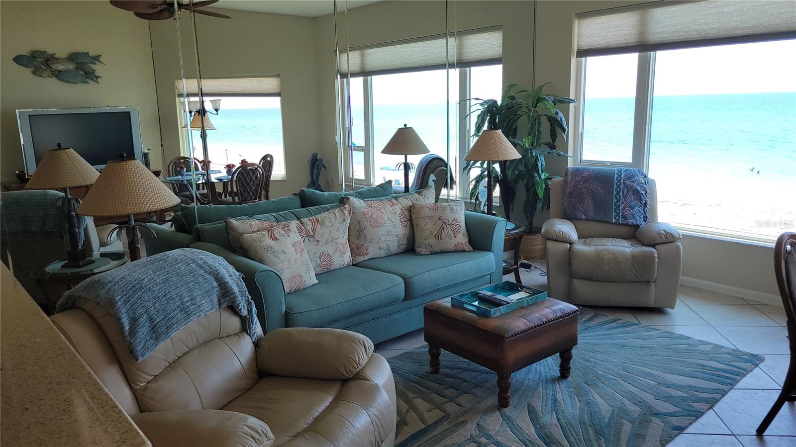 El Galeon By The Sea is the Flagship Beachfront Destination, at the El Galeon Resort facility on Manasota Key. It is a Gulf front complex featuring a beautiful sandy beach overlooking the Gulf of Mexico. The complex was affected by last years’ storms, but there was no water inside to the unit interiors. Some landscape restoration projects are still underway and “extra sand” is being moved. The beach is now immense here. Unit 511 directly overlooks the wide, sandy beach on Manasota Key with great sunset views. The complex also has excellent docking facilities right across the road. There are a total of 19 units in this group of 3 buildings that surround the courtyard, with the heated swimming pool. There is plenty of parking. Unit 511 is a 2 Bedroom 2 Bath located on the 2nd floor of the building. It is beautifully furnished and decorated and will be delivered to you 'Turn Key" and move-in ready. The Central Heat and Air system was completely upgraded with a new system in 2022. The complex is very popular with vacation renters. Many advance bookings for the coming seasons come with the property if buyers are interested in renting the unit. It has a solid rental history with income averaging $50,000+ a year. In 2024 it grossed $54,725. The complex does allow for short term, 1 week stays. The unit is currently occupied for Winter Season 2025, and they are booking ahead for this coming Summer Season. Showing appointments are absolutely required and preferred on Saturdays between rental turnovers.