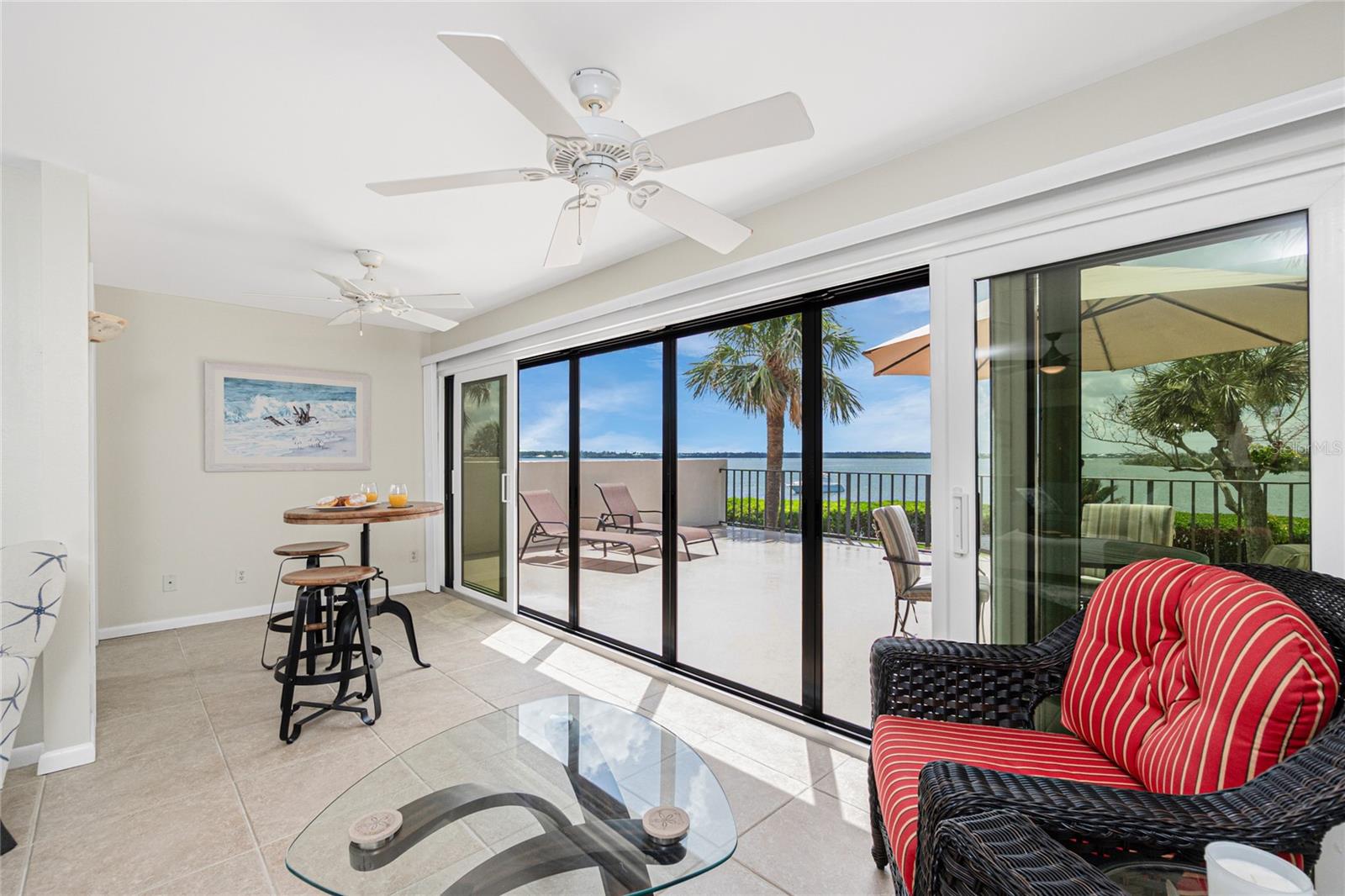 Don’t miss out on an extraordinary opportunity to own this fully furnished waterfront condo with a 26x19 private sundeck located at Sandpiper Key. This luxurious end unit features 2 bedrooms, 2 bathrooms, Florida room, under building parking, an exterior storage closet, and much more! From the minute you step off the elevator and walk through the front door you will see the attention to detail and craftsmanship that went into this property. The open and airy kitchen features Corian countertops updated white cabinets, under cabinet lighting, tile flooring, tons of storage space, and water views! The formal dining room has tile flooring, modern lighting, and sliding glass doors leading to an additional 10x4 private balcony. The living room features an updated ceiling fan, tile flooring, crown molding, and beautiful views of Lemon Bay. The spacious 19x8 Florida room features two ceiling fans, tile flooring, and a large hurricane impact sliding glass door leading out to the 26x19 sun deck overlooking the water. The master suite has a gorgeous setting with water views right from your bed, and includes French doors leading to the Florida Room, a modern ceiling fan, crown molding, tile flooring, a large walk-in closet, utility closet with washer and dryer, a private bathroom, and tons of natural lighting. The master bathroom features a tiled walk-in shower with glass enclosure, recessed lighting, built-in cabinets for extra storage space, and much more! The guest bedroom has tile flooring, modern ceiling fan, crown molding, and a closet for extra storage space. This property also features a private parking spot and an extra storage closet under the building! Did I mention that this condo has roll down hurricane protection for all windows, hurricane impact sliding glass doors, and a 2024 Air Conditioning unit? Sandpiper Key is a one-of-a-kind complex that offers two heated Bayfront pools, clubhouse, Picnic area with grills, kayak/ bicycle storage, and fishing dock. If you are a boater, there are 60 privately owned docks across the street that may be available for sale or rent. You can walk to local restaurants and the beaches, boating, fishing, live entertainment, and much more! Enjoy your very own slice of paradise on Manasota Key with everything you need from restaurants to Englewood beaches just right around the corner! You must see this exquisite condo to appreciate the captivating views and impeccable upgrades that make this property an absolute stunner!