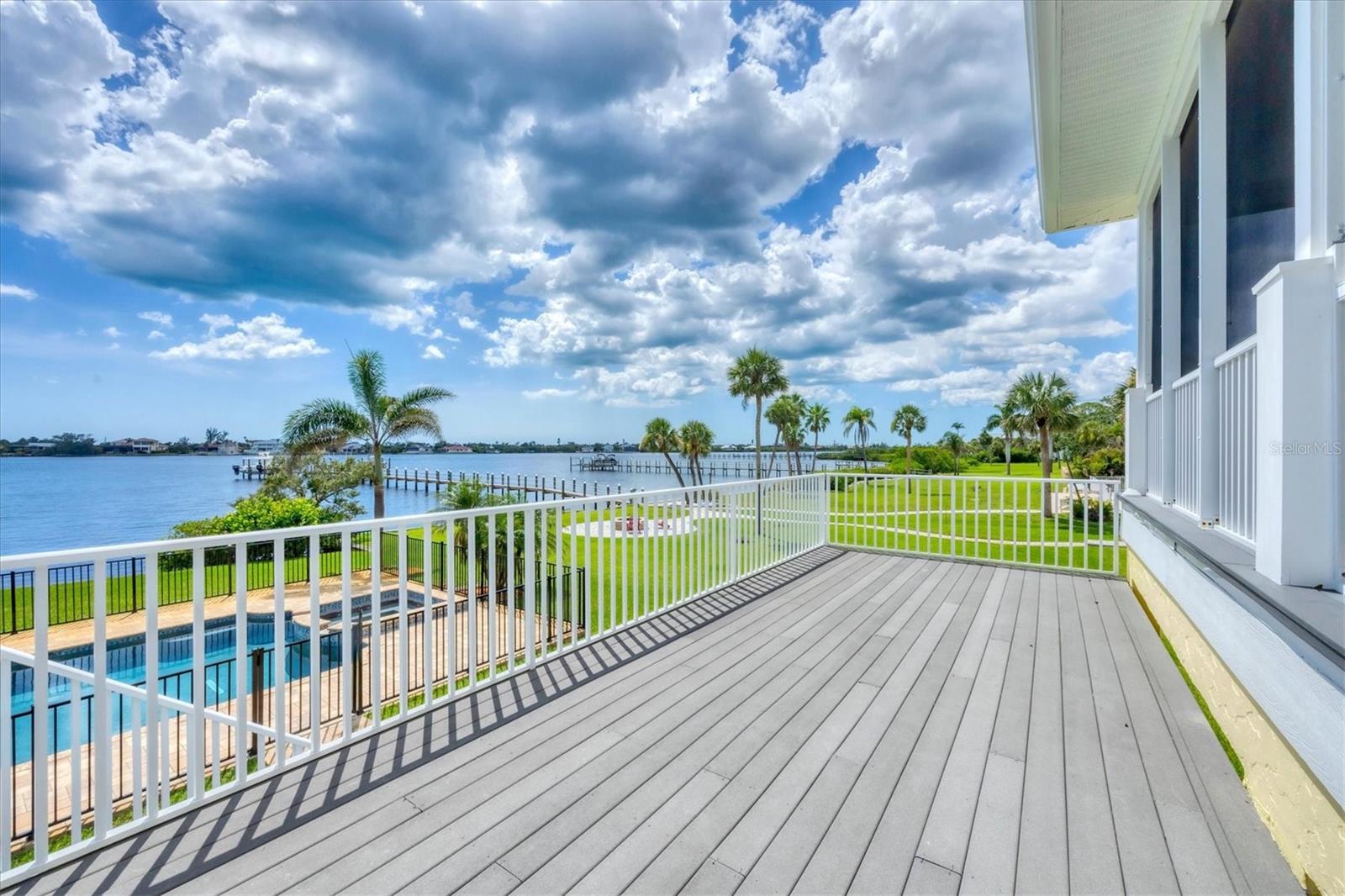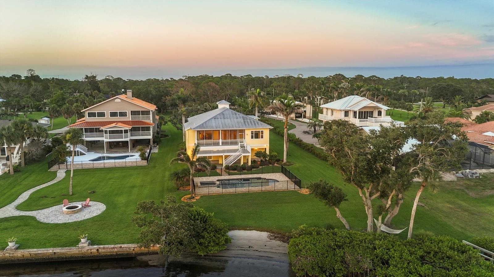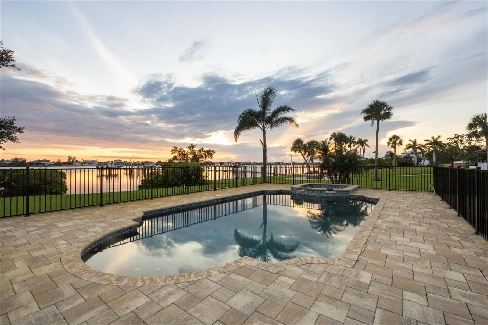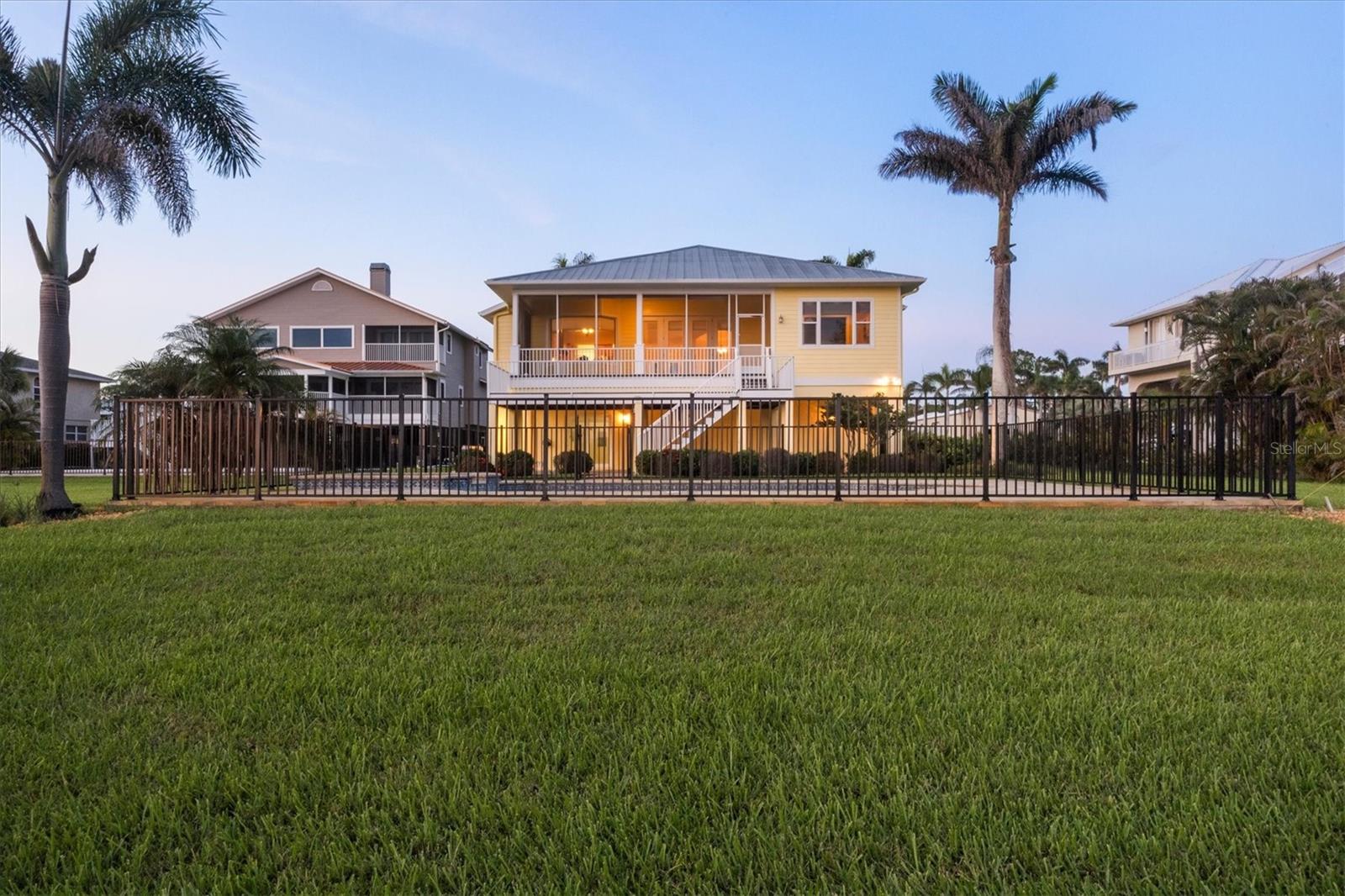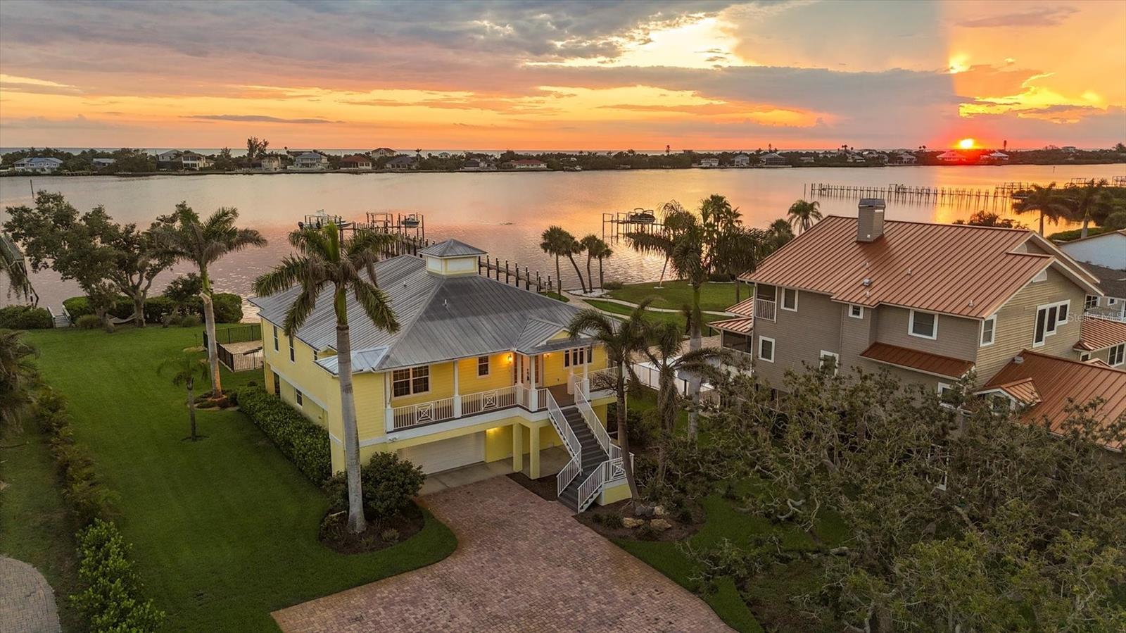 One or more photo(s) has been virtually staged. Take a Look! The price for this Key West-style waterfront residence has been adjusted. Situated on 1.27 acres, the property features approximately 100 feet of intercoastal frontage and a beautifully landscaped driveway lined with mature trees. The main living space, spanning 2,399 square feet, is located on the second floor to take advantage of the spectacular water views. As you enter the home, you are greeted by an open floor plan that includes a spacious living room, kitchen, and dining area. The home boasts three bedrooms, 2.5 bathrooms, tile flooring throughout the great room, tray and coffered ceilings, and a light and airy color scheme. The primary bedroom and large office have gleaming wood floors. The large open kitchen is equipped with SS appliances, granite countertops, and a generous island with seating space. A large pantry and laundry room are off the kitchen. The open floor plan is perfect for entertaining, with a living room that opens to a 281 sq. ft. screened lanai overlooking the sparkling saltwater pool and water views. The home also features high-impact glass windows, a metal roof, all Hardie board siding, and an elevator to the second floor. An 8-car oversized tandem garage and added storage or a large workshop, which has 1,034 sq. ft. and a bathroom. A new dock, complete with a 10,000 lb. lift for your boat and watercraft, has been installed. The main living space was unaffected by storms. This exquisite home offers the perfect blend of luxury and comfort, allowing you to enjoy beautiful marine life with its convenient location just minutes from Manasota Beach. Relax and enjoy the world-famous sunsets at Manasota Key. This is more than a home, it’s a lifestyle.