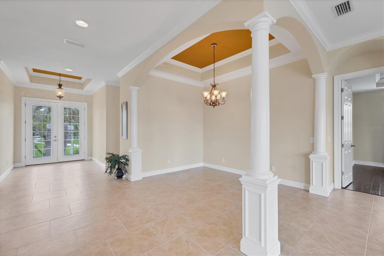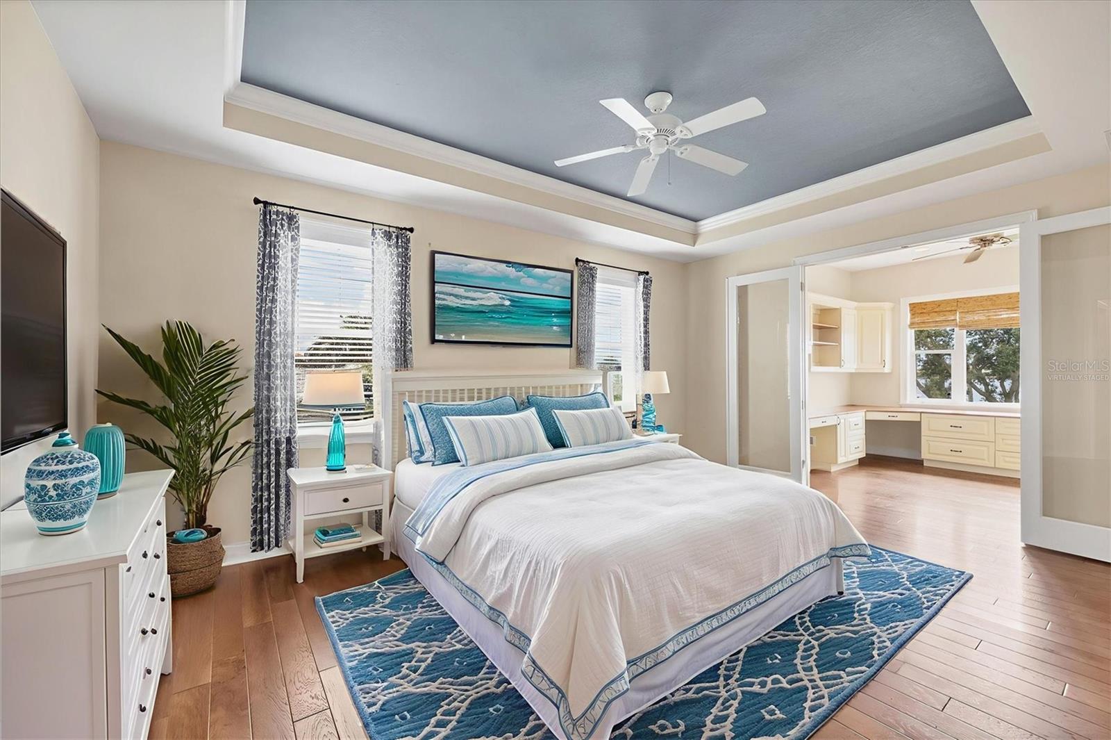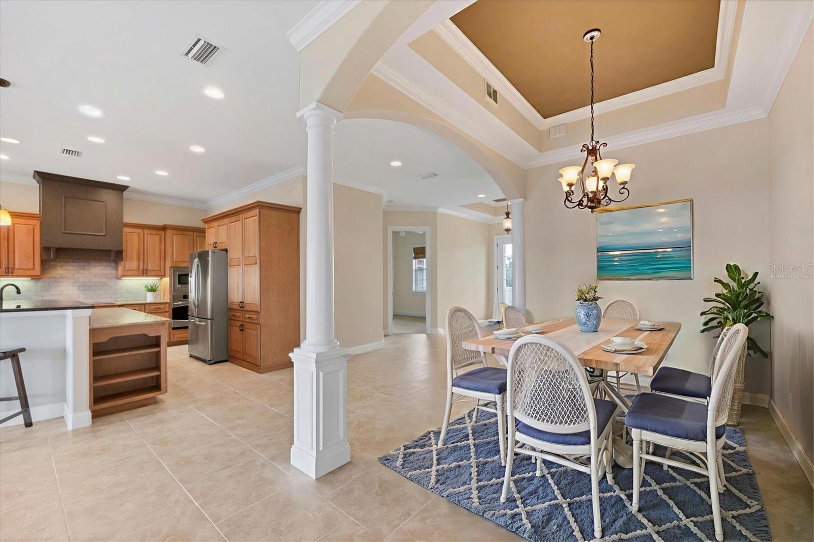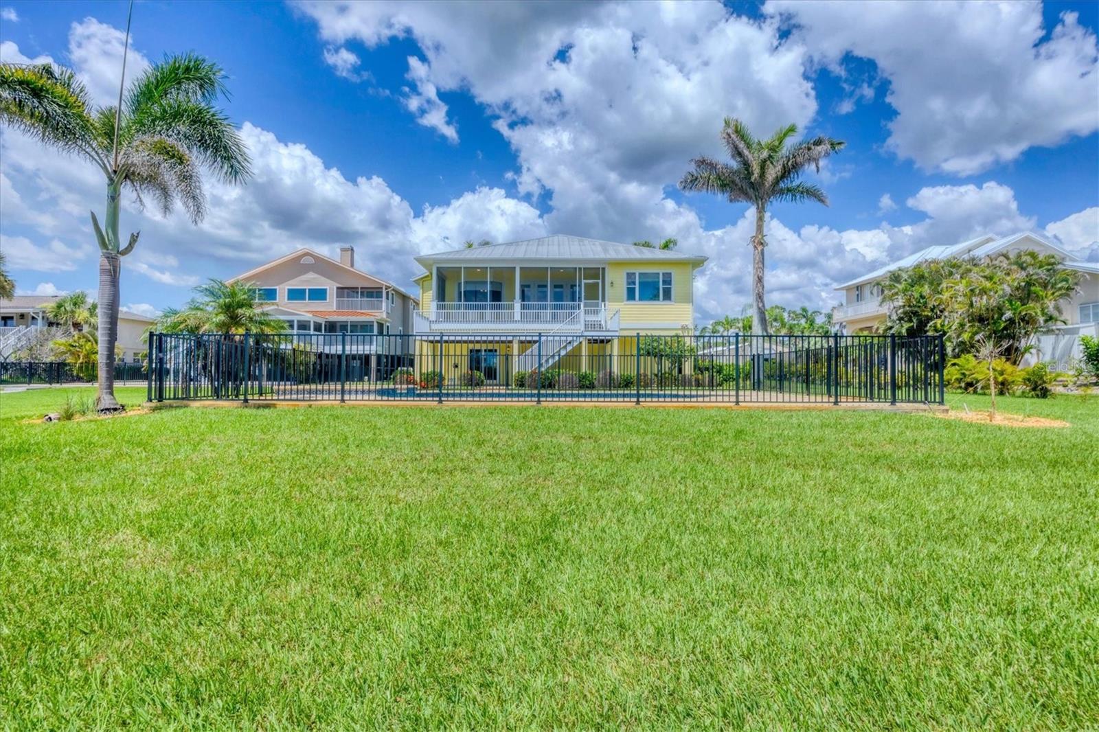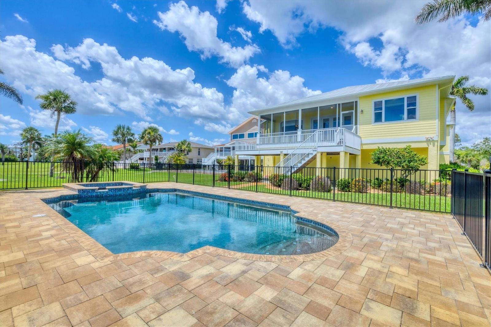 One or more photo(s) has been virtually staged. Take a Look! The price for this Key West-style waterfront residence has been adjusted. Situated on 1.27 acres, the property features approximately 100 feet of intercoastal frontage and a beautifully landscaped driveway lined with mature trees. The main living space, spanning 2,399 square feet, is located on the second floor to take advantage of the spectacular water views. As you enter the home, you are greeted by an open floor plan that includes a spacious living room, kitchen, and dining area. The home boasts three bedrooms, 2.5 bathrooms, tile flooring throughout the great room, tray and coffered ceilings, and a light and airy color scheme. The primary bedroom and large office have gleaming wood floors. The large open kitchen is equipped with SS appliances, granite countertops, and a generous island with seating space. A large pantry and laundry room are off the kitchen. The open floor plan is perfect for entertaining, with a living room that opens to a 281 sq. ft. screened lanai overlooking the sparkling saltwater pool and water views. The home also features high-impact glass windows, a metal roof, all Hardie board siding, and an elevator to the second floor. An 8-car oversized tandem garage and added storage or a large workshop, which has 1,034 sq. ft. and a bathroom. A new dock, complete with a 10,000 lb. lift for your boat and watercraft, has been installed. The main living space was unaffected by storms. This exquisite home offers the perfect blend of luxury and comfort, allowing you to enjoy beautiful marine life with its convenient location just minutes from Manasota Beach. Relax and enjoy the world-famous sunsets at Manasota Key. This is more than a home, it’s a lifestyle.