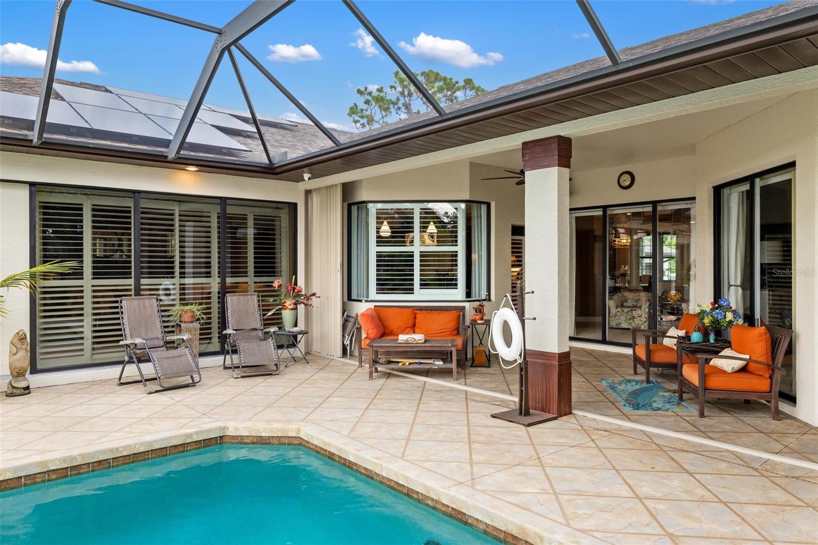 Sailboat Waterway. This custom coastal estate sits on over an acre of lush, landscaped grounds overlooking the tranquil waters of Forked Creek, it offers the perfect blend of privacy and natural beauty. The tropical setting features coconut palms, banana trees, multiple mango varieties, olive trees, and more—creating a serene oasis. A heated pool, spacious fire pit, and multiple entertaining areas provide the ideal backdrop for lively gatherings, breathtaking sunsets, or peaceful evenings under the stars. With a private boat lift and two jet ski lifts, you’re just minutes from Lemon Bay, the Intracoastal Waterway, and pristine Gulf beaches. Inside, 3,487 sq. ft. of living space showcases elegant craftsmanship and an effortless open flow. Enjoy a sunset room with stunning water views, an open kitchen with cherrywood cabinetry, granite counters, center island, wrap-around seating, wall oven, glass cooktop, and pantry—all connecting to a great room with a fireplace and dining alcove. Additional features include a granite-wrapped bar room with dual kegerator and fireplace, a formal dining room, and a versatile laundry/craft room. The private primary suite captures tranquil water views and offers a walk-in closet, home office, and spa-inspired bath with Roman shower, Jacuzzi tub, and dual vanities. The oversized garage/workshop includes 10 ft. custom cabinetry and generous outdoor parking. Recent upgrades include hurricane-impact windows and doors, new AC, newer roof, fresh interior/exterior paint, retractable pool alcove barrier, tray ceilings, and a dual Tesla Powerwall 3 system for true energy independence. This home has never sustained hurricane damage and includes optional Gulf beach club membership. With no HOA, a prime location, and every amenity designed for comfort and style, this coastal estate is truly one of a kind—a must-see for those seeking the ultimate in waterfront living.