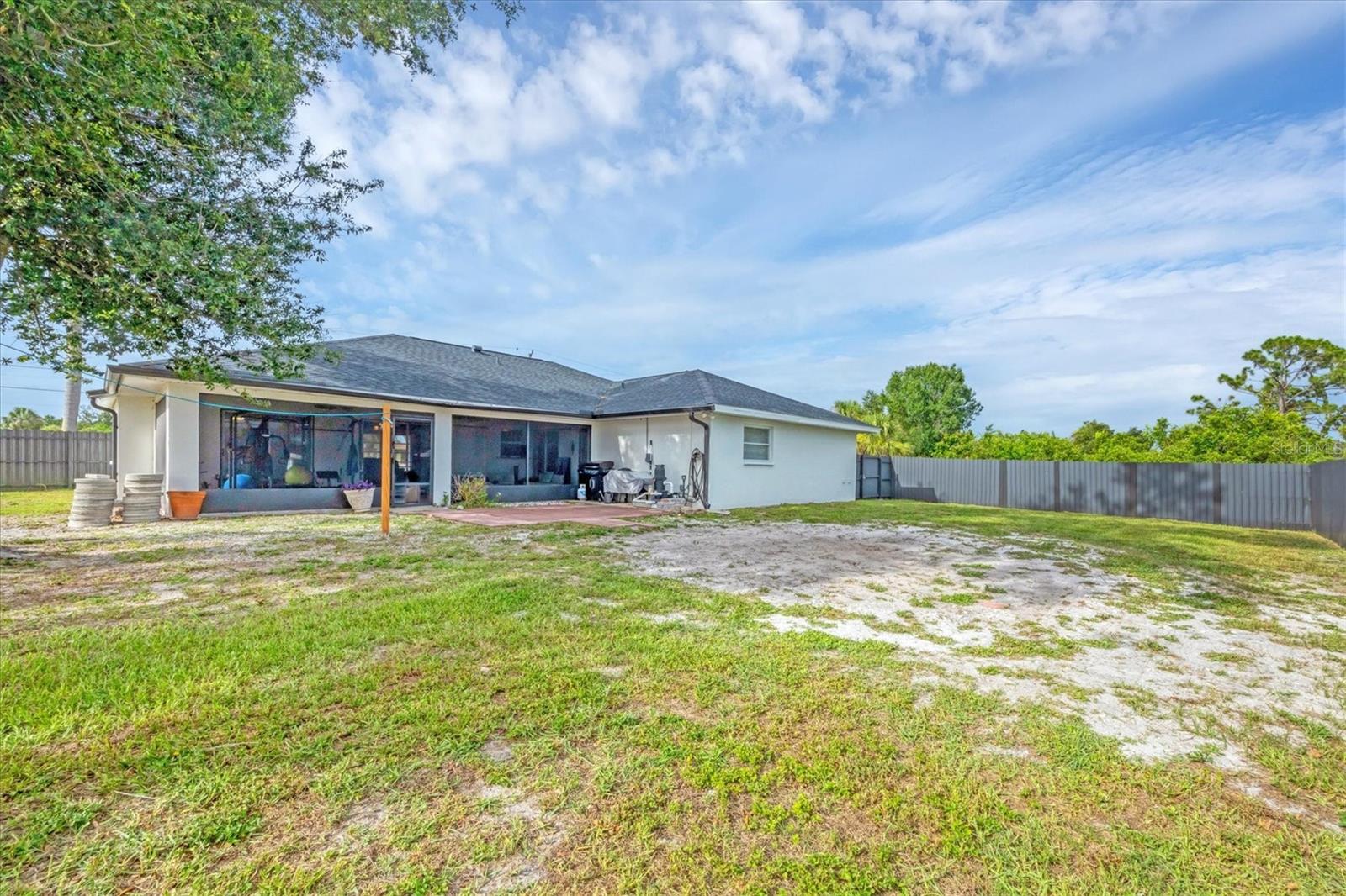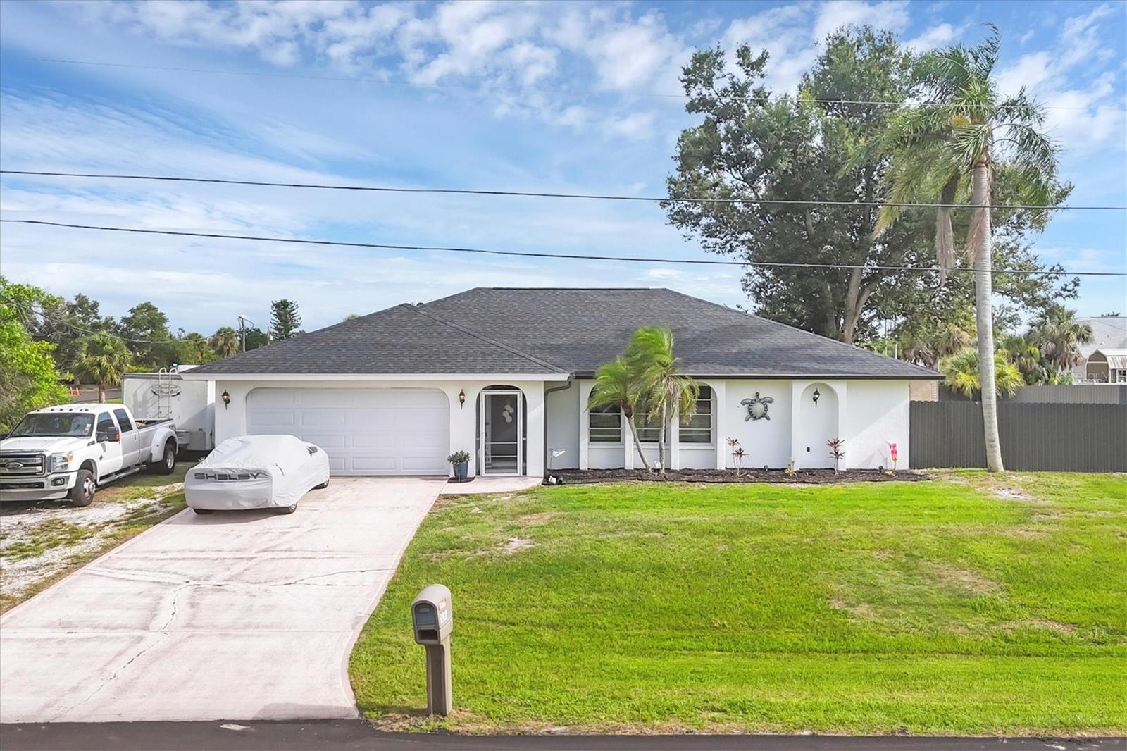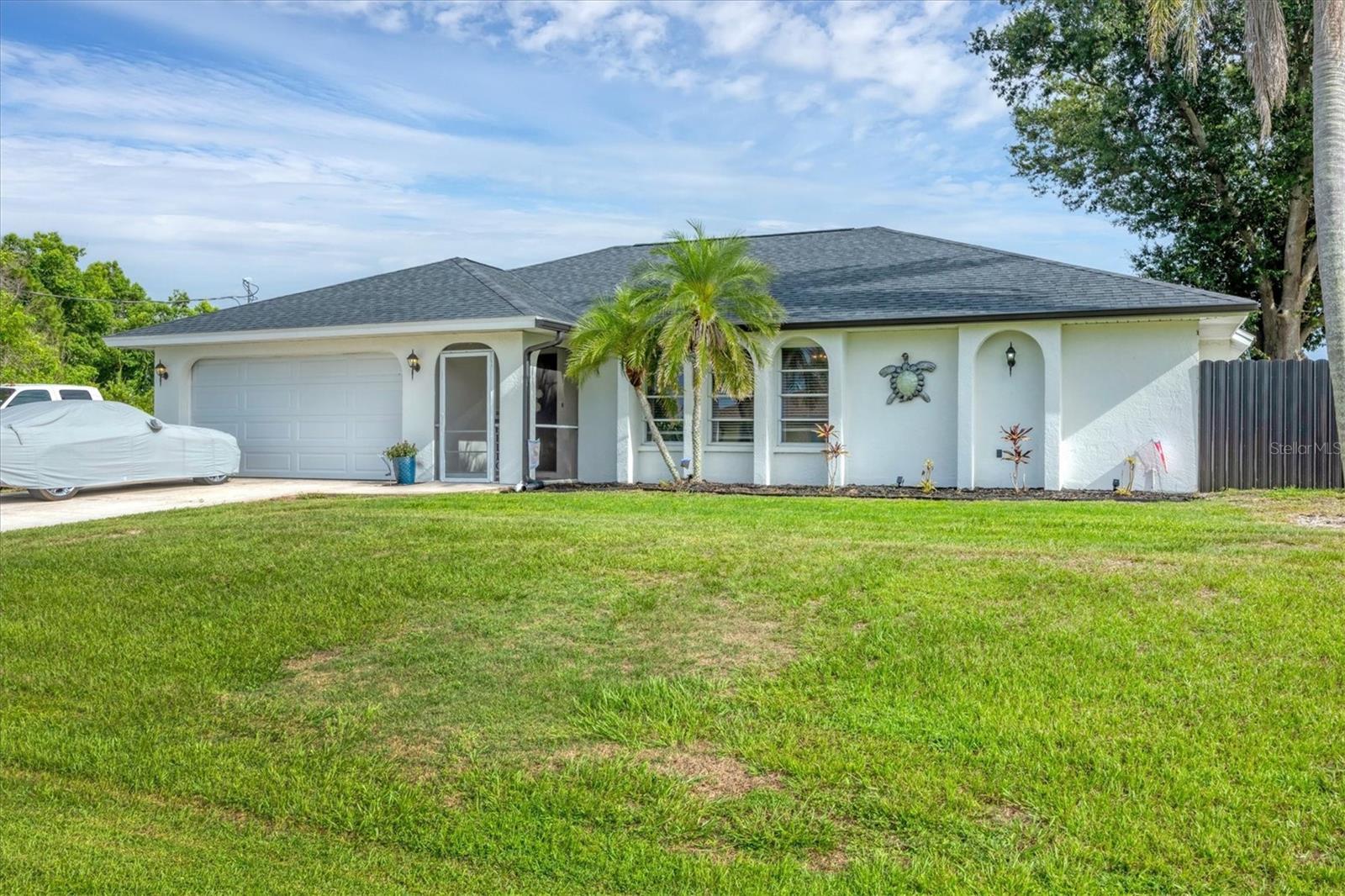 DOUBLE LOT with a 3/2/2 spacious split floorplan home in East Englewood. X Flood Zone and NO Prior Flooding! NO HOA & NO deed restrictions - store your RV, boat and more in your private fenced backyard. Plenty of room to build a detached garage and a pool. New Aluminum Dura Fence with 10 foot wide gate. 2023 Roof - 2019 A/C - 2025 Water Heater - 2024 Garage IMPACT Door - New Watersoftner System Plus entire home has been replumbed. The above ground pool was removed and sellers left the pool pump in place. The layout of this home is unique and offers an opportunity and flexibility to design your living space to fit your lifestyle. The living room faces the front of the home and the additional family room is on the opposite side of the kitchen. If you do not need two sitting areas, you could set up an Office/Den, Game Room, Formal Dining Room etc. The primary suite is left of the living room and has sliders looking out to the backyard. The 2 guest bedrooms are on the opposite side of the home past the flex / family room. The guest bathroom also serves as a convenient pool bath with a side door out to the backyard. 3 sets of pocket sliders flow out onto the oversized screened lanai. Enjoy fishing, boating, golfing, walking the beach, listening to live entertainment, checking out local Tiki Bars and fine dining? You found your next dream home in Paradise! Call for a private showing today!