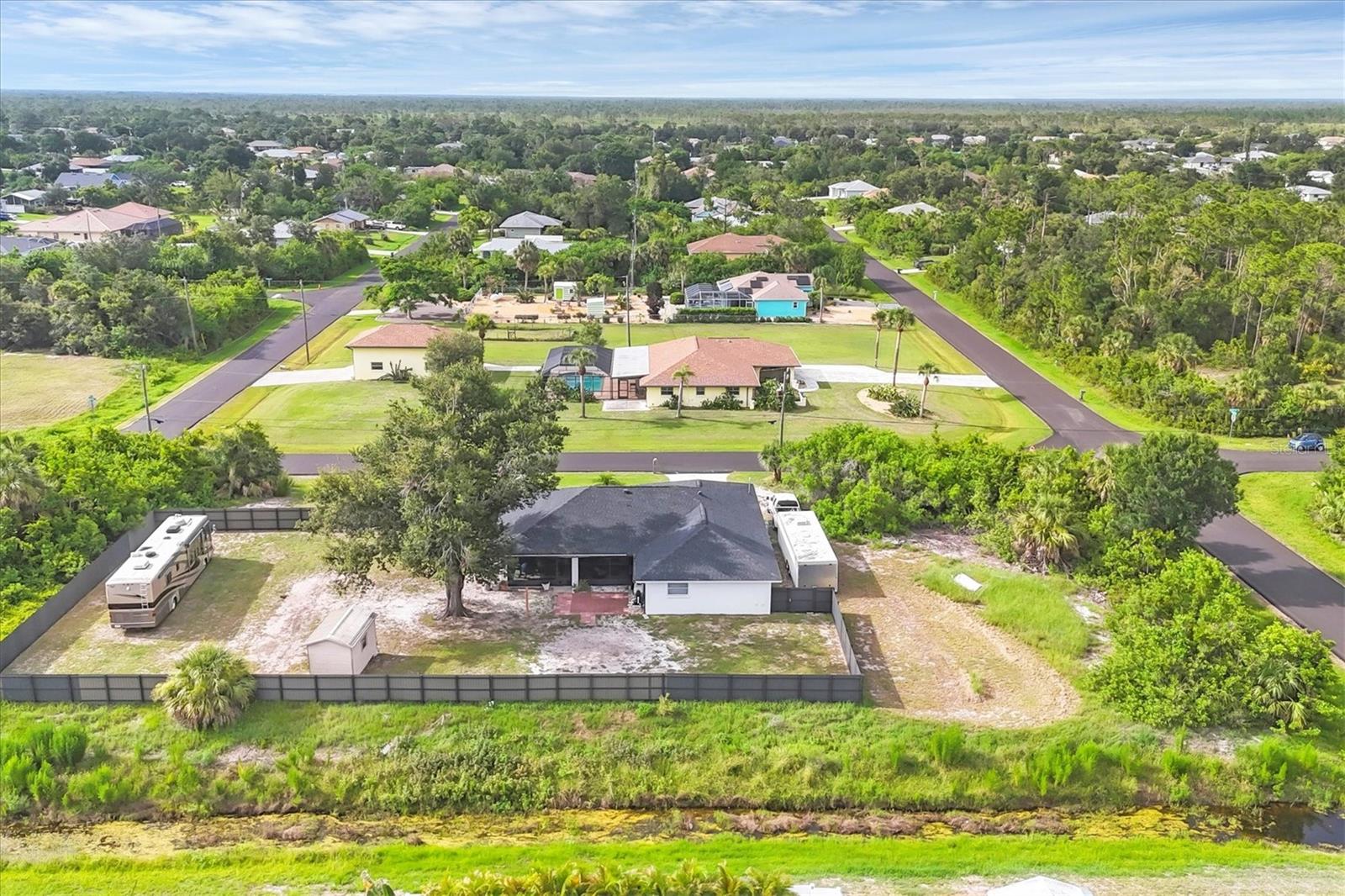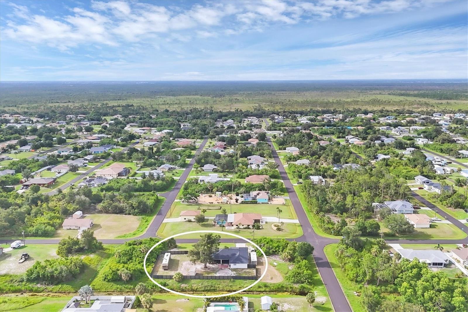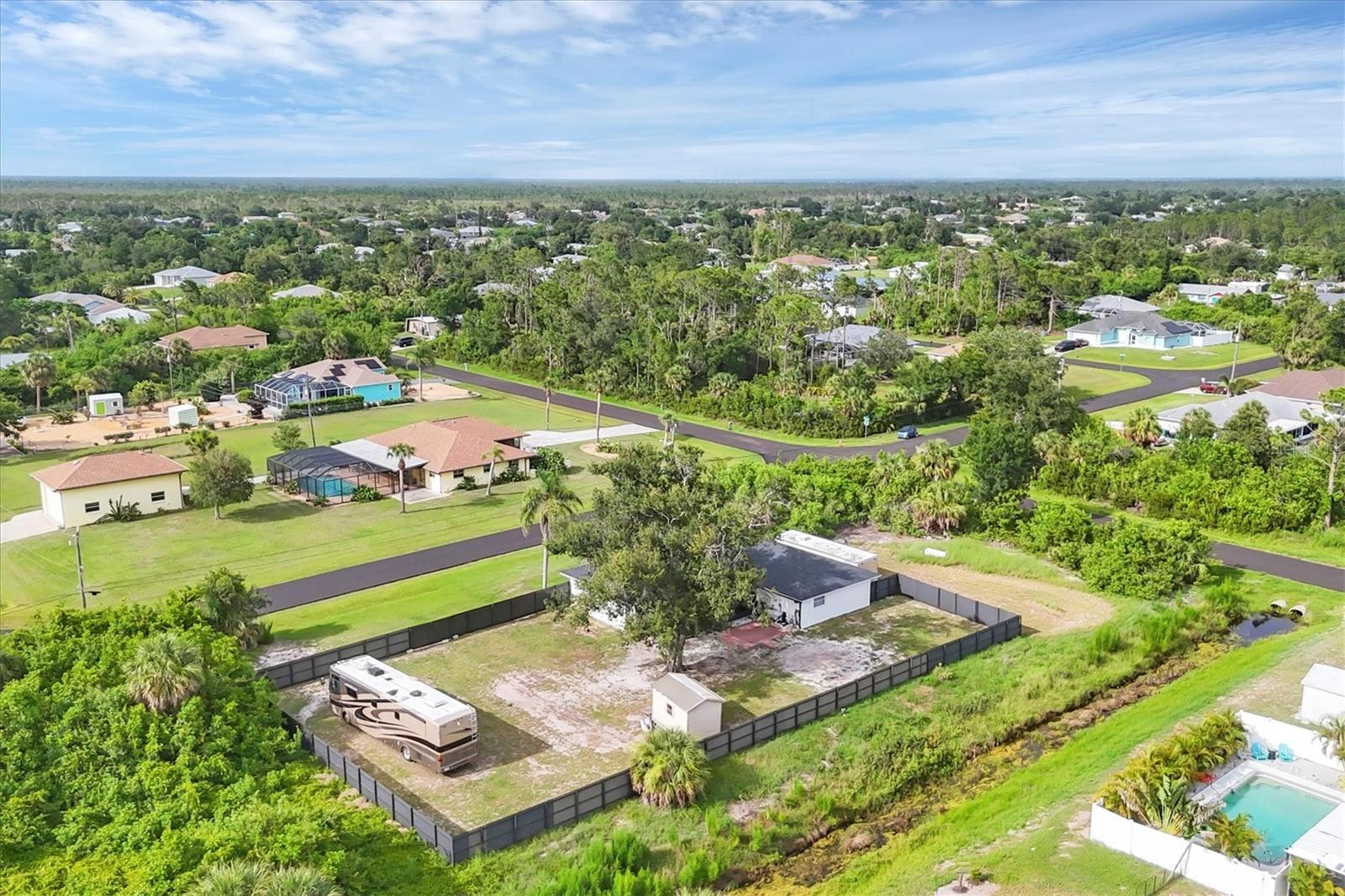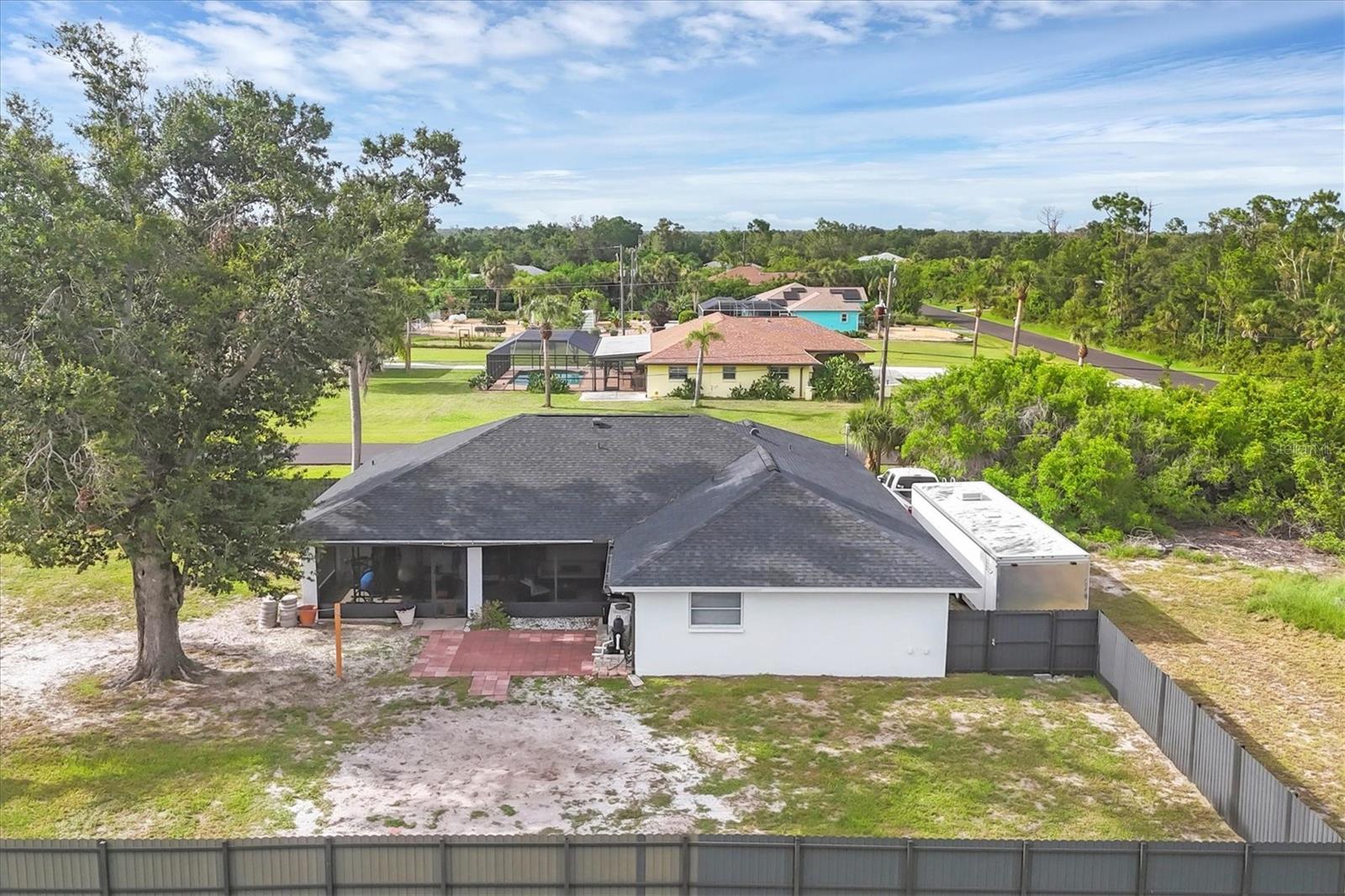 DOUBLE LOT with a 3/2/2 spacious split floorplan home in East Englewood. X Flood Zone and NO Prior Flooding! NO HOA & NO deed restrictions - store your RV, boat and more in your private fenced backyard. Plenty of room to build a detached garage and a pool. New Aluminum Dura Fence with 10 foot wide gate. 2023 Roof - 2019 A/C - 2025 Water Heater - 2024 Garage IMPACT Door - New Watersoftner System Plus entire home has been replumbed. The above ground pool was removed and sellers left the pool pump in place. The layout of this home is unique and offers an opportunity and flexibility to design your living space to fit your lifestyle. The living room faces the front of the home and the additional family room is on the opposite side of the kitchen. If you do not need two sitting areas, you could set up an Office/Den, Game Room, Formal Dining Room etc. The primary suite is left of the living room and has sliders looking out to the backyard. The 2 guest bedrooms are on the opposite side of the home past the flex / family room. The guest bathroom also serves as a convenient pool bath with a side door out to the backyard. 3 sets of pocket sliders flow out onto the oversized screened lanai. Enjoy fishing, boating, golfing, walking the beach, listening to live entertainment, checking out local Tiki Bars and fine dining? You found your next dream home in Paradise! Call for a private showing today!