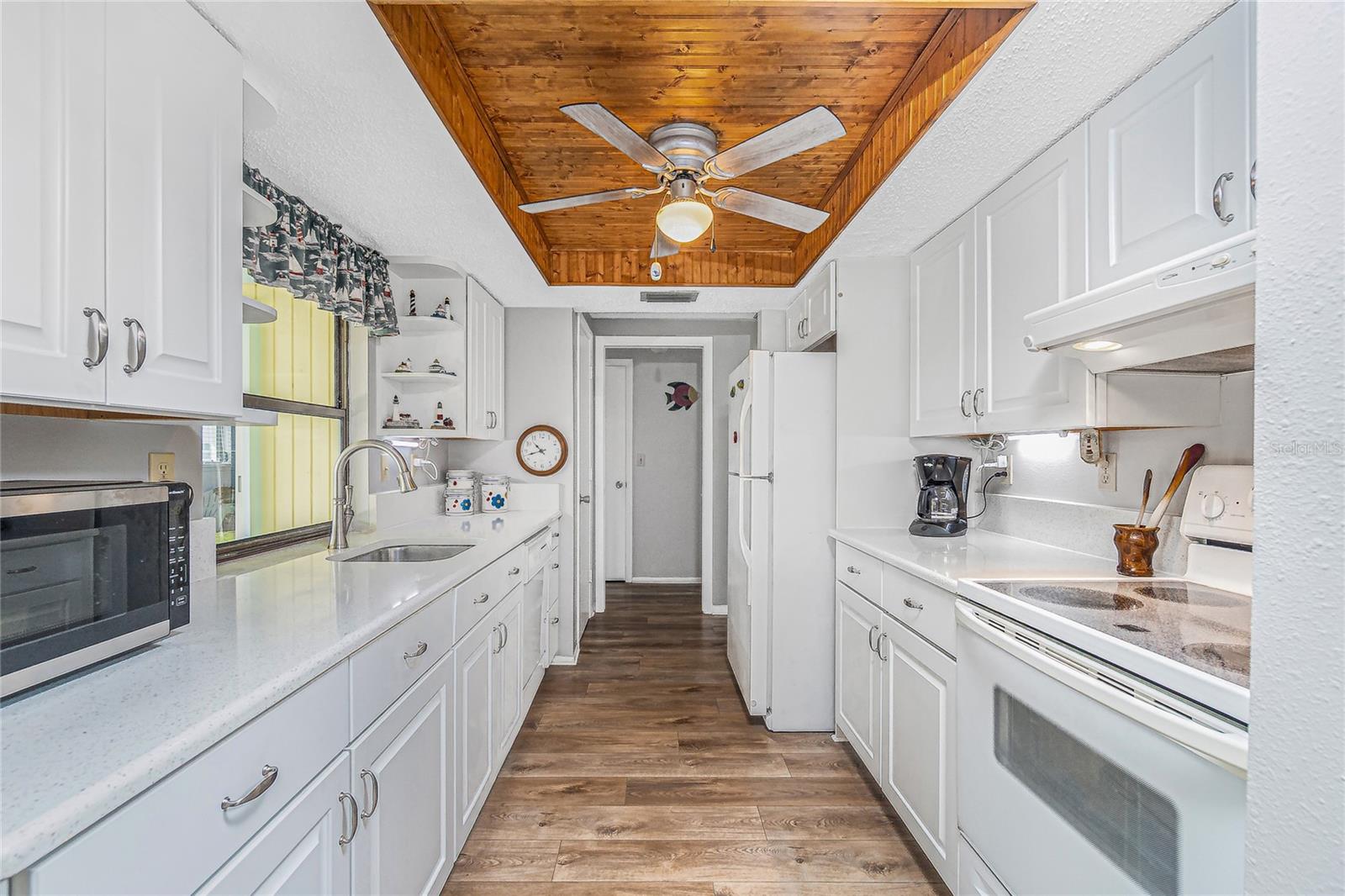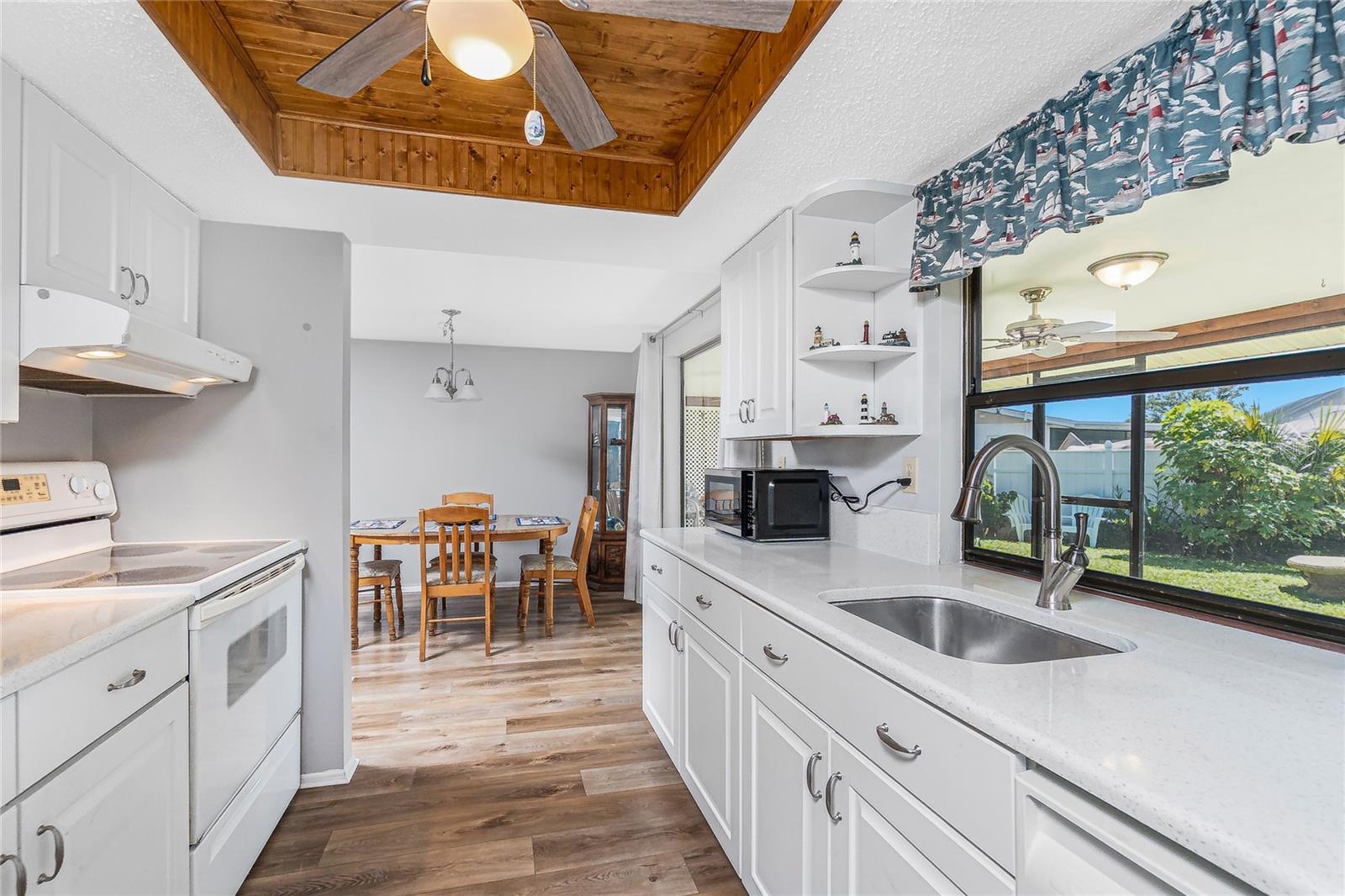 NEW ROOF 2022! NEW AC SYSTEM 2022! New Accordion hurricane shutters for 384’ tiled lanai! NOT in a mandatory flood zone so your lender will NOT require flood insurance. Take a look at this Extraordinarily well cared-for 2 bedroom/2 bath/1 car garage home in the best part of Grove City! You'll have easy access to the community boat ramp just a few blocks away! The L shaped Living/dining room offers plenty of room to entertain, with sliding glass doors from the dining room opening onto the lanai. The galley kitchen has been updated with white raised face cabinetry and solid surface countertops, recessed lighting and natural wood accent, and has a handy pass through window to the lanai. There's a closet pantry for extra storage, plus another large closet in the hallway. Appliances include: refrigerator, smooth top stove, and dishwasher. Popular Split plan provides privacy for each of the two Suites. The Primary bedroom has a walk in closet and another set of sliding glass doors to the lanai, and the Primary bath has an updated vanity, mirror, lighting and combo tub/shower! Guest bedroom is quite spacious and also has a large walk in closet, plus a 3rd set of sliding glass doors to the lanai. The Guest bath has an updated vanity, updated lighting and mirror, and entire shower has been redone! All new easy care laminate flooring throughout! Huge lanai with nonslip tiled flooring, two ceiling fans and 2 person wicker swing is the perfect place to relax in the evening or have that morning cup of coffee, and overlooks the private fenced backyard. The one car garage houses the washer and dryer and updated water heater. (2021) It’s just 4 miles to Englewood Beach, 3 blocks to your COMMUNITY BOAT RAMP providing fast and easy access to Lemon Bay and on out to gorgeous Gulf of Mexico, 3 blocks to 3 parks with a total 387 acres featuring numerous walking trails through woodlands and coastal habitat, as well as children’s playgrounds. 2.9 miles to Walmart and 1.6 miles to Publix! This little gem will not last long! Don't shovel snow any longer - make this your Florida dream home!