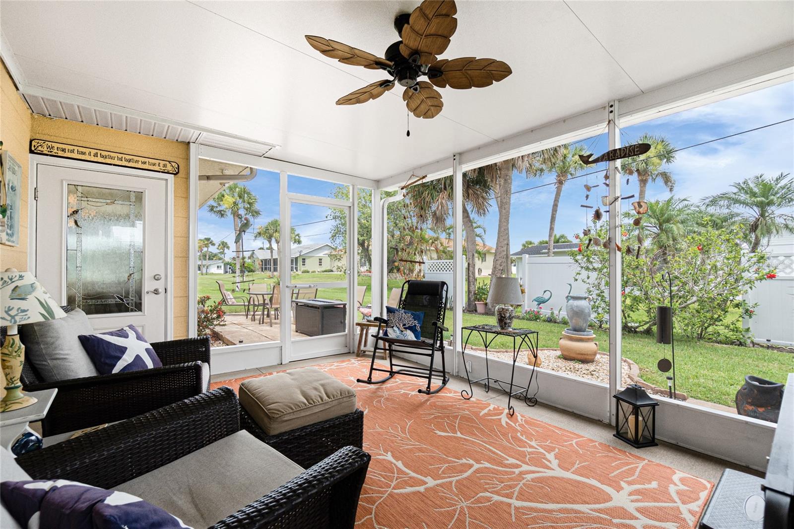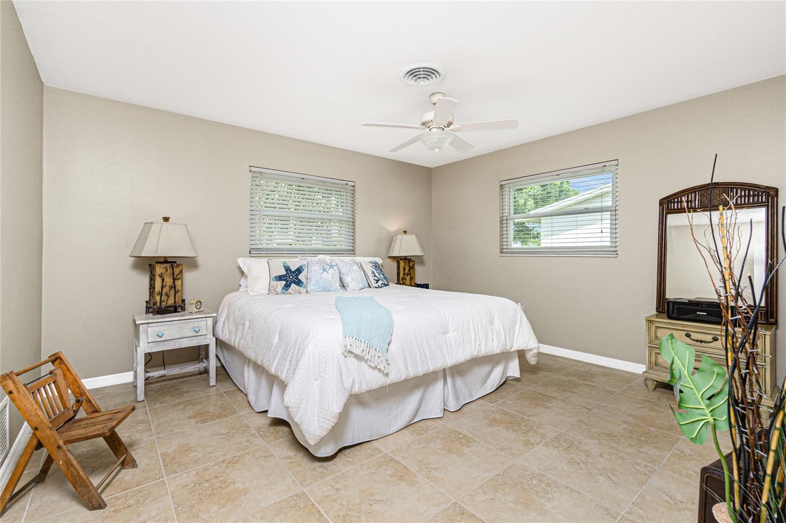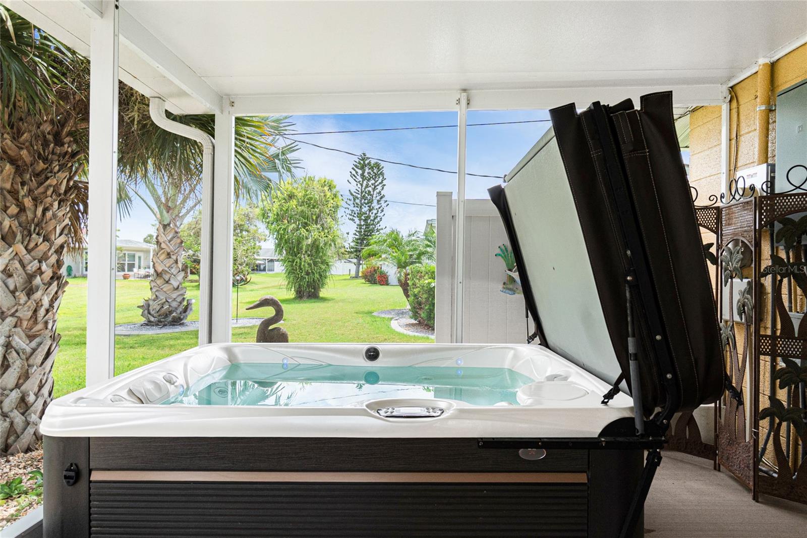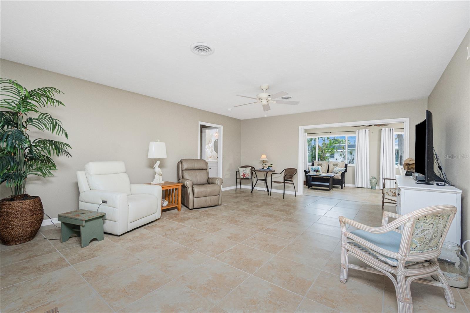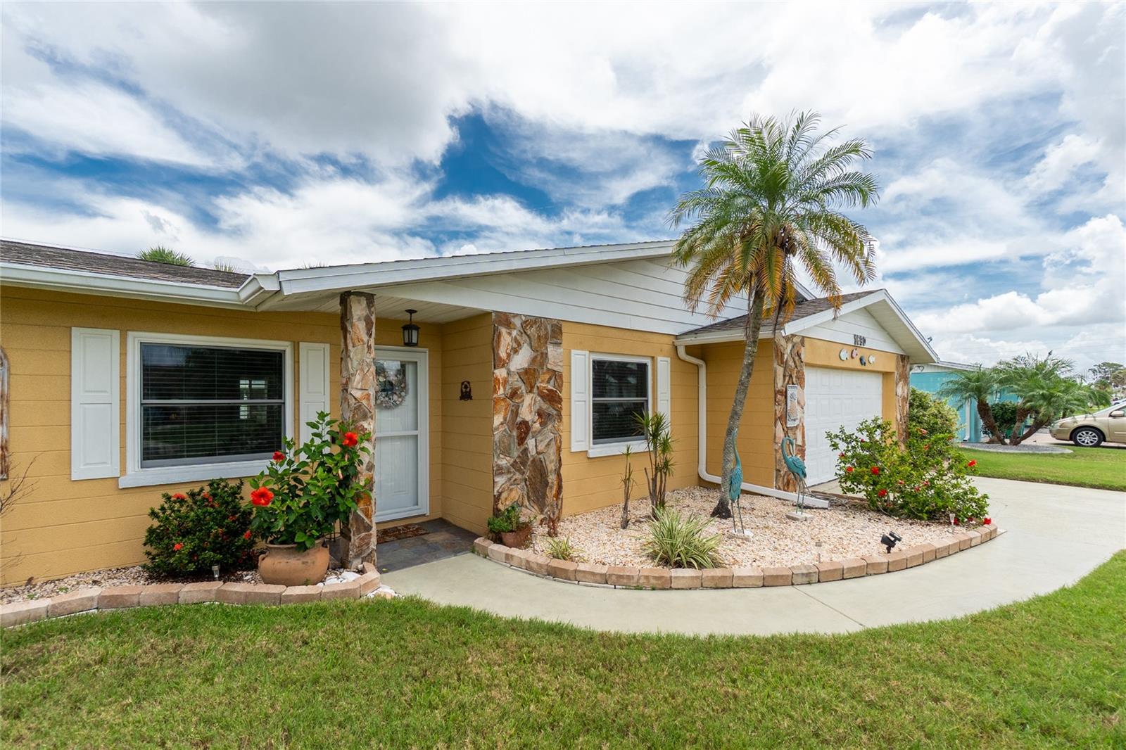 IF YOU WANT A MOVE-IN READY HOME, LOOK NO FURTHER! Starting with the great curb appeal, this home will please even the pickiest of buyers! IMPACT WINDOWS AND DOORS, IMPACT OVERHEAD GARAGE DOOR, NEW AC (2024), NEW ROOF (2020), REPIPED OVERHEAD, ALL NEW KITCHEN (CABINETRY AND COUNTERTOPS, UPDATED BATHROOMS, AND TILED FLOORING THROUGHOUT! This open floor plan features a spacious living room with sliding glass doors to the Family room, and formal dining area with two corner cabinets, great for displaying your favorite dishware. The kitchen is light and bright, with soft close doors and drawers, decorative upgraded granite countertops, box ceiling w/ceiling fan, recessed lighting and double door pantry. Appliances include: smooth top stove, microwave, dishwasher, and French door refrigerator. (all LG). The primary bedroom has a stylish barn door, wall closet, ceiling fan, and en suite primary bath. The Primary bath has an all new shower stall, pretty vanity w/solid surface countertop, and linen closet. The GUEST BEDROOM - on the other side of the house- could actually be a 2nd Master suite, as the Guest Bath is immediately adjacent. Guest bedroom features a walk in closet and ceiling fan, and Guest Bath has a combo tub/shower (tub has been reglazed), new toilet, and linen closet. The versatile Family room is so light and bright and has a ceiling fan and door to the Lanai. The oversized two car garage houses the washer and dryer, utility tub, storage closet and lots of extra storage! The lanai is a great place to enjoy morning coffee or an evening glass of wine, while relaxing in your SALTWATER HOT TUB! Get the grill fired up and enjoy kicking back out on the patio, on those cooler Florida eveningsThe pretty backyard is the icing on the cake, with vinyl privacy screen between you and your backyard neighbors. Seriously, THIS HOME WILL NOT LAST LONG! Buy now while you can and start enjoying FLORIDA SALT LIFE!