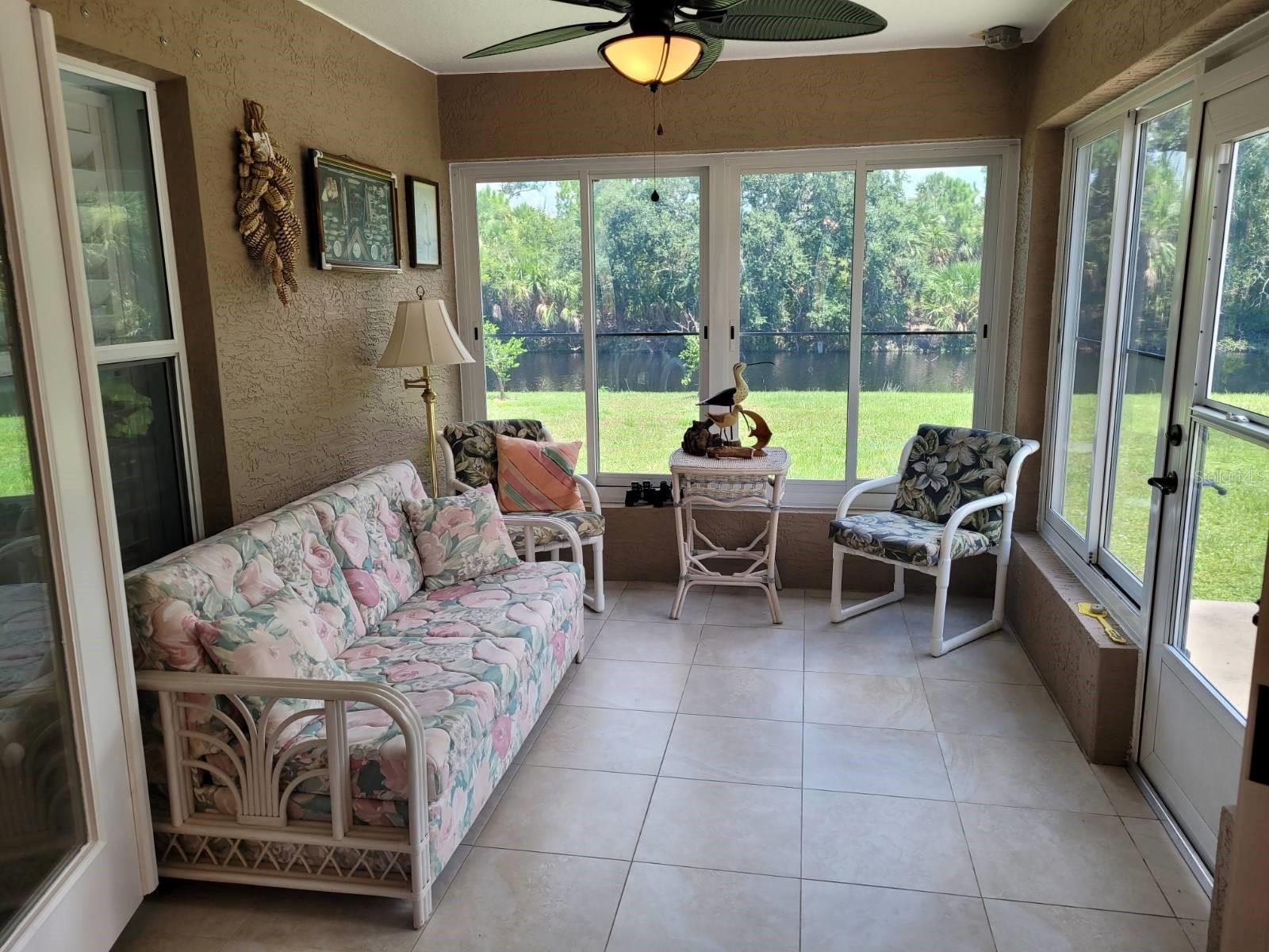 Lovely and spacious two bedroom canal home on the Newgate waterway and Ready for occupancy! FURNISHED AND TURN-KEY. This home checks all the boxes under a $300k price point with a new roof installed in 2023. Sellers added lots of upgrades to this home including humidistat, insulated lanai, extended concrete pad along the rear of the home, plywood flooring and lighting in attic for extra storage. Double glass french doors adds lots of light and leads you out to the enclosed Florida seasonal room. Both bedrooms have large walk-in closets and porcelain tile throughout entire home. Everything you need is in this home and more! Picture yourself in the Florida room, wired for television, either drinking your morning coffee or watching your favorite sports game. Private back yard where you will see birds, fish jumping, maybe an occasional canoe, as it backs to the Myakka State Forest. If you love to fish, you never have to go farther than your back yard and home comes with fishing poles too! If you love to tinker, or are handy, check out the garage with a utility sink, bonus area for tools and lawn equipment. If you love to cook, you will appreciate the overstock of kitchen supplies for cooking, baking, or simple meals in the air fryer. Looking for a new place to call home? All appliance stay including washer and dryer in the oversized indoor laundry area. Beautiful custom plantation shutters in both bedrooms and living room, as well as the primary bath. Maybe you are thinking of adding to your portfolio or starting one with a rental property. Home comes turnkey and is ready for you to move in immediately and NO deed restrictions. Everything you see will be left for the convenience of the new homeowner including hurricane shutters. Live where you can play on the water with several beaches and boat ramps, along with kayak launches at some of the fabulous nature parks. Catch a Spring Training game at your choice of the Tampa Bay Rays or the Atlanta Braves stadiums. Be sure to check out Dearborn street for all the shoppes, restaurants, Farmer's Market, and Pioneer Plaza for local music. Easy access to I75 if you work, enjoy day trips, or access to airports.