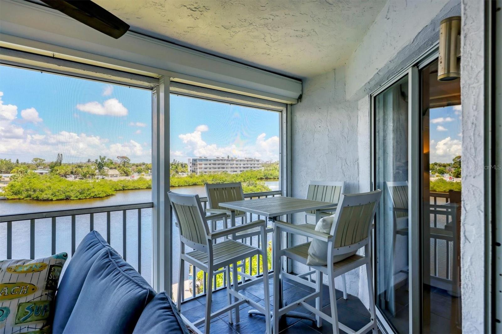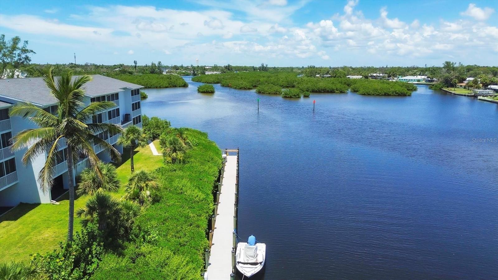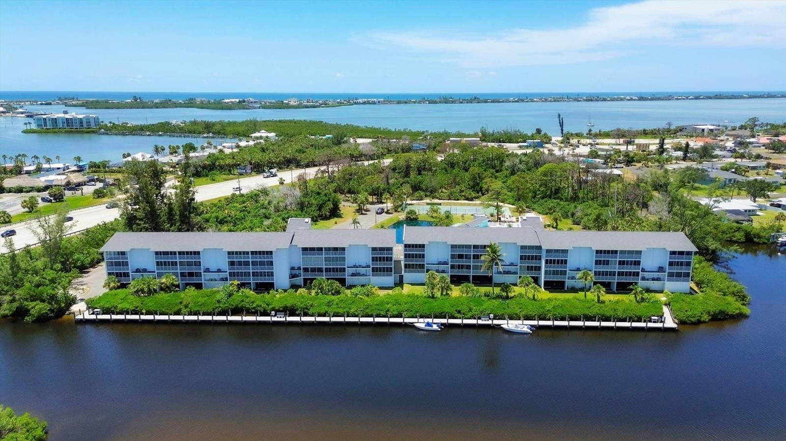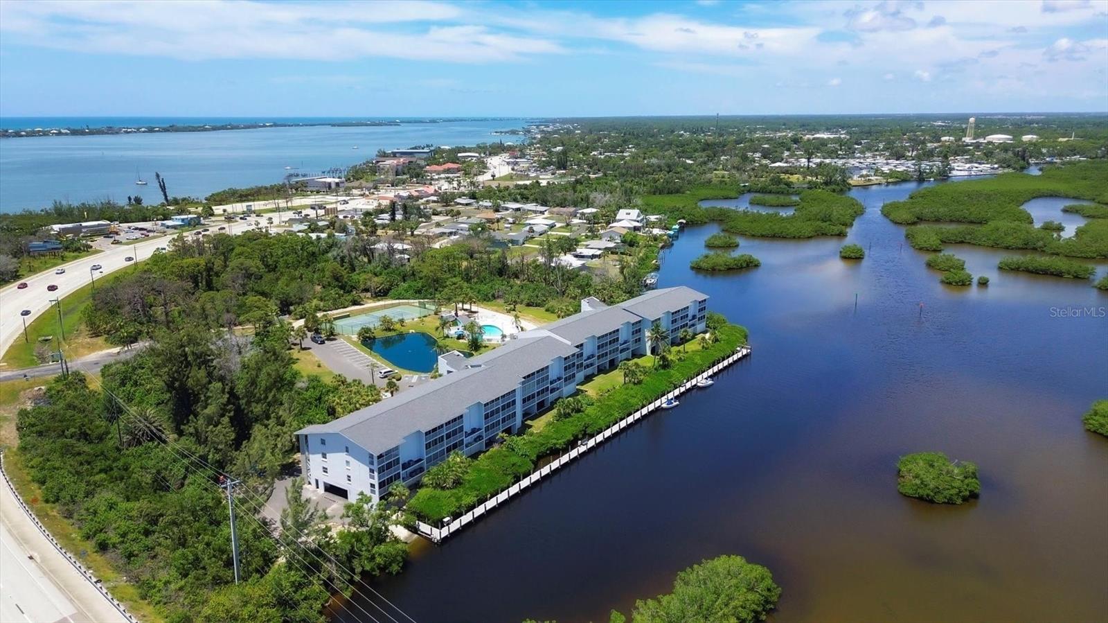 VIEWS! VIEWS! VIEWS! End unit with spectacular Gottfried Creek views from the front and side. Boat slips available for annual rental for $450/yr. (There may be a waiting list.) You're 500 yards and 1 bridge away from Lemon Bay Intercoastal. Less than 5 minutes to the beach. Top floor with an open floor plan and vaulted ceilings makes this unit light and airy. Totally remodeled with granite countertops, newer stainless steel appliances, freshly painted and new LVP flooring through out. TURNKEY FURNISHED! Additional storage included with attic access and a storage cage. Complex offers: elevators, assigned under building parking, open parking for additional vehicles, pool, spa, tennis court, BBQ's, private boat ramp, boat dock slips with water and electricity (extra fee), gated community. Pets: 1 CAT Maximum. Can be rented for a 30 day min., 12 times per year with HOA approval of tenant. Tenant CAN NOT have pets.