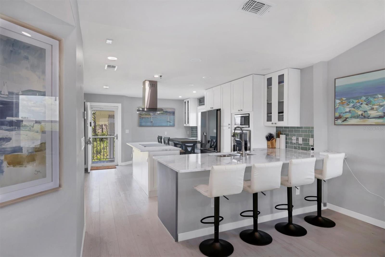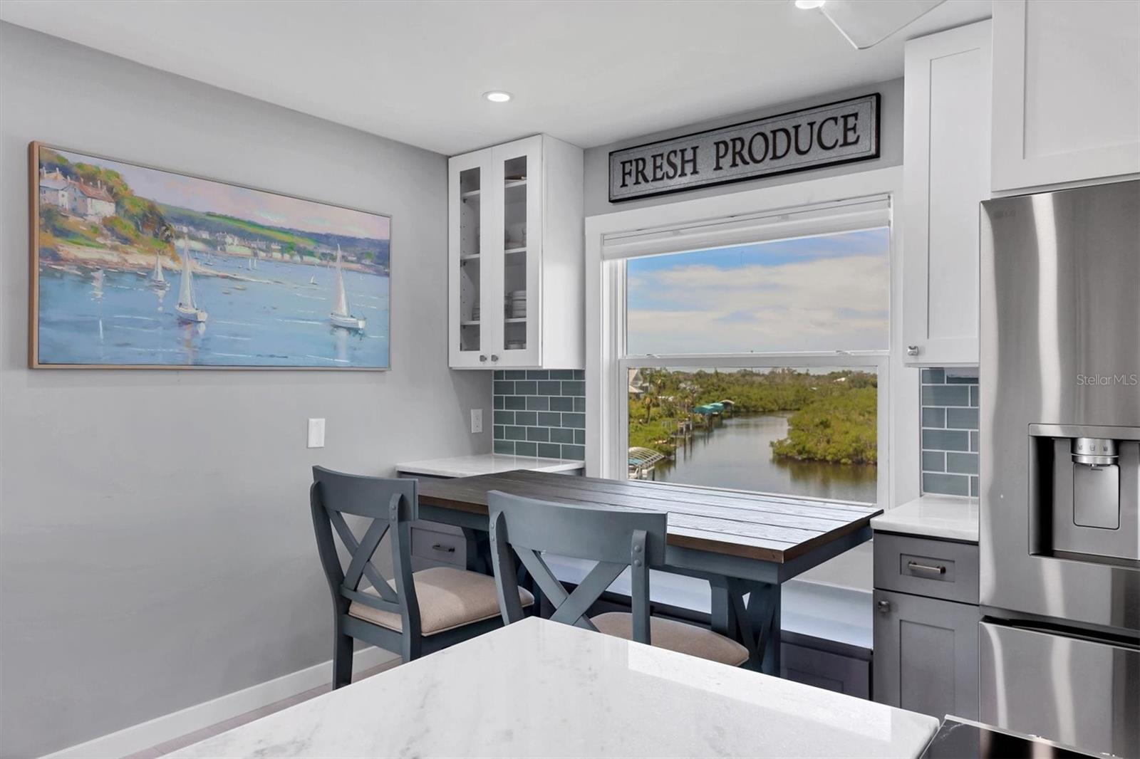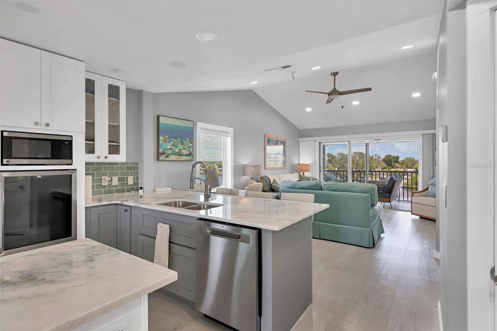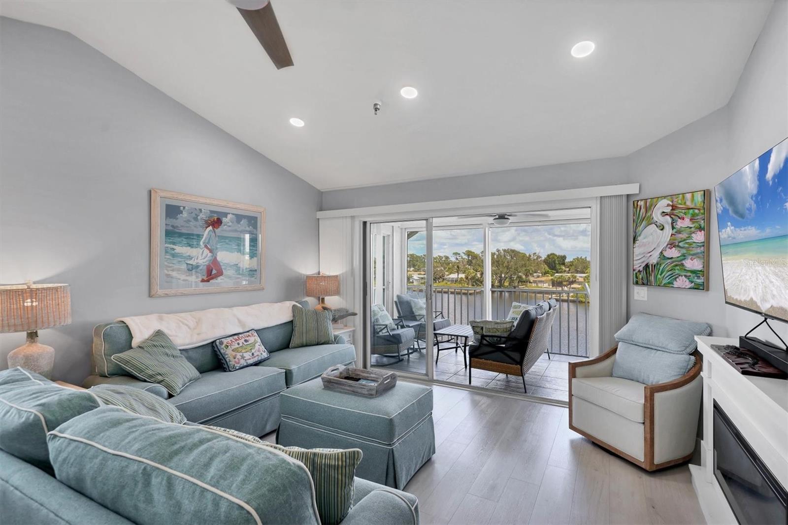 VIEWS! VIEWS! VIEWS! End unit with spectacular Gottfried Creek views from the front and side. Boat slips available for annual rental for $450/yr. (There may be a waiting list.) You're 500 yards and 1 bridge away from Lemon Bay Intercoastal. Less than 5 minutes to the beach. Top floor with an open floor plan and vaulted ceilings makes this unit light and airy. Totally remodeled with granite countertops, newer stainless steel appliances, freshly painted and new LVP flooring through out. TURNKEY FURNISHED! Additional storage included with attic access and a storage cage. Complex offers: elevators, assigned under building parking, open parking for additional vehicles, pool, spa, tennis court, BBQ's, private boat ramp, boat dock slips with water and electricity (extra fee), gated community. Pets: 1 CAT Maximum. Can be rented for a 30 day min., 12 times per year with HOA approval of tenant. Tenant CAN NOT have pets.