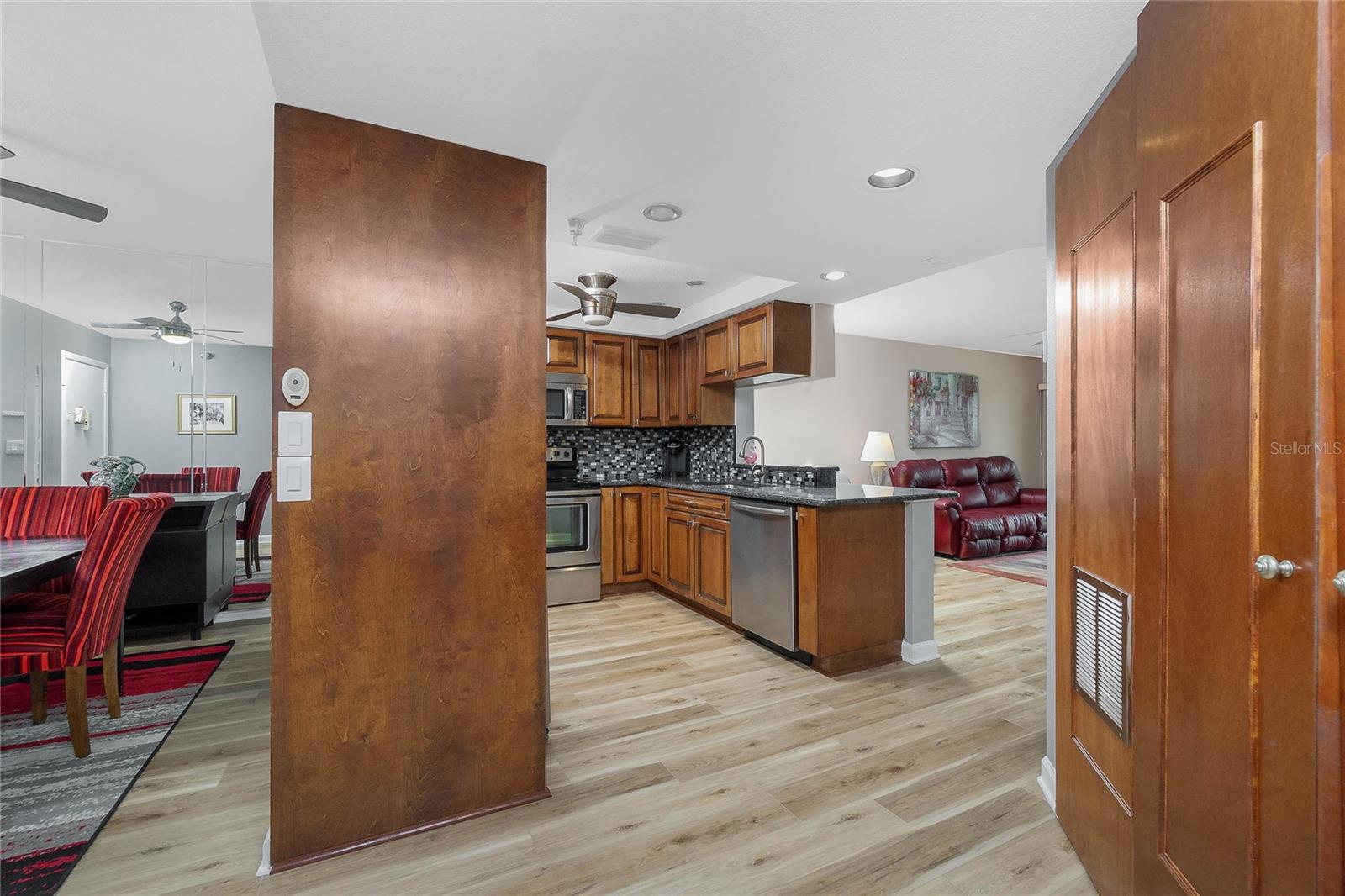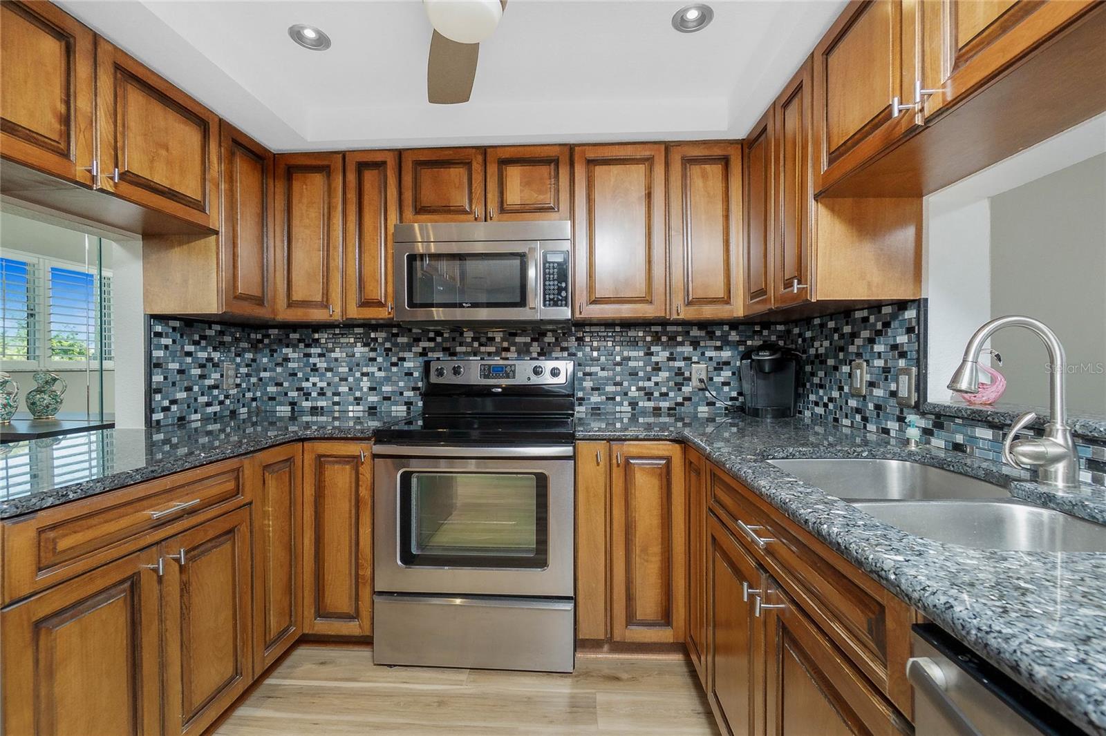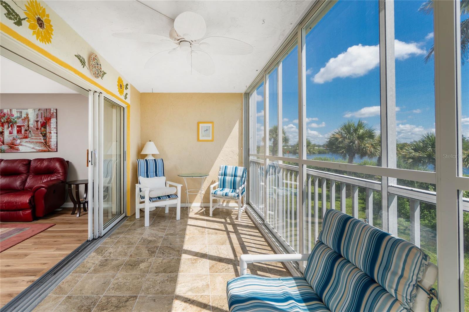 Have you been dreaming of your Florida escape? Make this updated condo yours! Located in the gated community of Lemon Bay Breezes with available boat dockage on Gottfried Creek, leading out to Lemon Bay and the Gulf of America, a heated community pool and spa, tennis courts, kayak racks, boat ramp, designated parking spaces in the garage, secure storage and an elevator. This condo is situated on the first floor with exquisite water views. There is plenty of room to spread out and enjoy the Florida lifestyle. Share a meal with friends in the light filled dining room with a pass through from the updated kitchen complete with solid wood cabinets, granite countertops, tile backsplash and stainless steel appliances. The expansive living room is open to the kitchen with sliding glass doors extending out to the lanai. Enjoy a cup of coffee while watching the sunrise in the all weather covered, screened and slider enclosed lanai. The primary bedroom offers access to the lanai, an oversized walk-in closet and beautifully updated en suite bathroom. Visitors will enjoy their stay in their own private room with an en suite bathroom. There is a laundry closet and additional custom built in storage off the kitchen. No carpet to replace here! All tile and luxury vinyl plank flooring throughout. Less than 2 miles to Englewood Beach, exceptional locally owned dining, boat and water sport rentals, weekly farmers markets on Dearborn Street, live music and nightlife all just minutes away. Just bring your suitcases!