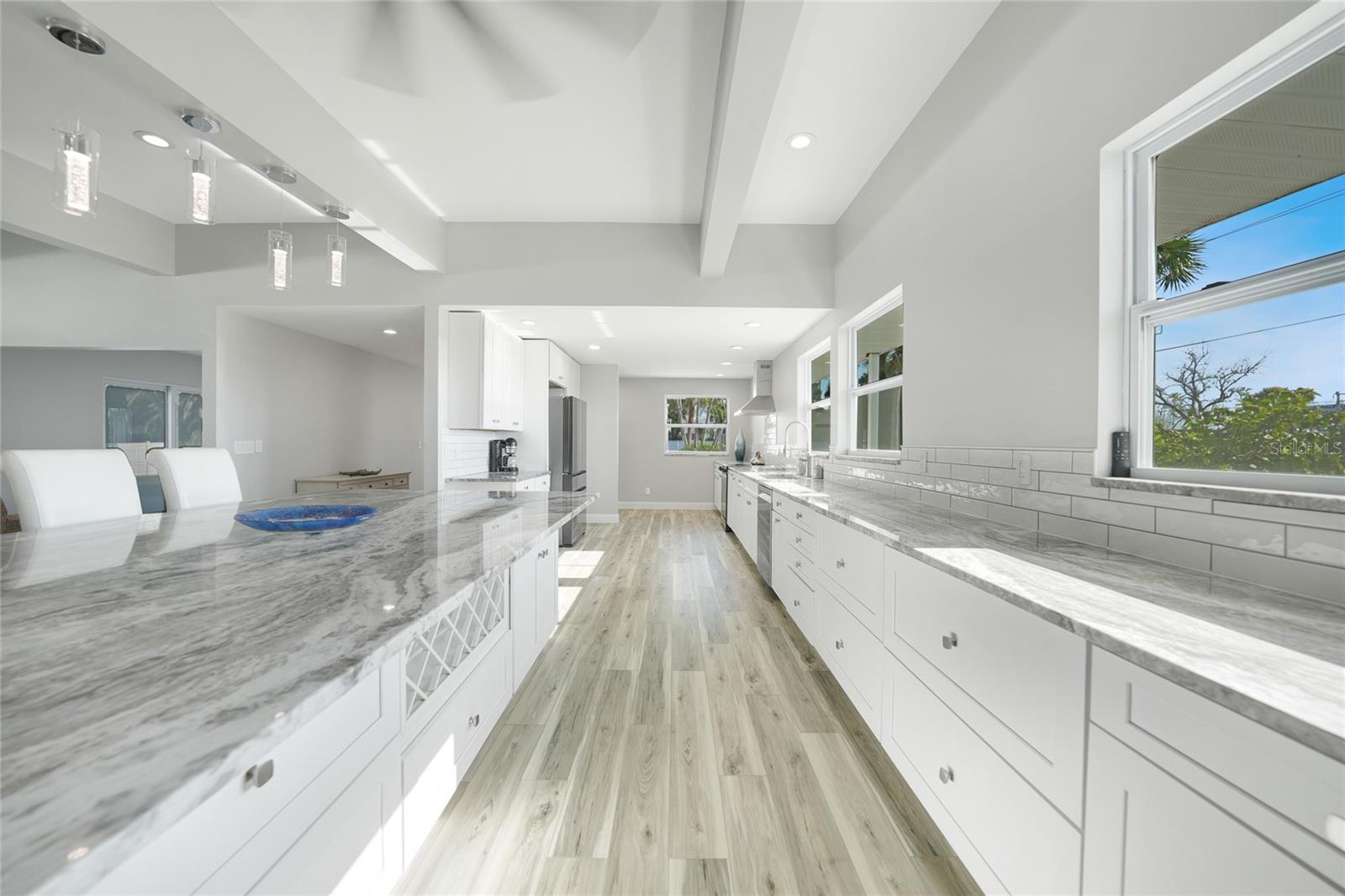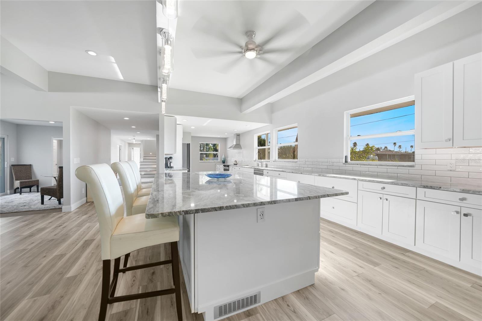 Welcome to your private retreat, a beautiful 2025 renovated 4-bedroom, 4-bath home offering the perfect balance of luxury, space, and Florida lifestyle. Set on nearly one acre of land, this property provides both privacy and room to breathe, while still being close to Gulf Coast beaches, shopping, dining, and entertainment. Updates (2025) cabinets, paint, baseboards (2024) Roof (2021) convert overhead power lines to underground (2021) City sewer connected (2019) Hot water heater 50 Gal. (2017) AC and 2 split units added. Inside, you’ll find a seamless flow with luxury vinyl flooring throughout, creating a clean, modern look that ties every room together. The chef-inspired kitchen at 37x12 is a true showstopper, featuring a massive center island, sleek countertops, and abundant cabinetry—designed for those who love to cook, entertain, and gather. The vaulted living room is elevated with exposed beams, adding a touch of coastal elegance and warmth that makes this home stand out. Each of the four bathrooms has been updated with stylish finishes, offering comfort and functionality for family and guests alike. Step outside and enjoy the expansive yard, perfect for outdoor entertaining, adding a pool, playground, garden, RV's, Boat's or simply enjoying the Florida sunshine in your own slice of paradise. With nearly an acre of land, the possibilities are endless. This move-in ready home combines modern upgrades, timeless design, and exceptional space—perfect for families, seasonal living, or anyone ready to enjoy the best of Southwest Florida. NO HOA or DEED restrictions and less than 2miles to Englewood Beach, restaurants, shopping and more! Experience the lifestyle you’ve been dreaming of!