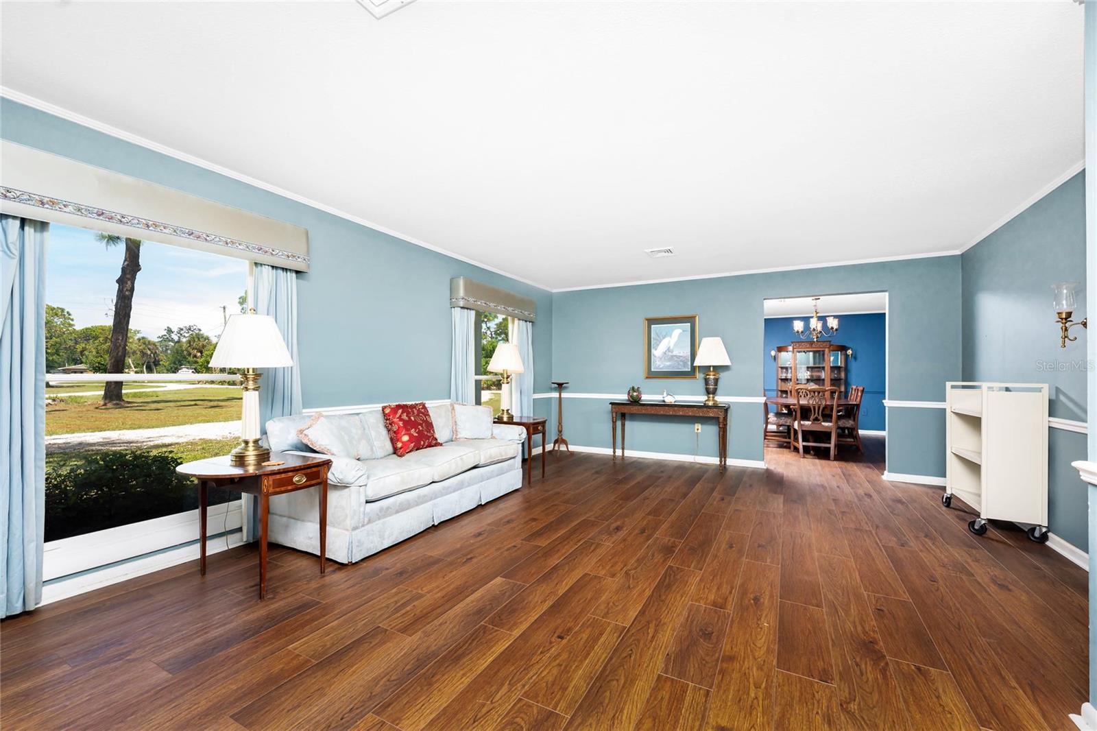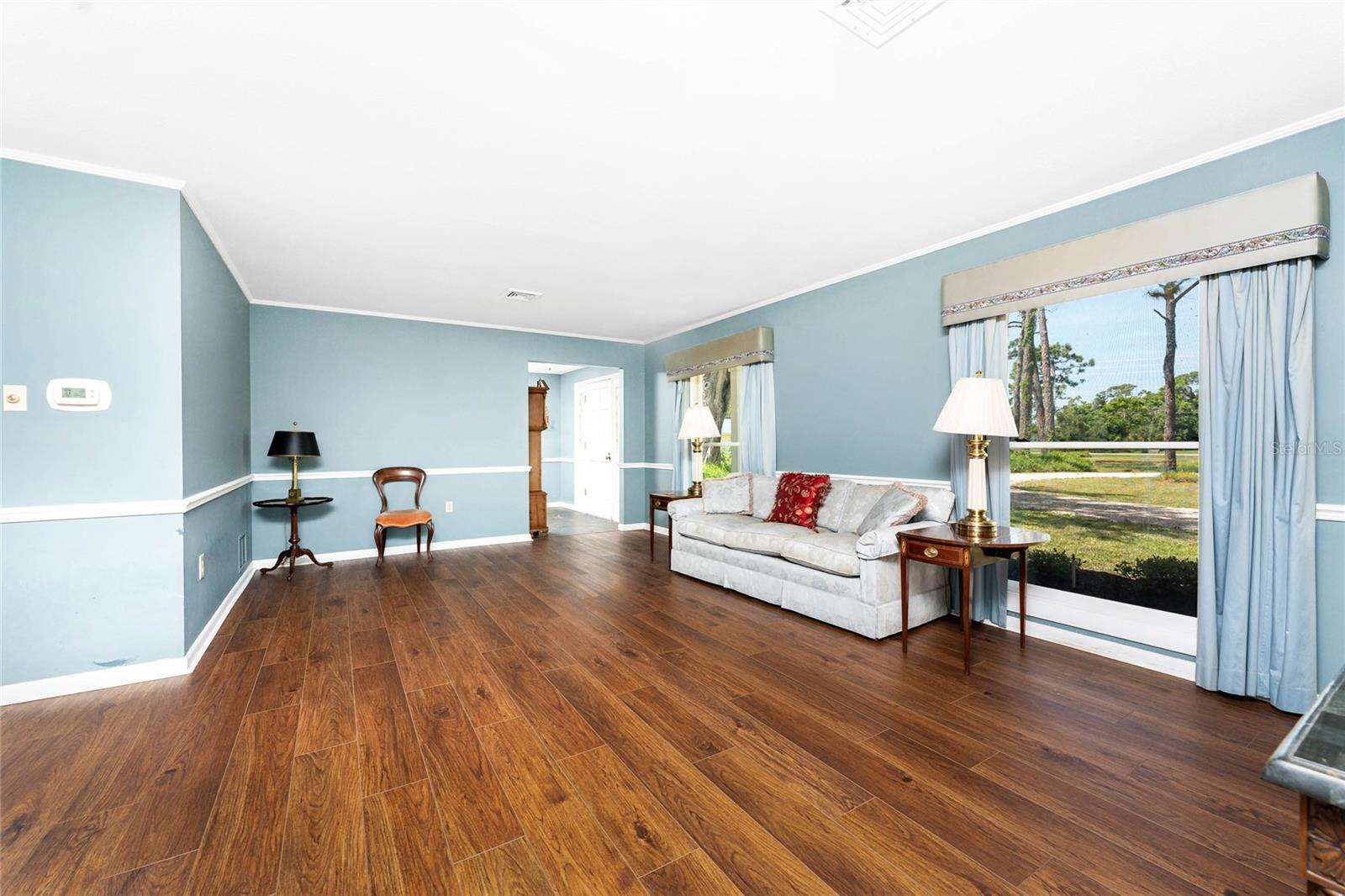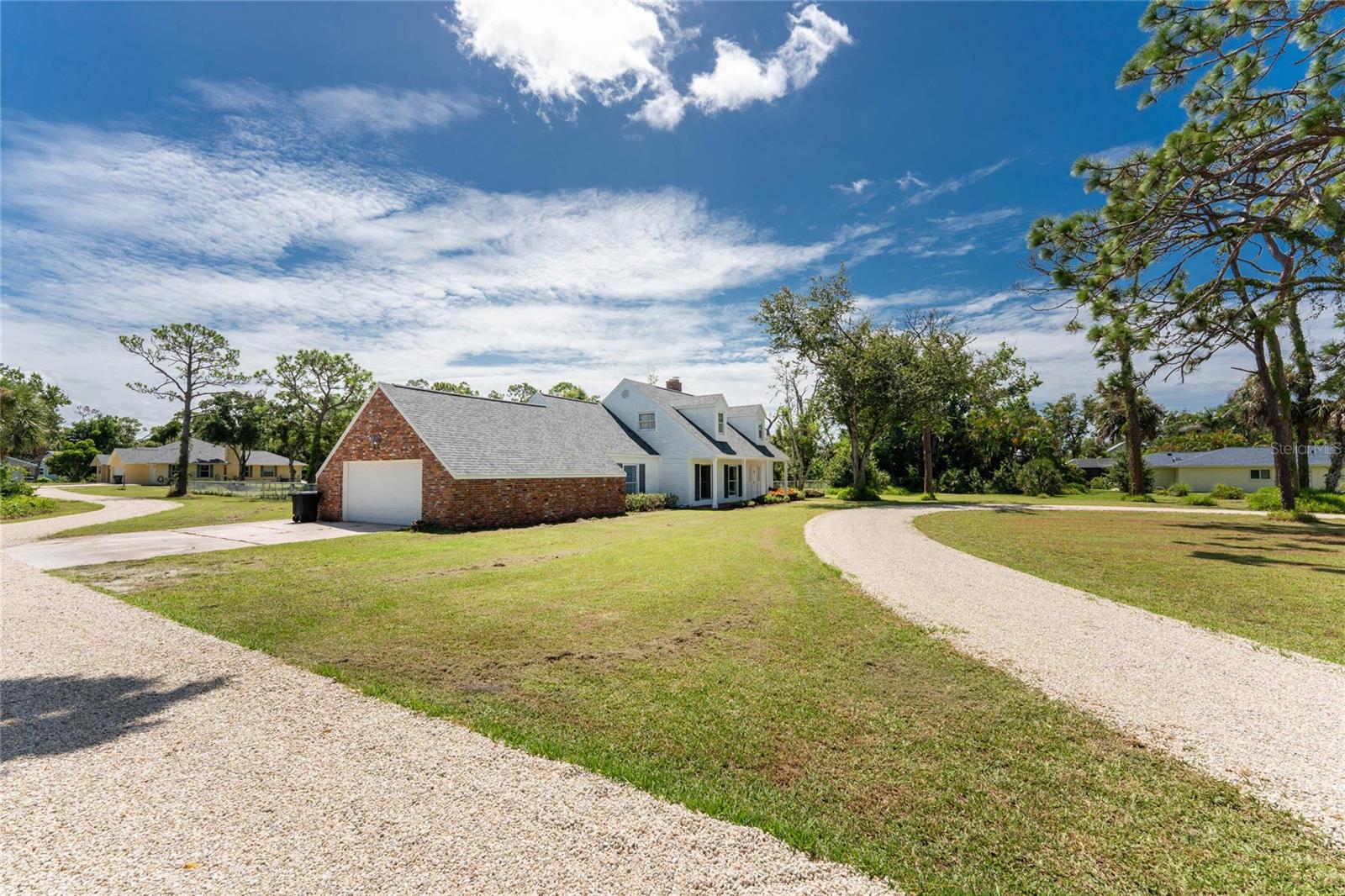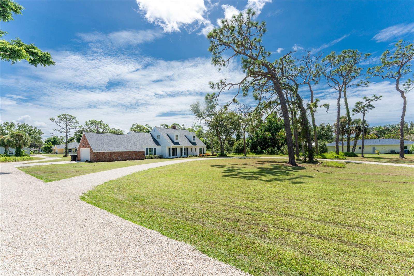 This could be the unique estate home you've been searching for! If you yearn for something different, then take a look at this classic-style 4 bedroom/ 2.5 bath two story home, situated on 1.67 acres in North Englewood. This custom built home is situated well back from the street, with a circular drive entry. The front porch covers you while you enter into an actual foyer, complete with slate floor. Both formal living and dining rooms have decorative chair railing/crown moulding and laminate flooring. The kitchen has updated cabinetry w/pull out drawers, granite countertops and a breakfast bar, perfect for your morning coffee. Appliances include: WOLF gas range, Frigidaire built in double oven, LG French door refrigerator and Kitchen Aid Dishwasher. The adjoining family room has a wood burning fireplace, great for ambiance or to actually warm up the room on those occasional cool evenings. The primary bedroom is thoughtfully located on the first level of the house, and features a large walk in closet, parquet flooring and ensuite primary bath, with completely updated granite-top vanity, lighting, shower enclosure w/seat & safety bars, and tiled flooring. There's a good-sized utility area, with washer & dryer tucked away behind closet doors, and separate half bath located in the same area. Upstairs you'll find three spacious guest bedrooms, all with carpeted flooring and a huge amount of closet space. The Guest bath has a combo tub/shower w/door, tiled flooring, & its own water heater. Oversized two car side entry garage has room enough for two cars plus all your garden tools! Huge tiled lanai is the perfect place to relax at the end of the day, or maybe for morning coffee! Large brick patio just off the Lanai would be the perfect place to add an outdoor kitchen. Zoned central heat/air systems for upstairs/downstairs were replaced in 2016 and 2019. Shingle Roof was replaced in 2022. Fenced back yard keeps the kiddos or the pets safe and contained. There's no pesky homeowner association telling you what you can and cannot do, either! (thus no fees!) This location is perfect - just a short distance to either Manasota or Englewood Beach, and local shopping, restaurants, and so much more! Application for Membership into the Englewood Gardens Beach Club is available, which has a private clubhouse, parking, security gate and beach on the gulf side and short term dockage on the bay side.