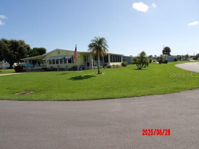 PRICE REDUCTION ON THIS AMAZING HOME! FIRST OF ALL YOU OWN THE LAND, SO NO LOT RENT. OWNERSHIP IS BY FEE-SIMPLE. PETS AND GOLF CARTS ARE WELCOME. NO MONTHLY MAINTENANCE FEES! ADULT COMMUNITY. DEED RESTRICTIONS. PRIDE OF OWNERSHIP IS EVIDENT AND THE FOLLOWING UPGRADES HAVE BEEN DONE. NEW WINDOWS, NEW CARPORT WHICH IS A DOUBLEWIDE ONE. REPLACED SIDING WHERE NEEDED, STEEL ROOF WAS RECENTLY COATED AND PAINTED, CENTRAL HEAT AND AIR 2017, NEW AIR DUCTS, VAPOR BARRIER REPLACED, NEW FLOORING WITH PLYWOOD UNDERNEATH. BATHROOMS UPDATED AND A NEW WATER HEATER RECENTLY INSTALLED! HOME FEATURES A LIVING ROOM PLUS A FAMILY ROOM. THE FLORIDA ROOM WHICH HAS SLIDING WINDOWS AND A WINDOW UNIT AIR CONDITIONER IS PERFECT FOR GUESTS AND ENTERTAINING. KITCHEN HAS AMPLE CABINETS AND COUNTERTOPS. BREAKFAST BAR. DINING ROOM HAS A BUILT-IN HUTCH AND LIVING ROOM IS GENEROUS IN SIZE AT 24' x 12'. PRIMARY BEDROOM HAS FRENCH DOORS THAT GO INTO THE PRIMARY REMODELED BATHROOM. BEDROOM #2 HAS PRIVATE ACCESS TO THE GUEST BATHROOM. SMALL BONUS AREA WHEN ENTERING HOME. OUTSIDE THERE IS A PORCH AND ANOTHER COVERED SCREENED LANAI. ATTACHED SHED AND A DETACHED SHED. PROFESSIONALLY LANDSCAPED. CORNER LOT. MEMBERSHIP TO THE EDGEWATER CLUBHOUSE TRANSFERS TO NEW OWNER'S. THE YEARLY FEE IS $300. THAT FEE INCLUDES MANY ACTIVITIES AT THE CLUBHOUSE. THERE IS A SWIMMING POOL, TENNIS CTS, PICKLEBOARD, SHUFFLEBOARD AND MORE FUN THINGS TO DO. RENTING OUT YOUR HOME IS EASY HERE AS WELL. SELLING FURNISHED MINUS SELLER'S PERSONAL PROPERTY. LIVING IN ENGLEWOOD OFFERS BEACHES NEAR-BY, BOATING, FISHING, PUBLIC GOLF COURSES, SHOPPING AND PUBLIC BOAT RAMPS. CALL FOR A TOUR OF THIS AMAZING HOME. COMES WITH HURRICANE SHUTTERS. SELLING-AS-IS, SUBJECT TO BUYER'S APPROVAL. ALL INFORMATION IS DEEMED RELIABLE, BUT BUYER/BUYER'S AGENT SHOULD VERIFY.