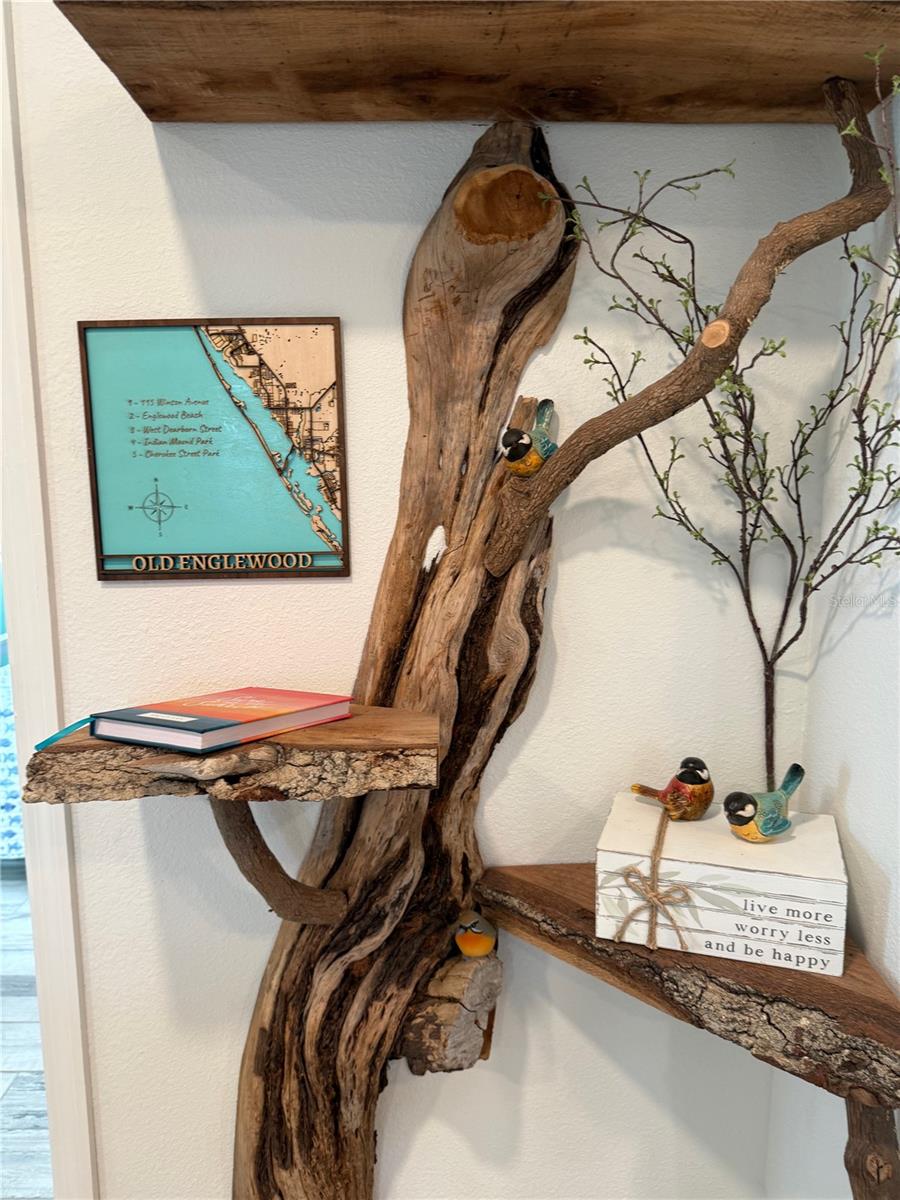Currently unavailable to view, as there are air bnb guests. LOCATION, LOCATION, LOCATION! Welcome to your 3 bedroom, 2 full bath COASTAL PARADISE — sold mostly furnished! This home puts you right in the heart of Englewood’s charm, just steps to Historic Dearborn Street with shops, dining, entertainment, and local events. Partial view from your front yard of the bay. No detail has been spared! Updates include a METAL ROOF, new A/C, fully filled concrete block walls with filled reinforced headers, HURRICANE-RATED WINDOWS & DOORS, and closed-cell foam insulation. The kitchen and 3rd bedroom feature RAISED FLOORS, while the wood-look tile floors flow throughout. The kitchen is a SHOWPIECE — two-tone cabinets, stainless steel appliances, farmhouse sink, open shelving with wood accents, and custom trim details. Interior laundry with stack washer dryer and featuring a walk in PANTRY with customer shelves and SALOON style doors. Both baths are fully renovated — one with a WALK-IN SHOWER accented by blue tile, a wood ceiling, and a built-in shampoo niche; the other with a rustic tile tub surround and sleek vanity. Bedrooms are set for comfort — queen suite, twin room, and a bunk room with a full bed below. Closets feature CUSTOM BUILT-INS and shelving. Outside, relax on the COVERED REAR PORCH WITH PAVERS, enjoy the shady pergola with string lights, or swing in your hammock. A DETACHED CARPORT WITH METAL ROOF adds extra storage and protection. And yes — you can KEEP YOUR BOAT IN YOUR YARD with Indian Mound Park and Lemon Bay just blocks away, offering a public boat ramp, kayak launch, and those jaw-dropping sunsets. Nearby, explore Lemon Bay Park & Nature Center (210 acres of trails and boardwalks) or reflect at Veterans Memorial Park. Perfect for FULL-TIME LIVING, SEASONAL ESCAPE, OR TURN-KEY INCOME PROPERTY with proven rental history. Just bring your flip-flops — this one is ready for you!
