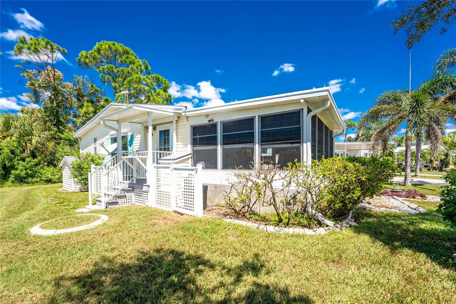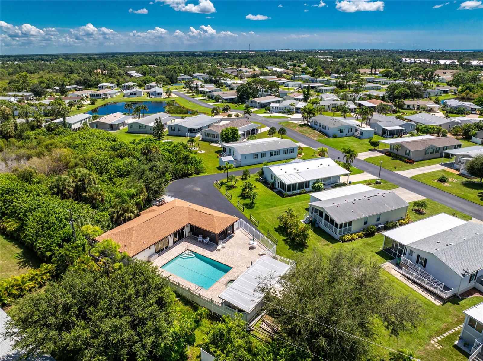 Welcome to The Pines at Sandalhaven, a charming deed-restricted, 55+ community in the heart of Englewood, Florida. Known for its friendly neighbors and resort-style amenities, this pet-friendly manufactured home neighborhood offers a heated pool and spa, clubhouse, pickleball, and shuffleboard. And the best part? No lot fees—you own the land! This lovingly maintained 2005 home offers 1,860 square feet of comfortable living space with 3 bedrooms, 2 baths, and a versatile bonus room that can serve as a home office, craft or art studio, or cozy TV room. From the moment you arrive, the home’s wide lot and welcoming curb appeal set the tone. Step inside and you’ll be greeted by a bright, open floor plan where natural light pours through the windows, highlighting tasteful modern colors and thoughtful design. The living room features an inviting wood-burning fireplace and architectural ceiling details that add warmth and charm. The kitchen is a true centerpiece with beautiful wood cabinetry extending to the ceiling, soft-close pull-out drawers, ample counter space, and a breakfast bar for casual dining. Under-cabinet lighting, a walk-in pantry, freezer, wine cooler, and beverage refrigerator make this a space designed for both cooking and entertaining. The home’s thoughtful layout continues with an inside utility room complete with a sink, large-capacity washer/dryer, and built-in cabinetry, as well as a flex room that adapts to your lifestyle needs. A 16x18 covered lanai with A/C capability provides a beautiful views of the lake making it the perfect place to relax at the front of the home. While the private backyard—where no one can build behind you—offers space and privacy. For those who enjoy hobbies or projects, a 27x7 attached workshop with separate electrical, built-in shelving, and drawers is a rare and valuable bonus. Over the years, this home has been carefully upgraded with extras that bring peace of mind and convenience. In 2024, a new water softener, A/C system, security system with keypad entry, and reverse osmosis system were installed—all with warranties. In 2023, a new roof and skylights were added. Additional upgrades include a water heater with warranty, whole-house generator, programmable smart sprinkler system, and smart thermostat. The professionally landscaped yard is framed with custom curbing and illuminated by programmable landscape lighting, creating an inviting setting day and night. This home isn’t just a place to live—it’s a place to thrive. Blending comfort, functionality, and modern updates, it offers everything you need for relaxed Florida living in one of Englewood’s most welcoming communities.