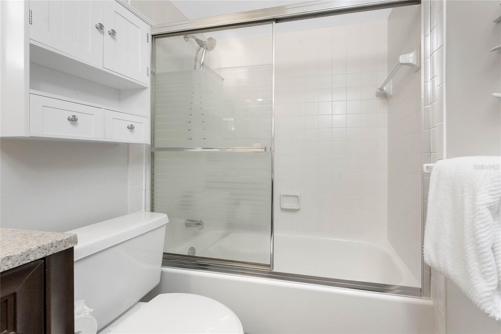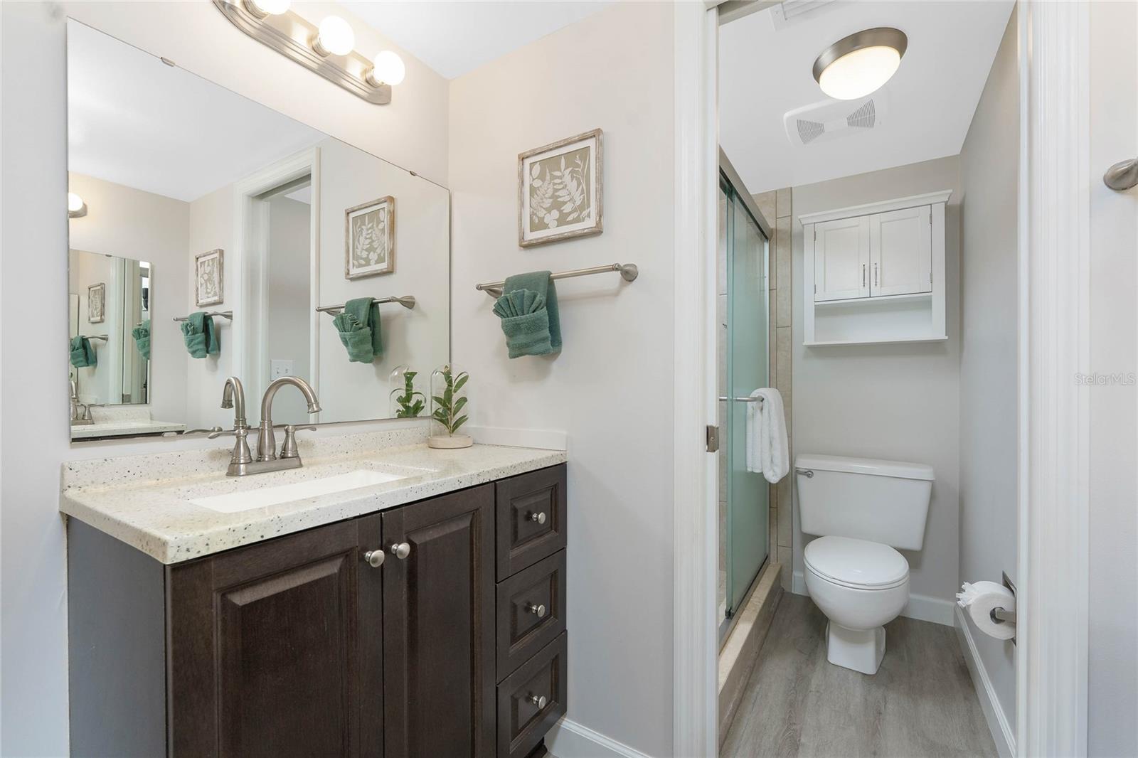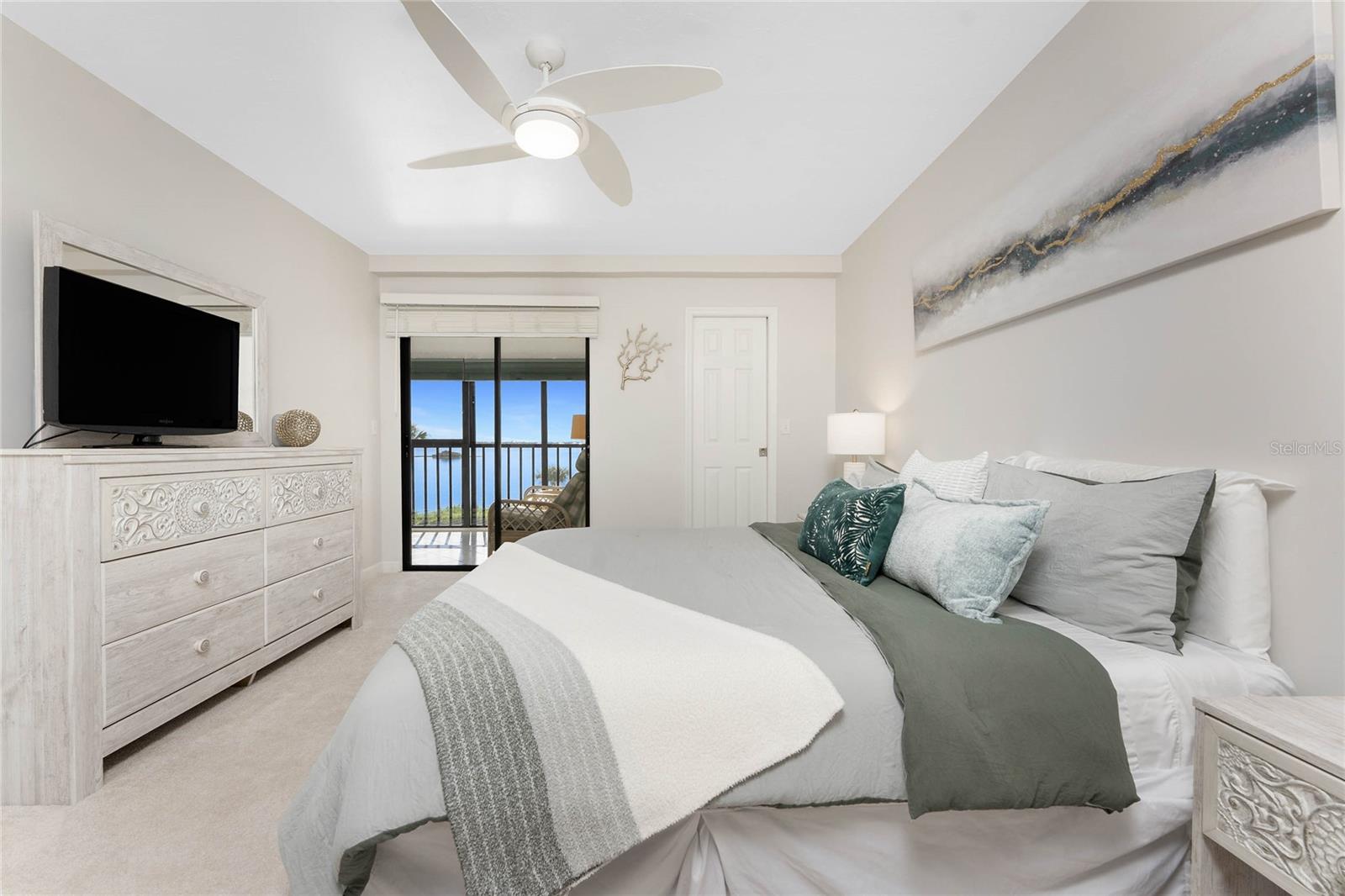 One of the best locations in Sandpiper Key, this condo offers the perfect place to sit on your screened balcony and watch dolphins play and boats pass by. Located on Manasota Key and just half a mile to Englewood Beach, the two-bedroom, two-bathroom unit features newer carpet, a stackable washer and dryer, an updated HVAC system, and a newer refrigerator. Covered parking, extra storage space, and an elevator to every level make daily living convenient and easy. Inside, the kitchen is designed with gray shaker-style cabinetry, soft close hinges, crown molding, and a tray ceiling, and even provides peek-a-boo Bay views. The combined living and dining area includes built-in cabinets for extra storage on the dining side, while triple sliders to the balcony and additional sliding doors on the opposite wall allow you to let the salty breezes flow through the space or keep them closed for year-round comfort. The ensuite primary bedroom offers a walk-in closet, sliding doors to the balcony, and a spacious bath with dual vanities and a large tiled walk-in shower with privacy glass doors. The guest bedroom includes a reach-in closet, and the guest bath is complete with a granite-topped vanity and a shower and tub combination. Sandpiper Key is a vibrant pet friendly community offering multiple picnic areas, gas and charcoal grills, two Bayfront heated pools, and a clubhouse with social activities. The location allows easy access by walking, biking, or golf cart to local dining, live entertainment, and waterfront fun, creating the ideal setting for beach living. You can choose the peacefulness of your private balcony or join neighbors at one of the many picnic areas throughout the complex. The community is impeccably maintained with a strong association, and when available, boat docks may be purchased at the Sandpiper Key Yacht Club across the street. This excellent unit in a highly desirable location is ready for you to enjoy. Contact us today to schedule your private showing and experience the beautiful views for yourself.
