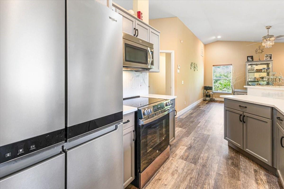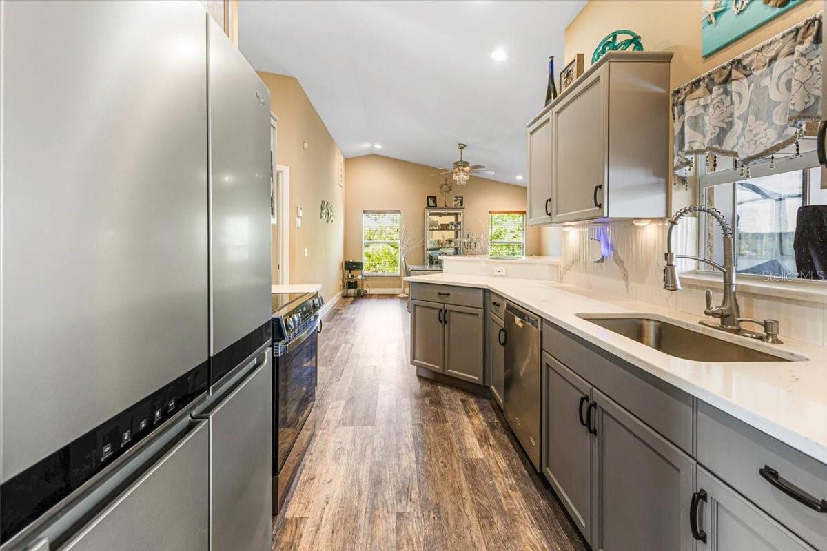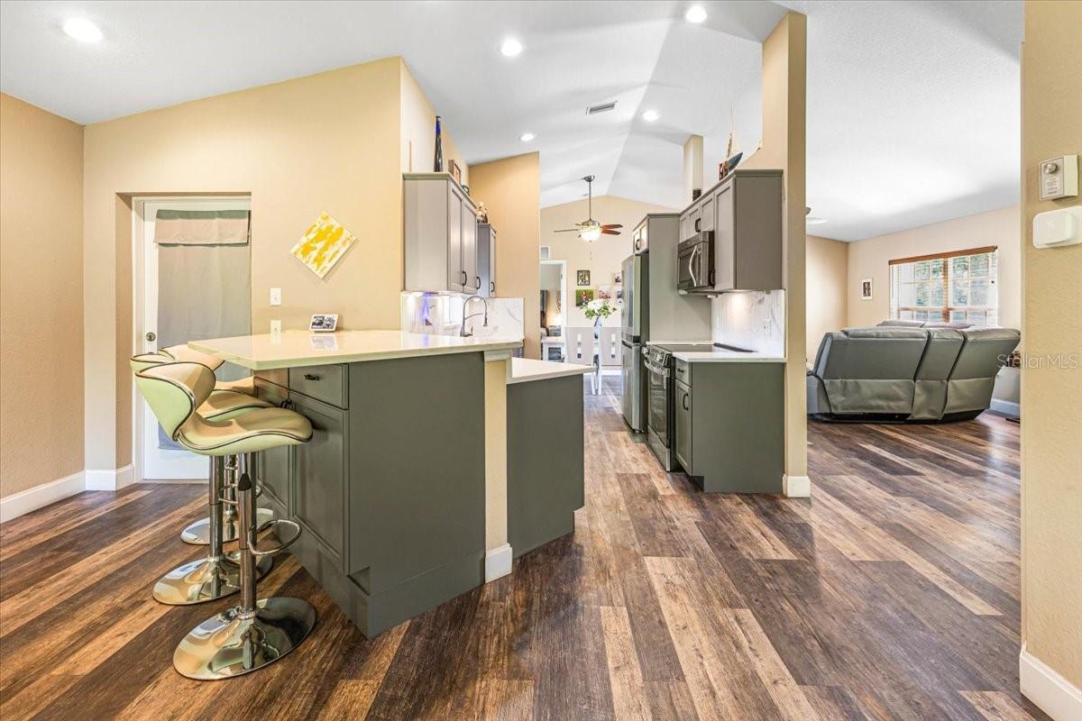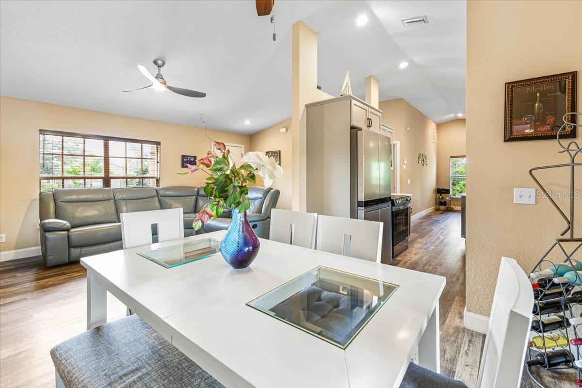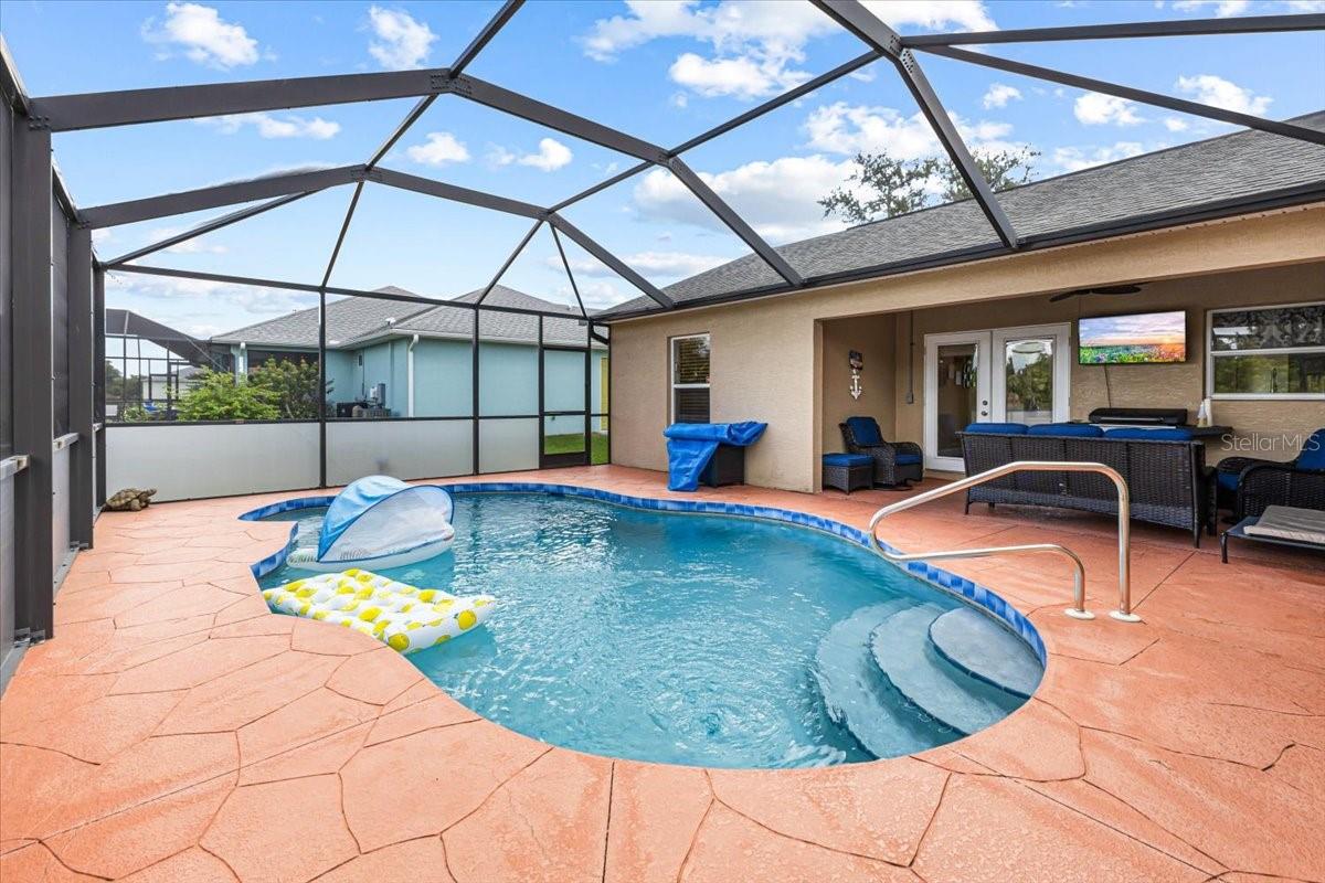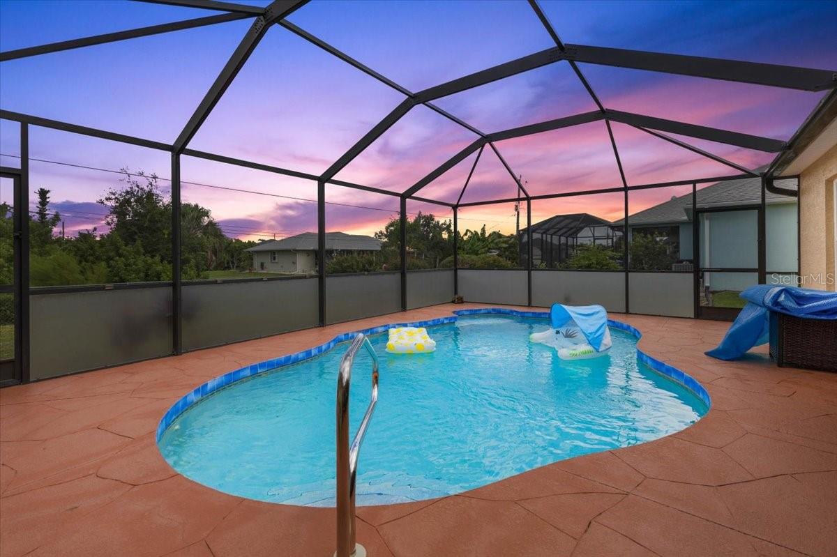 Welcome to your Florida dream home! This beautifully maintained 3-bedroom, 2-bathroom residence offers the perfect blend of stylish upgrades, smart home convenience, and laid-back Gulf Coast living, all just minutes from the turquoise waters and white sand of Englewood Beach. Step inside to find vaulted ceilings in the spacious living room, creating an open, airy feel ideal for entertaining or relaxing. The galley kitchen is a chef’s delight with stone countertops, ceramic tile backsplash, under-cabinet lighting, and a smart oven/range. A breakfast bar connects the kitchen to the formal dining room, while a separate dinette for casual dining. The primary suite is a true retreat featuring dual walk-in closets and an ensuite bath with dual vanities and a walk-in shower. The two additional bedrooms each boast their own walk-in closets and share a full bathroom with a tub and direct access to the pool area, ideal for guests or enjoying days lounging by the pool. Throughout the home, you'll find newer luxury vinyl flooring for a clean, modern look that’s also durable and easy to maintain. Enjoy easy indoor chores with a dedicated laundry room, complete with a sink and storage closet. Step outside to your own private oasis: a screened saltwater heated pool enclosed by a pool cage with Florida Glass panels for enhanced privacy. The fenced backyard offers peace of mind for pets or little ones, while the 2-car garage provides ample storage. Modern amenities abound with smart home features, including a Ring doorbell, electronic lock, and smart kitchen appliances, adding convenience and security to your daily life. Home has wonderful hurricane protection as well, including a roll down shutter on the front door and on the left side of the home, and panels for the rest of the winds. The home has been wired for a generator, so if the power goes out you can have a nearly continuous supply of generator provided electric. Located just 5 miles from the Gulf of Mexico, you'll enjoy quick access to Englewood Beach, shopping, dining, and recreational activities, all while living in a peaceful residential setting. Don’t miss your chance to own this slice of Florida paradise! **Check out the 3D Tour Link and Floor Plan**