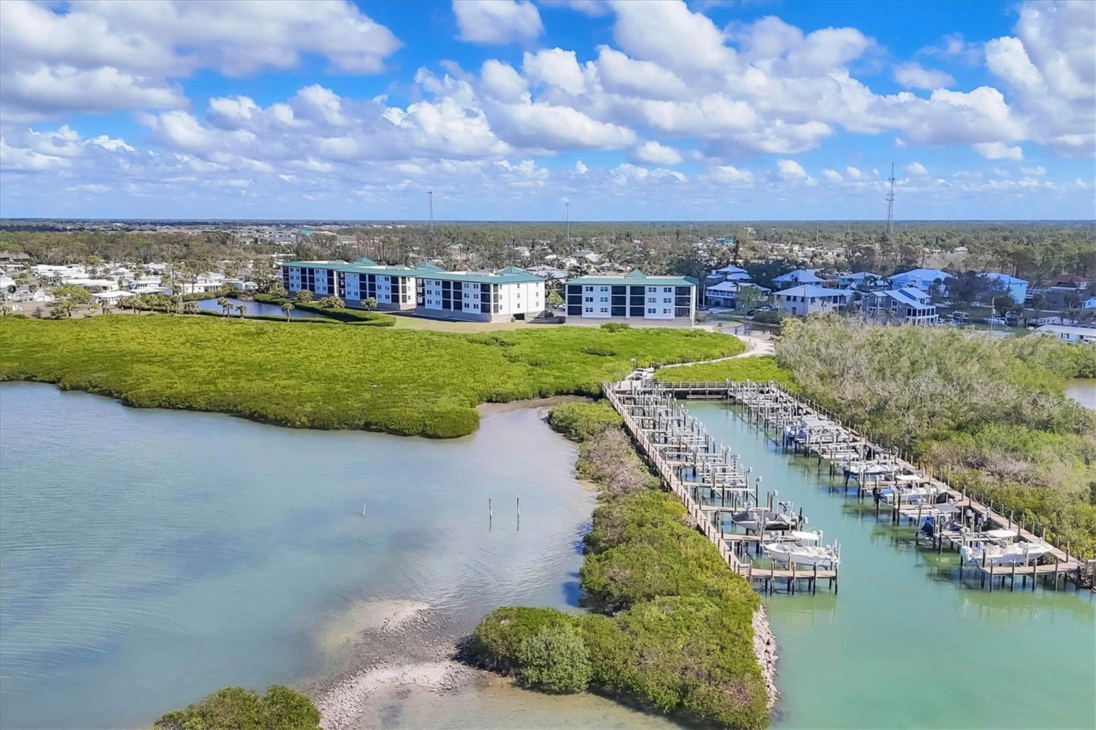 Discover vibrant coastal luxury in this stunning, fully reimagined 3-bedroom, 2.5-bath end-unit condo, built in 2003 and perched along the breathtaking Gulf Intracoastal Waterway. Relish jaw-dropping sunsets and the parade of boats from your expansive screened lanai, where dolphins dance and the waterway flows unobstructed to the Gulf of America via Stump Pass—no bridges in sight. This meticulously renovated retreat blends modern elegance with laid-back coastal charm, designed for both serene relaxation and lively entertaining. Step inside to sleek porcelain tile floors and an open-concept kitchen that’s a chef’s dream, featuring top-tier stainless-steel appliances, shimmering quartz countertops, chic modern cabinetry, and a sprawling walk-in pantry. The farmhouse sink, complete with a cutting board, drying rack, and disposal, makes meal prep a breeze. The primary suite is your personal oasis, with tranquil bay views, a massive walk-in closet, and direct lanai access. Its spa-inspired en-suite bathroom dazzles with a Bluetooth-enabled walk-in shower, rain head, marble bench, dual quartz-topped sinks, and a linen closet for effortless organization. The smart split floor plan ensures privacy, with a guest wing offering two cozy bedrooms and a full bathroom, plus a versatile bonus den perfect as a home office or flex space. Fresh paint, stylish new lighting, fans, doors, and trim elevate the modern vibe, while a chic half bath keeps guests comfortable. Nestled in a gated community, indulge in resort-style perks: a heated pool and spa, a fitness-packed clubhouse, scenic nature trails, tennis and pickleball courts, a grill area, a private fishing pier, and a 38-slip marina with boat slips available for purchase or lease (ask for details). Enjoy ground-floor convenience with two private parking spaces and locked storage cages for your beach gear, plus spacious elevators for easy access. Just minutes from pristine Gulf beaches, dive into fishing, boating, kayaking, or swimming, with vibrant dining, live music, and entertainment at your doorstep. Conveniently located 15 minutes from Boca Grande, 40 minutes from Punta Gorda Regional Airport, and 60 minutes from Sarasota International Airport, this coastal gem offers the ultimate blend of tranquility and adventure. Don’t miss out—schedule your private tour today and make this slice of paradise yours!