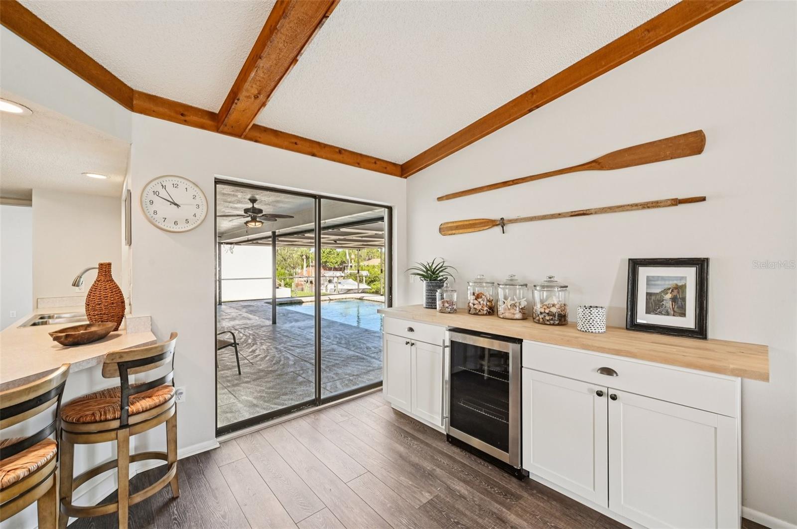Boater’s Dream Home with Pool, Dock, and Gulf Access! This canal-front pool home on Gottfried Creek is set up for sunny Florida living. The three bedroom, two bathroom layout offers direct access to Lemon Bay and the Gulf. This home has the option to purchase a membership to the Englewood Gardens Beach Club, which offers a wide array of amenities, including access to Englewood Beach, a bayfront boardwalk and dock, bayside kayak storage and launch dock, special events, a clubhouse, picnic tables, a patio and gazebo with gas grills, Wi-Fi access, and use of the clubhouse for private events. The exterior features a hurricane rated garage door, a circular driveway, and recently installed impact double front doors with decorative glass inserts. Inside, luxury vinyl plank flooring is in the living areas while the entry and bathrooms are finished in tile plus there are plantation shutters throughout to add a luxury feel and plenty of privacy. The family room has a nice beverage center bar with wine refrigerator, wood beams on a vaulted ceiling, and sliding glass doors for pool access. The kitchen is equipped with white shaker style cabinetry, stainless steel appliances, a closet pantry, a decorative tray ceiling, a breakfast bar, and an impact rated window that looks over the pool and canal. The family room adds everyday comfort with a beverage center and wine refrigerator, wood beams on a vaulted ceiling, and sliding glass doors that step out to the screened pool area. The primary ensuite provides sliding glass doors to the outdoors, a walk-in closet, and a bathroom with a solid surface vanity and a tub and shower combination. Two additional bedrooms accommodate guests and family, and they share a bathroom with a solid surface vanity and a step-in shower. The screened pool is spacious for entertaining and perfect for floating the afternoon away. The dock did take storm damage and will need repairs, but once addressed it can again be a place to relax with a cocktail or drop a line for dinner. The home itself had no flood or hurricane damage, offering welcome peace of mind. You can enjoy everything the area has to offer with easy access to Historic Dearborn Street, Englewood Beach is only about three miles away, and there are plenty of shopping, dining, and medical services nearby, making this a complete coastal lifestyle home. Make plans today to see 560 Sandlor Drive, contact us to schedule your private showing.