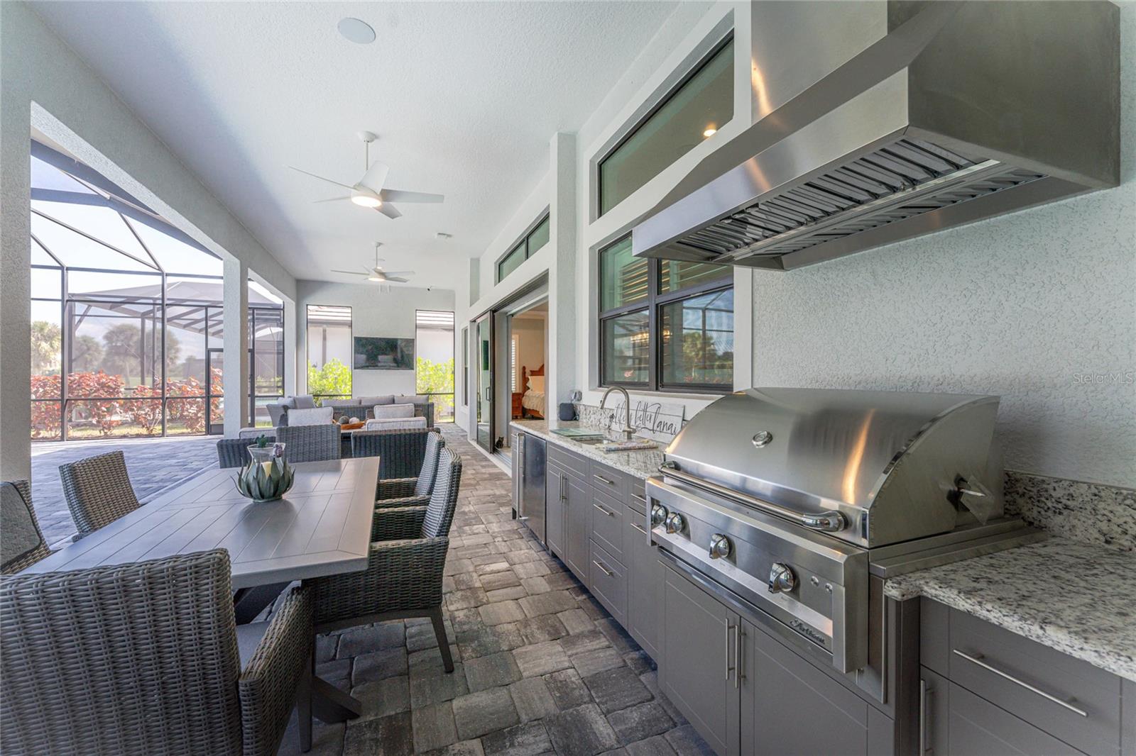 Luxurious Pebble Beach Model in Boca Royale Golf & Country Club Step into refined elegance with this semi-custom Pebble Beach model, located in the exclusive St. Lucia neighborhood within the gates of Boca Royale Golf & Country Club. Completed in October of 2024 by Neal Signature Homes, this fully upgraded home offers over 3,000 square feet of impeccably designed living space, featuring three bedrooms, three full bathrooms, a spacious office/den, and beloved Club Room. From the moment you enter, you’re welcomed by an expansive great room showcasing tray ceilings, crown molding and a modern stone accent wall. Pocket sliding glass doors seamlessly open to an oversized lanai, creating a perfect indoor-outdoor flow ideal for entertaining or relaxing. The lanai features a built-in kitchen with granite countertops, natural gas grill, stainless steel hood vent, beverage refrigerator, overlooking a stunning heated saltwater pool complete with a tanning shelf, four soothing waterfalls, auto fill for water level and a chiller for year-round comfort. The panoramic screen enclosure frames sweeping golf course views, providing a true resort-like experience in your own backyard. The gourmet kitchen is designed with the chef in mind, offering a WiFi-enabled GE Café appliance package with a natural gas cooktop, built-in double oven with convection microwave, designer vent hood, and 42-inch upper cabinets. Beautiful granite countertops offer both style and durability, while a massive butler’s pantry provides generous prep space and storage. The primary suite is a private retreat, complete with two lavish walk-in closets, designed with custom organizers and a spa-inspired en-suite bathroom featuring dual vanities, an oversized walk-in shower, and a relaxing garden tub. A private guest suite with its own full bathroom and walk-in closet ensures comfort and privacy for visitors. The second guest bedroom features a walk-in closet and an adjoining full bath with a glass enclosed shower. Toward the back of the home, the Club Room provides a peaceful space with views of the pool and golf course, easily adaptable for a media room or additional office. Throughout the home, thoughtful upgrades elevate both form and function. Hurricane Impact Windows and Doors offer peace of mind, while Smart Home Technology enhances convenience and energy efficiency. Additional features include a three-car garage, an expansive dedicated laundry room with utility sink, cabinetry and storage closet, a tankless water heater, central vacuum system with kitchen kick plate, plantation shutters, custom blinds and built-in surround sound speakers. Located within the amenity-rich Boca Royale Golf & Country Club, residents enjoy access to a heated community pool, a modern fitness center and a vibrant calendar of social events. Optional golf and racquet memberships, including tennis and pickleball are available. The par 71, 18-hole course is complete with a driving range and practice green. Unwind at the 19th Hole for a laidback lunch, dinner or drinks. Indulge in savory cuisine overlooking the lush golf course in the Fairway Dining Room. The community also features a dog park with separate areas for large and small breeds, perfect for pet lovers. This exceptional home is just minutes from multiple Gulf Coast beaches, making it the perfect blend of luxury, leisure, and coastal living. Furniture and décor are available for purchase as a separate package. Make this luxurious home yours!