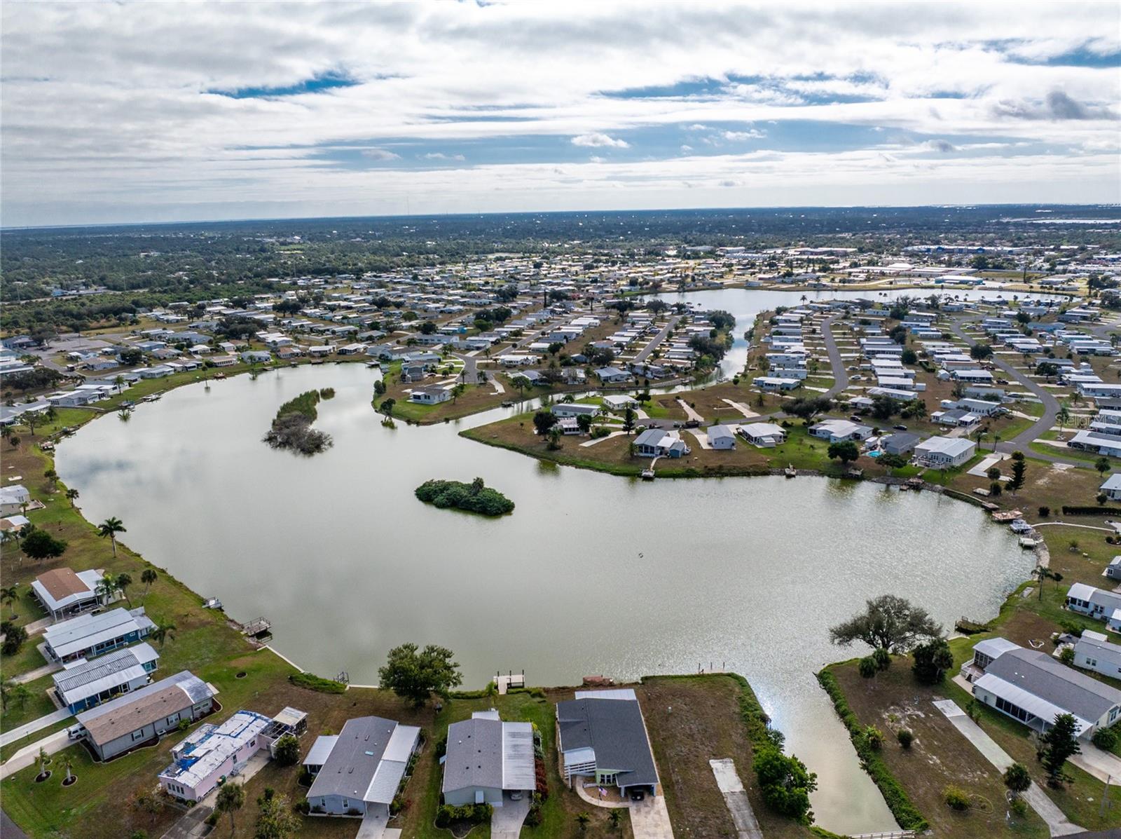 HERE YOU GO WITH A GENEROUS PRICE IMPROVEMENT! SO MUCH HOUSE FOR THE PRICE. How about buying a Triplewide Home on LAKE Sunapee here in Desirable Holiday Mobile Estate 3rd Addition!! Live where you vacation. Perfect for entertaining. This home has so much to offer. It has a generous size Living Room as well as a Large family room. The Covered Lanai is in the back of house. When you enter the home you will see a lovely Florida room and then you have an attached double size back to back shed for extra storage. The windows were replaced at sometime. With all these windows it is so bright and has window treatments. The kitchen was updated with amble cabinets and counter tops. Just look at the photos to see. Breakfast Bar. You will pass the dining room on the way to the 2 bedrooms and 2 updated bathrooms. New roof over home. Double driveway and double carport. Perhaps one side for your vehicle and the other side for your Boat. The flooring was replaced. The Air conditioner was replaced in 2019 along with the Duct Work. Located on a corner lot with lush landscaping. Membership To The Edgewater Club transfers with sale. Then the yearly Membership for $300. a year is not mandatory. There is an Active Clubhouse that offers entertainment, dinner dances, themed party's, cards and more. The Entertainment commitee is wonderful. You also have a swimming pool, tennis courts, shuffleboard and other outdoor activities! Joing the yearly $35. HOA is also optional. You own your land, so no lot rent. Golf carts and pet friendly. Renting here is easy in this adult community. Welcome to Coastal living in The Sunshine State with beaches 3.5 miles away. The Lakeview you have is so relaxing and the sunsets are beautiful. Englewood still has that small town charm. Public golf courses and Public boat ramps near by. You must see this home to fully get an idea of how wonderful and roomy it is. It is being Sold-As-Is, subject to buyer's approval. All Information presented here is to the best of our knowledge, but Buyer/Buyer's agent should verify.