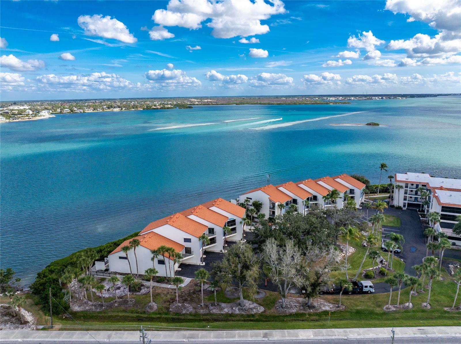 Incredible direct bay views from inside this top-floor townhouse unit looking across one of the widest areas of Lemon Bay. Very rarely available at Sandpiper Key. Direct bay front residence with its own private elevator. Private enclosed garage and 12’x22’ bonus room on the first level. Being sold turnkey furnished, this unit has been updated in recent years; A/C replaced 2024, storm-rated windows & sliders throughout, beautiful stone counters in the kitchen with wood cabinets which include soft-closing doors and drawers. Lanai overlooking Lemon Bay has been opened to and flows into the Living area which includes sliding glass doors to allow breezes. The primary bedroom suite includes a huge walk-in closet, and private balcony. Lovely, updated Guest bathroom has en-suite access to the Guest bedroom. Full-size washer and dryer and utility sink in the 24-foot-long private garage. The bonus room off the garage makes great for guest overflow and has immediate elevator access to your top floor condo unit. There is an open deck next to this building where owners and guests can gather and enjoy the sunrise or the late afternoons with friends. This community is only one-half mile to Englewood beach and the Gulf of Mexico with sidewalks on both sides of the road. Additionally, it is a similar distance to several island restaurants, a convenience store, beach shopping, watercraft rentals and deep-sea fishing opportunities. Truly and exceptional and rarely available unit!