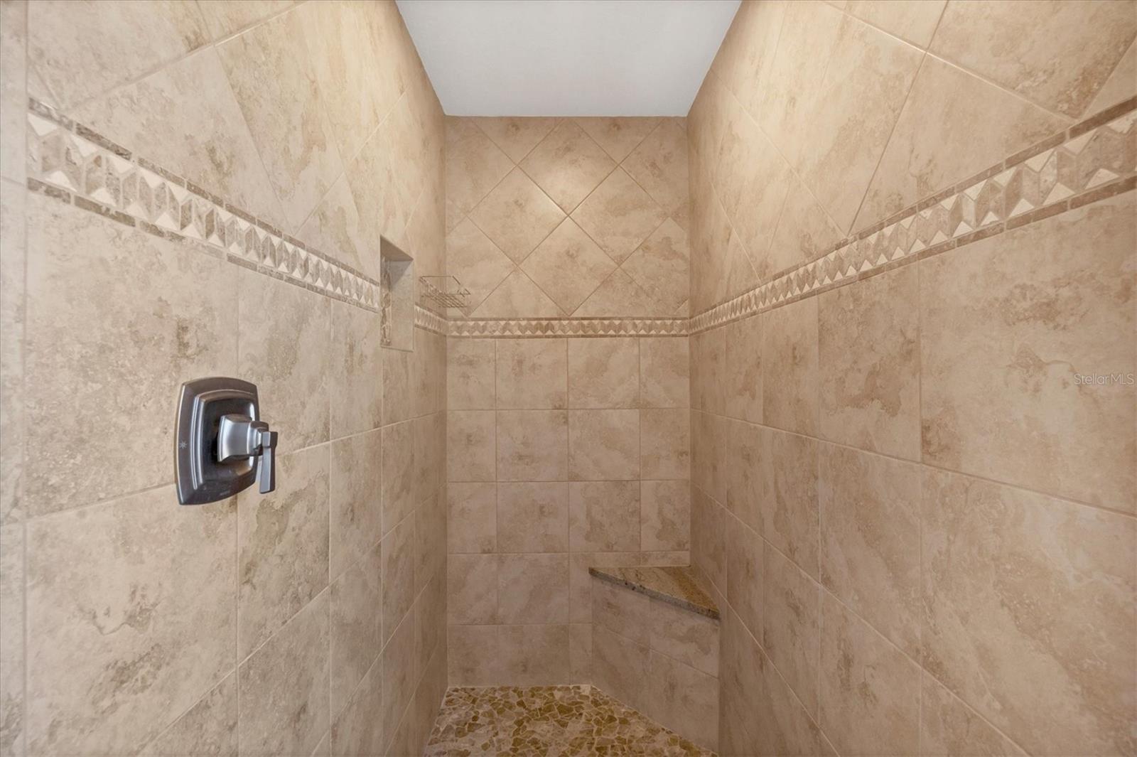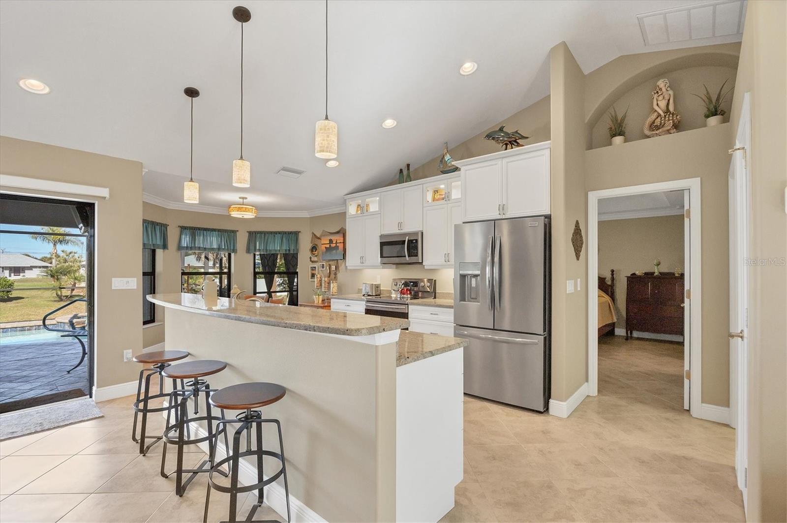 Pride of ownership is immediately evident the moment you step through the front door of this beautifully maintained Englewood gem. Lightly lived in and thoughtfully designed, this three-bedroom home features a desirable split-bedroom floor plan, offering privacy for both owners and visiting family or friends. The spacious great room creates a comfortable and inviting atmosphere and flows seamlessly into the open kitchen—perfect for entertaining. A generously sized island with seating invites guests to gather and chat, while granite countertops and coastal-style Shaker cabinets with soft-close doors and drawers enhance both style and functionality. Neutral tile flooring throughout the home not only adds to the bright, open feel but also makes for easy maintenance. The primary suite is a true retreat, featuring two walk-in closets, dual sinks, and a large walk-in shower. A well-placed guest bathroom doubles as a convenient pool bath, keeping the rest of the home clean and dry. Sliding glass doors from the great room open to a relaxing lanai with a covered sitting area, overlooking the pool and hot tub—ideal for enjoying Florida living year-round. An additional covered seating area is accessible from the primary bedroom, providing a private outdoor escape. Adding even more value, the property includes a second attached lot with a 100 ft. level concrete driveway leading to a 10x20 shed equipped with electric, perfect for RV or camper hookups. Completing the package, the landscaping features Florida-native, low-maintenance plants, allowing you more time to enjoy your surroundings and less time on upkeep. This exceptional home offers comfort, functionality, and the best of coastal Florida living.