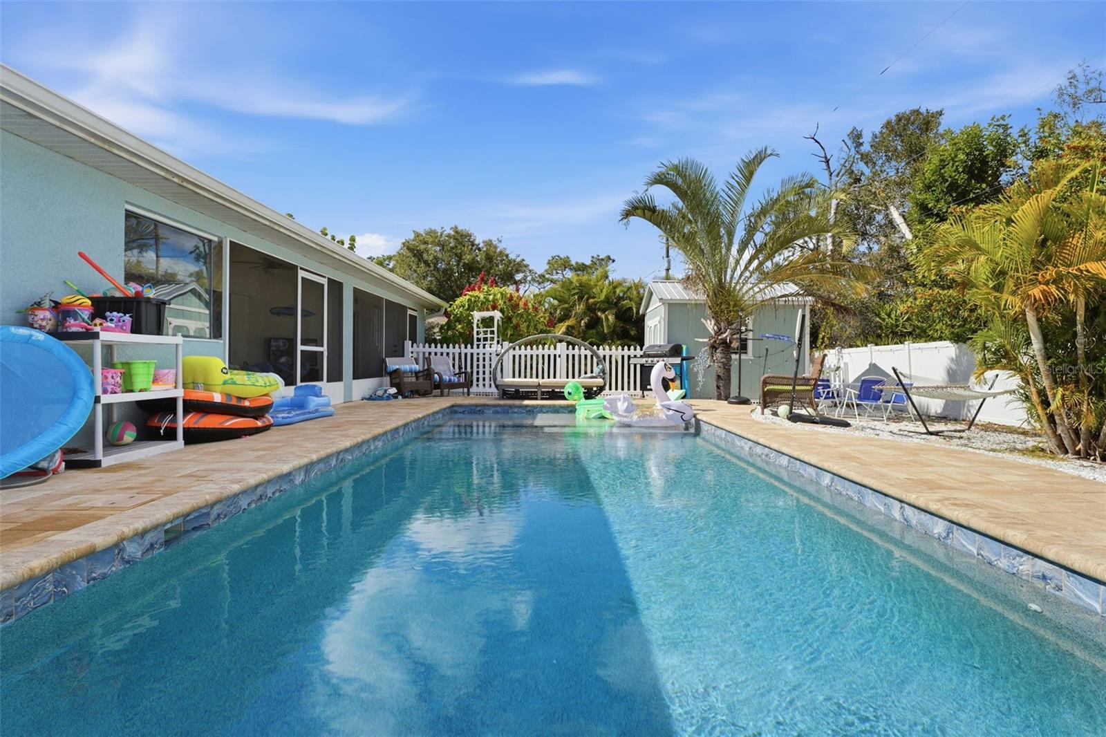 Beach-inspired backyard design. Bring the beach home with a thoughtfully designed and beautifully landscaped backyard that captures the essence of coastal living. Enjoy a stunning heated saltwater pool and spa, enhanced by custom lighting that can be enjoyed night or day and bring the pups as the yard is fenced in. Experience refined coastal living at 9366 Heartwellville Ave in Englewood, Florida. This elegant 3 bed 2 bath residence along with space that was converted from a portion of the existing garage to add an additional bonus room is ideally situated in a peaceful setting while remaining minutes from pristine Gulf beaches, championship golf, boating, and upscale dining. The remaining garage space after garage conversion can accommodate golf cart parking or small car. Home is designed for both relaxation and entertaining, and offers a desirable Florida lifestyle perfect for discerning buyers seeking comfort, privacy, and proximity to everything the Suncoast has to offer. A rare opportunity to enjoy coastal living in one of Englewood's most sought-after areas.
