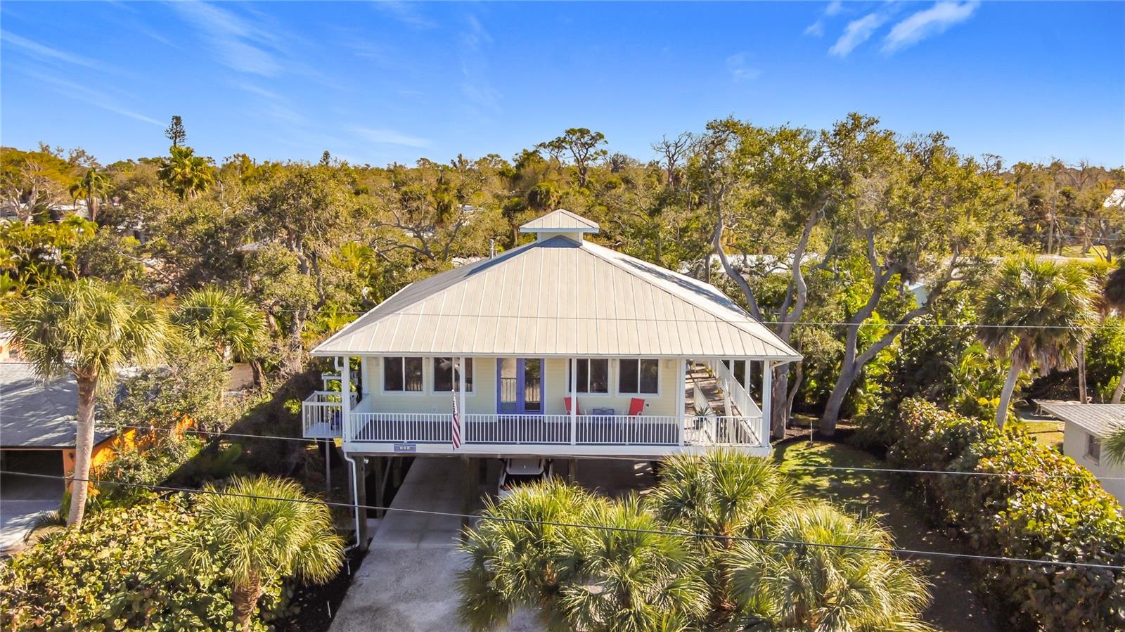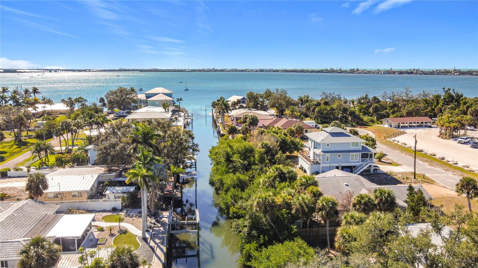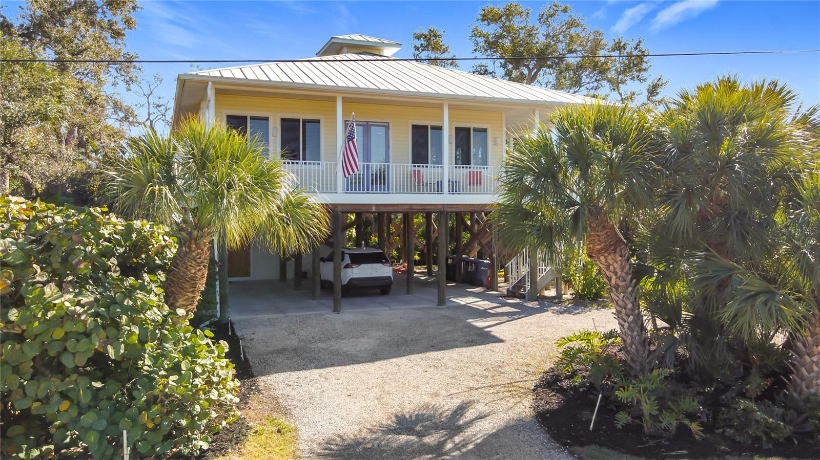 Envision yourself in this custom-built pilling home that is located on a saltwater canal with direct access to the intracoastal waterway and the Gulf of America/Mexico. This elevated coastal residence offers peaceful water views of the intracoastal waterway and Lemon Bay, exceptional boating access, and a true Florida waterfront lifestyle. This open floor plan features 2 bedrooms and 2 bathrooms, with the great room and dining area highlighted by coffered ceilings and abundant natural light. Impact-rated windows and French doors enhance the bright, airy coastal atmosphere. While the doors are not impact-rated, they are equipped with shutters for storm protection. Both bedrooms and the main living areas display beautiful water views, creating a serene setting throughout the home. The open kitchen contains granite countertops and appliances, including a GE refrigerator, GE Profile microwave, Kenmore oven/range, and Whirlpool dishwasher. A separate laundry room includes a Whirlpool washer and dryer. The Jack-and-Jill primary bathroom offers convenient access from both bedrooms, and the home includes three storage closets with built-in shelving for added functionality. Outdoor living is a true highlight. A wraparound front and side porch provides the perfect place to relax and take in sweeping water views. The property also features a private walkway leading to a 4’ x 10’ dock. Additional exterior features include professional landscaping, an irrigation system, an outdoor shower, and an Insta-Hot electric water heater. The elevated design allows for covered parking for up to four vehicles, along with a storage room and a circular driveway for easy vehicle entry and exit. Located directly across the street from a public park with boat ramps and direct Intracoastal access, this home is also just minutes from Dearborn Street, known for its dining, shopping, and local events. Immaculately maintained inside and out, this waterfront home offers an exceptional opportunity to enjoy coastal Florida living, combining boating convenience, walkable amenities, and tranquil water views in one desirable Englewood location.