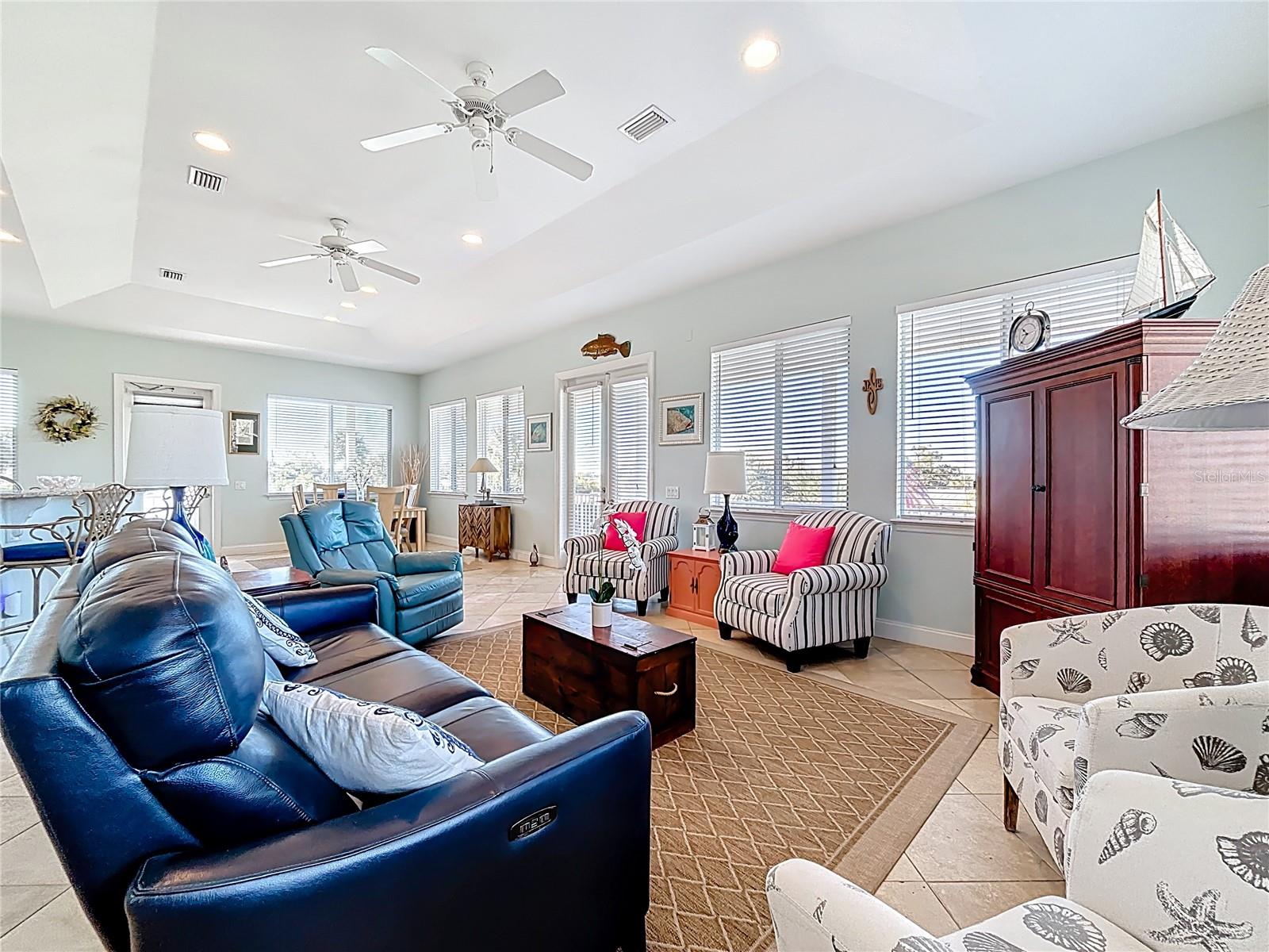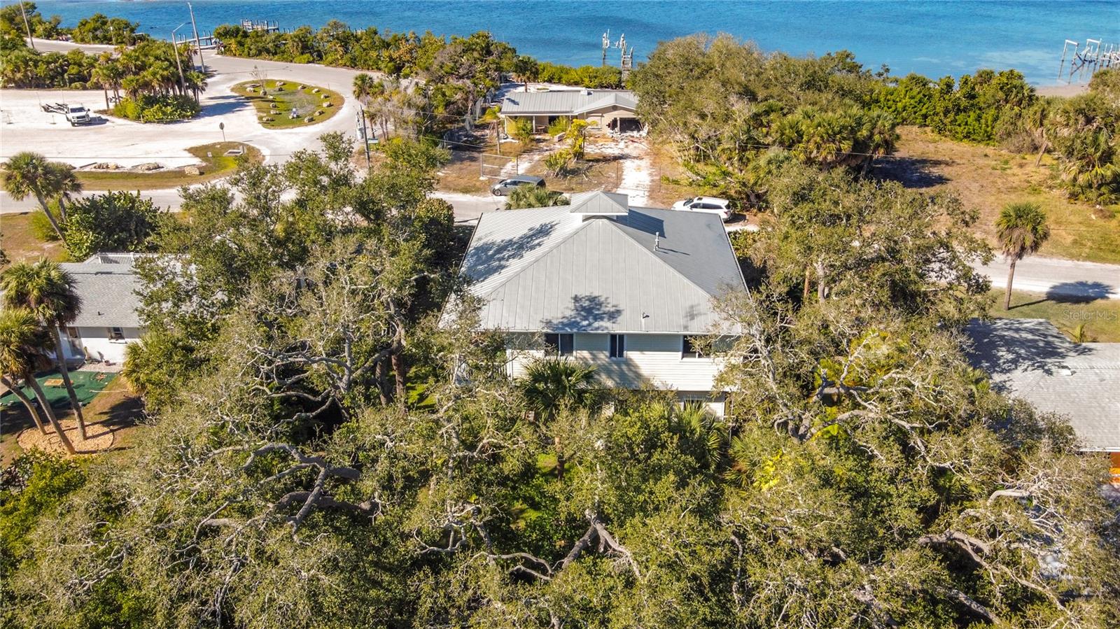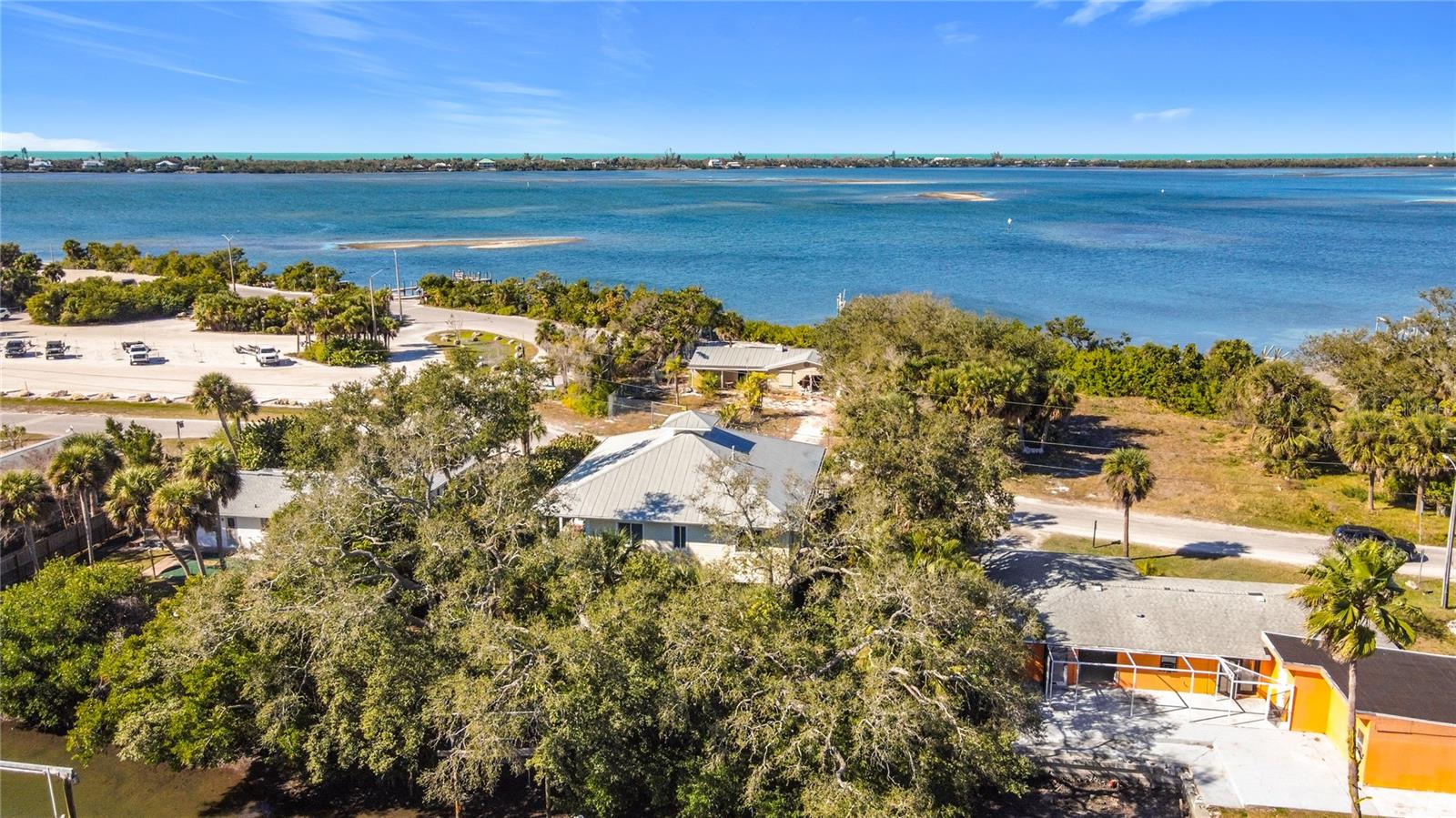 Envision yourself in this custom-built pilling home that is located on a saltwater canal with direct access to the intracoastal waterway and the Gulf of America/Mexico. This elevated coastal residence offers peaceful water views of the intracoastal waterway and Lemon Bay, exceptional boating access, and a true Florida waterfront lifestyle. This open floor plan features 2 bedrooms and 2 bathrooms, with the great room and dining area highlighted by coffered ceilings and abundant natural light. Impact-rated windows and French doors enhance the bright, airy coastal atmosphere. While the doors are not impact-rated, they are equipped with shutters for storm protection. Both bedrooms and the main living areas display beautiful water views, creating a serene setting throughout the home. The open kitchen contains granite countertops and appliances, including a GE refrigerator, GE Profile microwave, Kenmore oven/range, and Whirlpool dishwasher. A separate laundry room includes a Whirlpool washer and dryer. The Jack-and-Jill primary bathroom offers convenient access from both bedrooms, and the home includes three storage closets with built-in shelving for added functionality. Outdoor living is a true highlight. A wraparound front and side porch provides the perfect place to relax and take in sweeping water views. The property also features a private walkway leading to a 4’ x 10’ dock. Additional exterior features include professional landscaping, an irrigation system, an outdoor shower, and an Insta-Hot electric water heater. The elevated design allows for covered parking for up to four vehicles, along with a storage room and a circular driveway for easy vehicle entry and exit. Located directly across the street from a public park with boat ramps and direct Intracoastal access, this home is also just minutes from Dearborn Street, known for its dining, shopping, and local events. Immaculately maintained inside and out, this waterfront home offers an exceptional opportunity to enjoy coastal Florida living, combining boating convenience, walkable amenities, and tranquil water views in one desirable Englewood location.