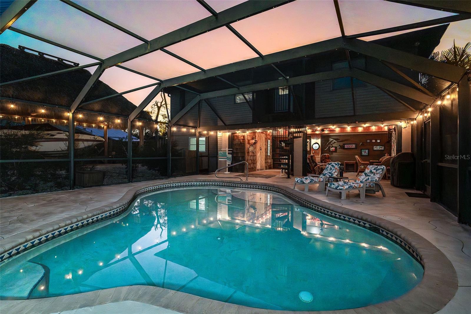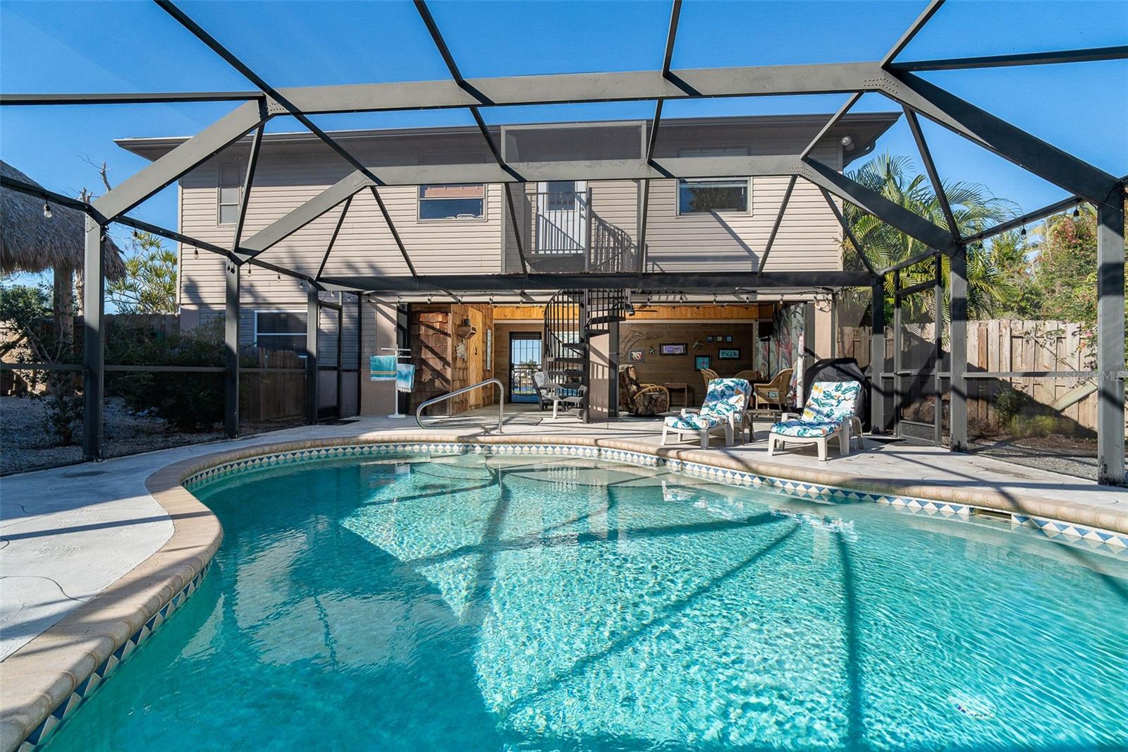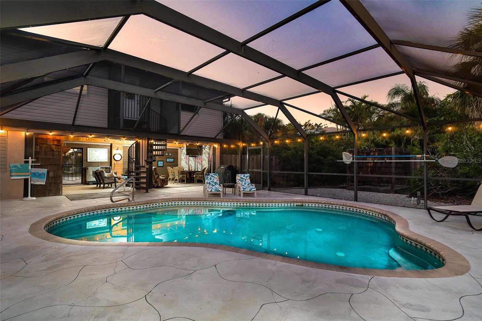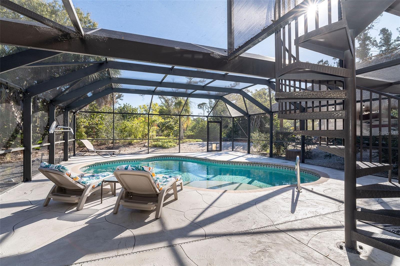 Welcome to a place where every day feels intentionally slower, where sunsets paint the sky, water glimmers in the distance, and nature wraps around you like a private retreat. Set on over half an acre, this elevated coastal home offers breathtaking sunsets and tranquil water views, creating a peaceful, park-like setting that’s rare to find so close to town. Mature native landscaping, citrus trees, and open green space surround this fenced property, offering privacy, shade, and a true Old Florida feel. The main living level features a 2-bedroom, 2-bathroom split floor plan, designed for easy, comfortable living. You will appreciate the generous living spaces all having easy care flooring, so you can spend your time enjoying life and not cleaning. Downstairs, a ground-level bonus room provides endless flexibility, ideal for a home office, gym, storage, or creative space tailored to your lifestyle. The pool area offers a huge screened lanai with a large covered area, the perfect spot for morning coffee, evening wine, or entertaining friends as the sun dips over the water. Adding to the charm is a separate artist studio, once the working studio of renowned local artist James Sears — a truly special feature that adds history, character, and inspiration to the property. Outdoor living shines here with a heated saltwater pool, outdoor shower, chickie hut with ample room for RV or boat parking, making it easy to embrace the coastal lifestyle. Whether you’re hosting gatherings, enjoying quiet evenings, or heading out on the water, this home supports it all. A new roof, elevated construction, and thoughtful design provide peace of mind, while the location puts you just minutes from the shops, dining, and energy of Dearborn Street, and steps from Lemon Bay Park, offering trails, kayaking, and natural beauty right outside your door. This isn’t just a home, it’s a lifestyle rooted in creativity, connection, and coastal living.