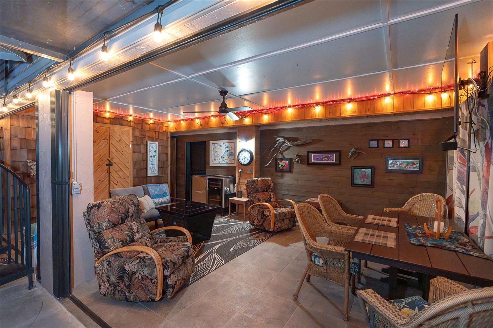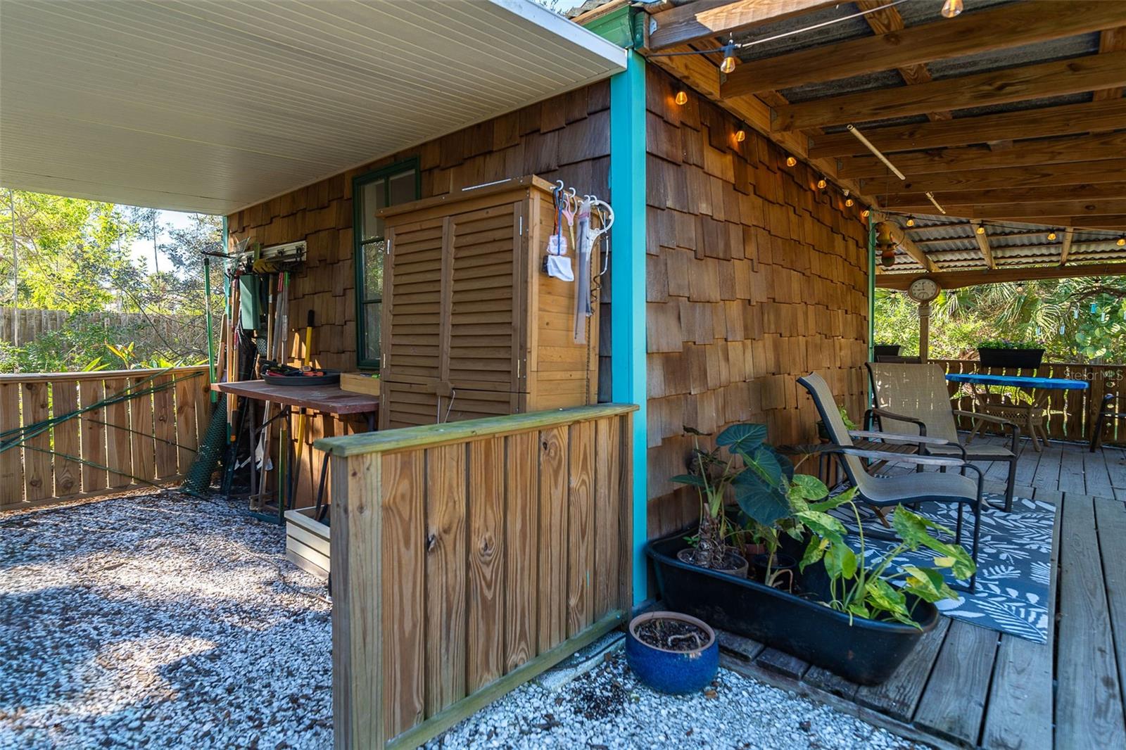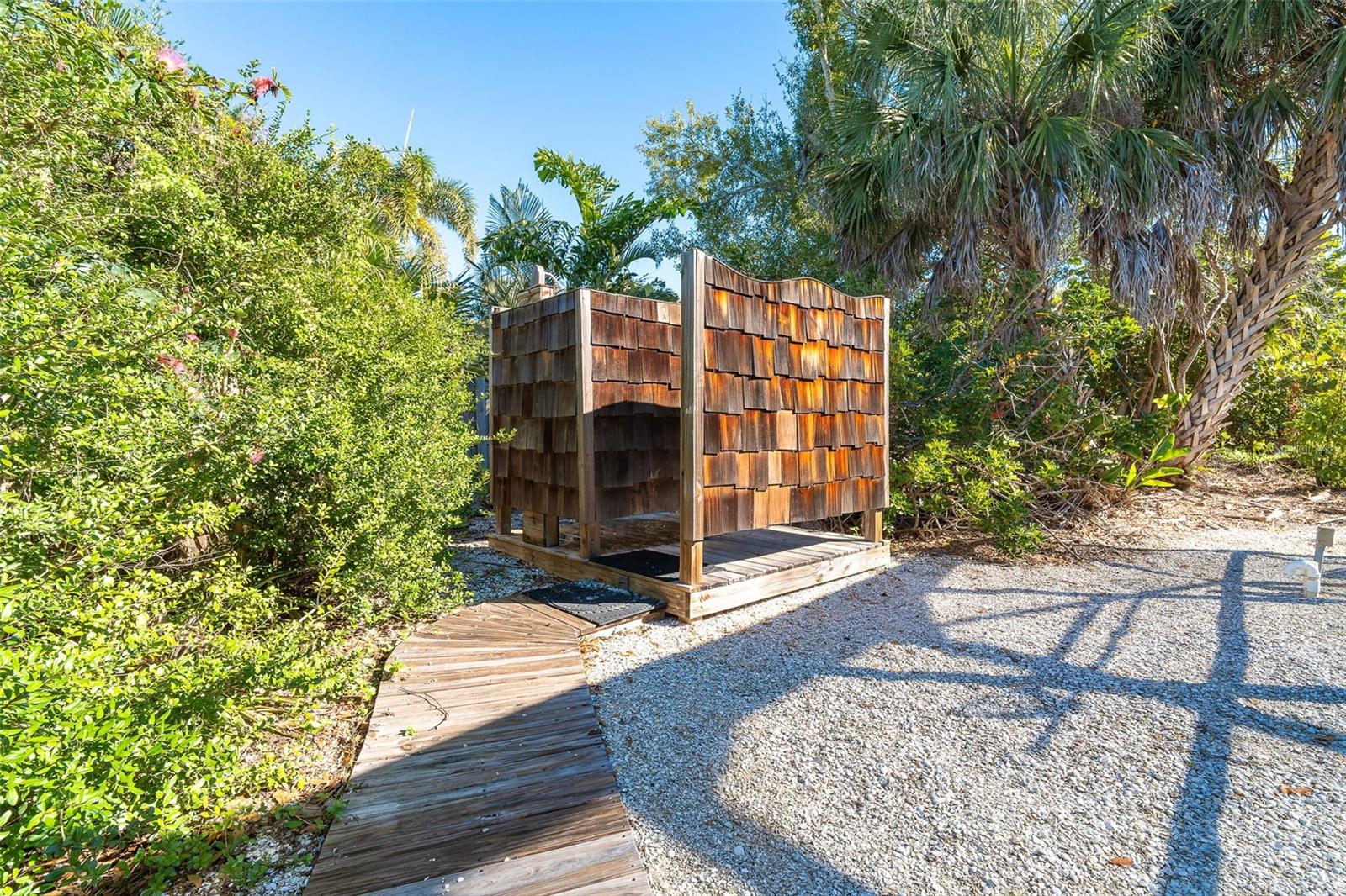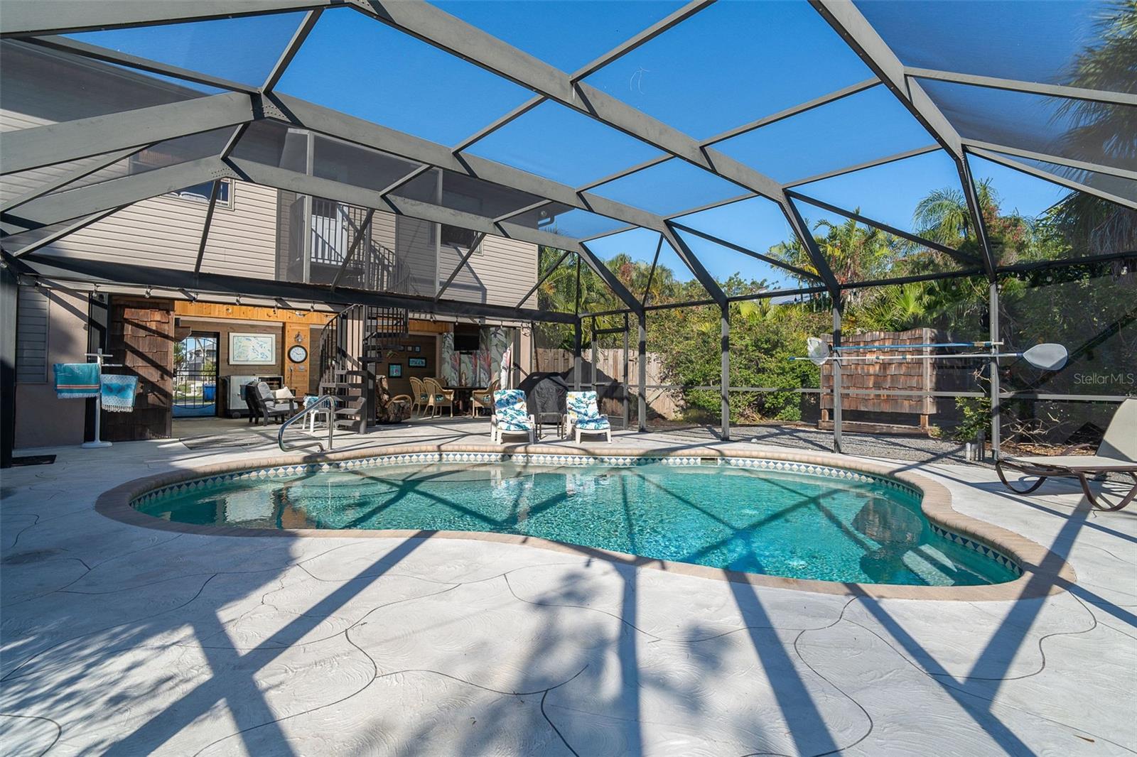 Welcome to a place where every day feels intentionally slower, where sunsets paint the sky, water glimmers in the distance, and nature wraps around you like a private retreat. Set on over half an acre, this elevated coastal home offers breathtaking sunsets and tranquil water views, creating a peaceful, park-like setting that’s rare to find so close to town. Mature native landscaping, citrus trees, and open green space surround this fenced property, offering privacy, shade, and a true Old Florida feel. The main living level features a 2-bedroom, 2-bathroom split floor plan, designed for easy, comfortable living. You will appreciate the generous living spaces all having easy care flooring, so you can spend your time enjoying life and not cleaning. Downstairs, a ground-level bonus room provides endless flexibility, ideal for a home office, gym, storage, or creative space tailored to your lifestyle. The pool area offers a huge screened lanai with a large covered area, the perfect spot for morning coffee, evening wine, or entertaining friends as the sun dips over the water. Adding to the charm is a separate artist studio, once the working studio of renowned local artist James Sears — a truly special feature that adds history, character, and inspiration to the property. Outdoor living shines here with a heated saltwater pool, outdoor shower, chickie hut with ample room for RV or boat parking, making it easy to embrace the coastal lifestyle. Whether you’re hosting gatherings, enjoying quiet evenings, or heading out on the water, this home supports it all. A new roof, elevated construction, and thoughtful design provide peace of mind, while the location puts you just minutes from the shops, dining, and energy of Dearborn Street, and steps from Lemon Bay Park, offering trails, kayaking, and natural beauty right outside your door. This isn’t just a home, it’s a lifestyle rooted in creativity, connection, and coastal living.
