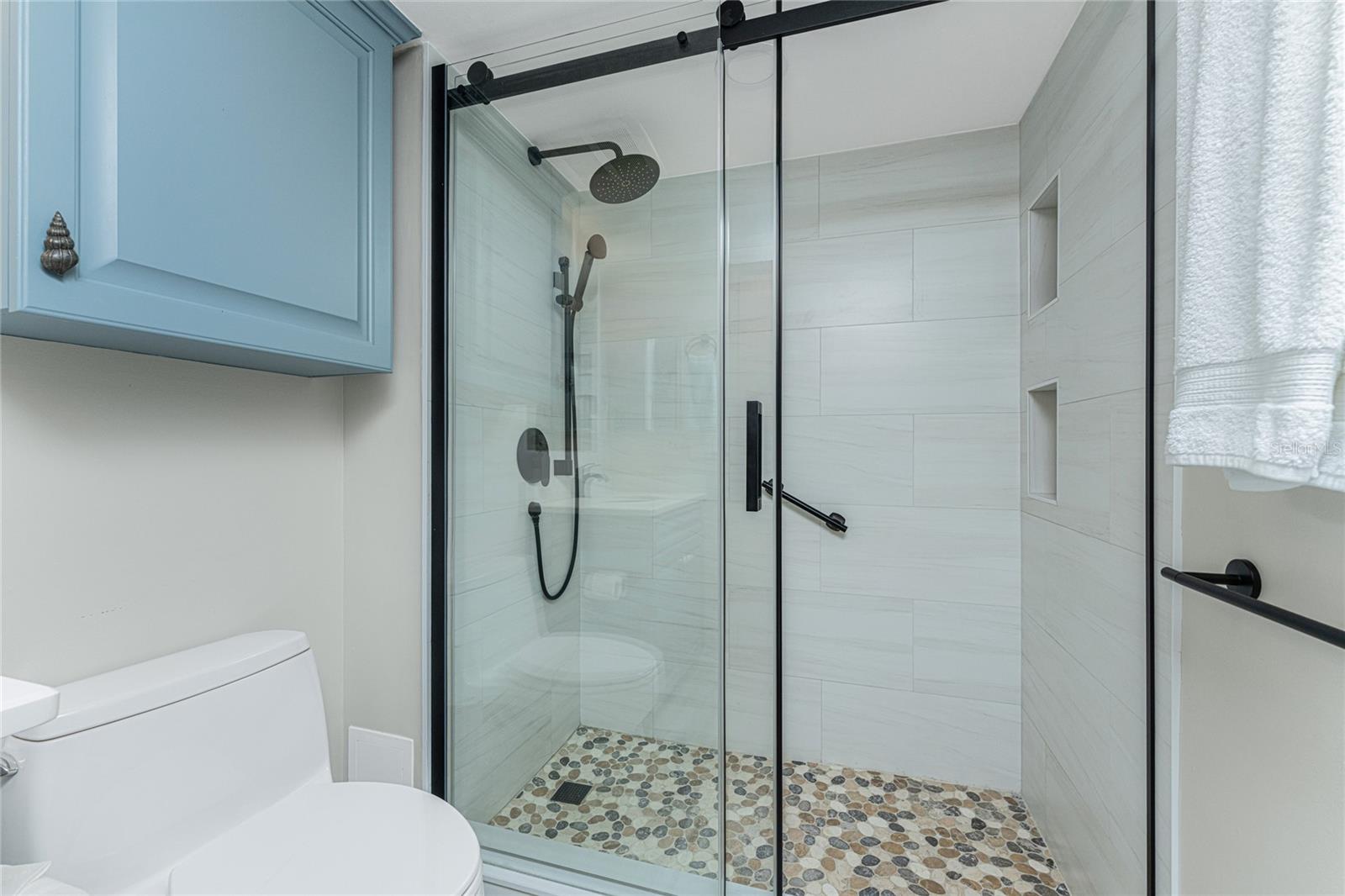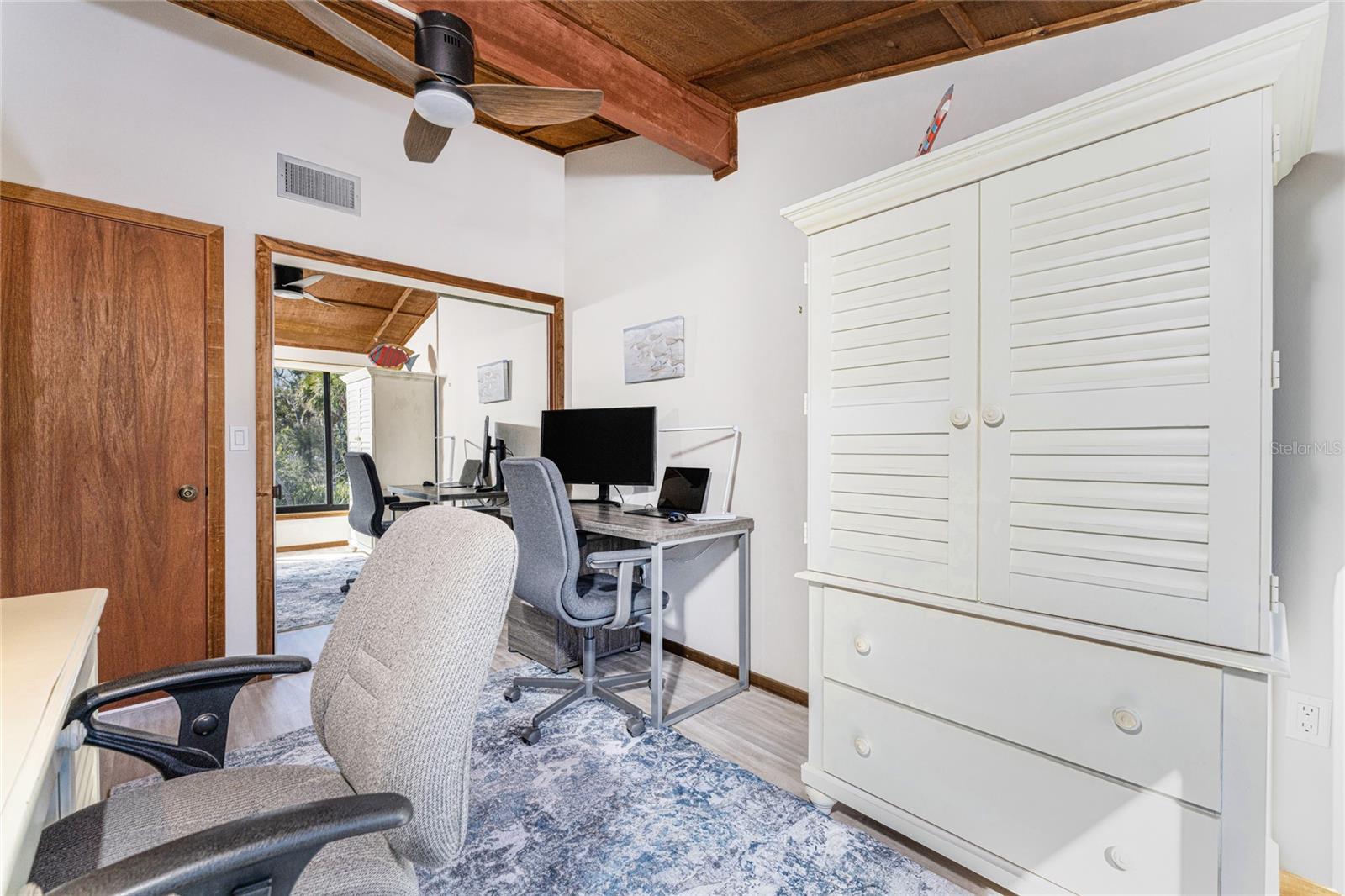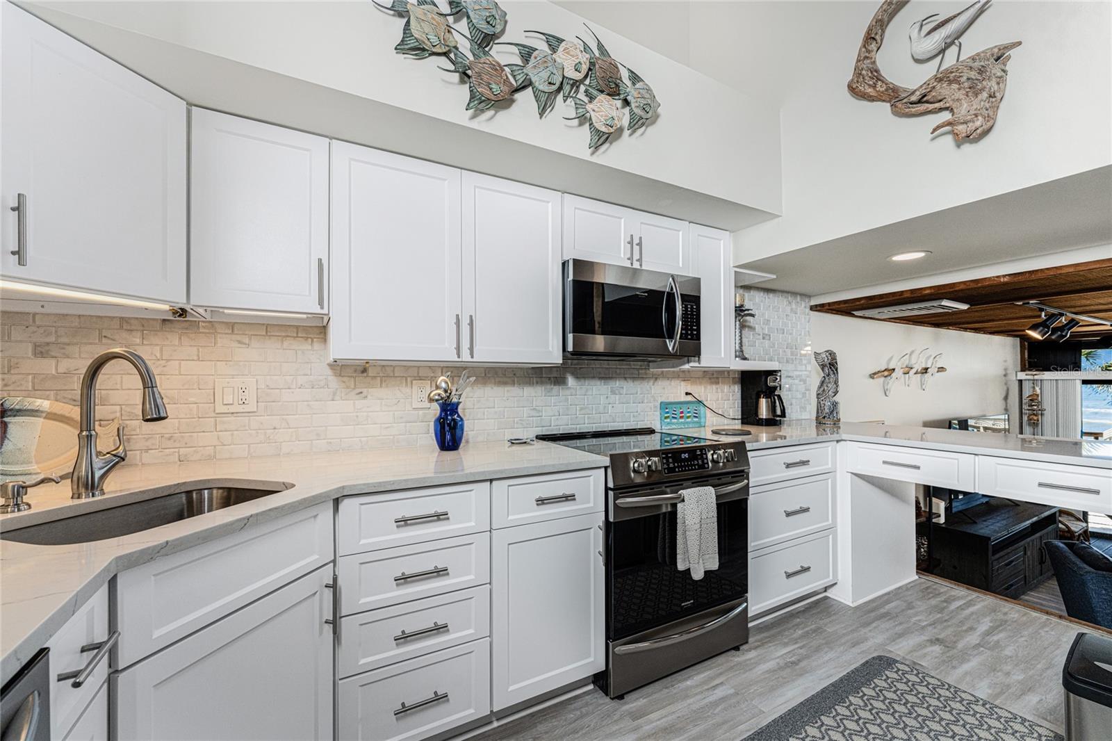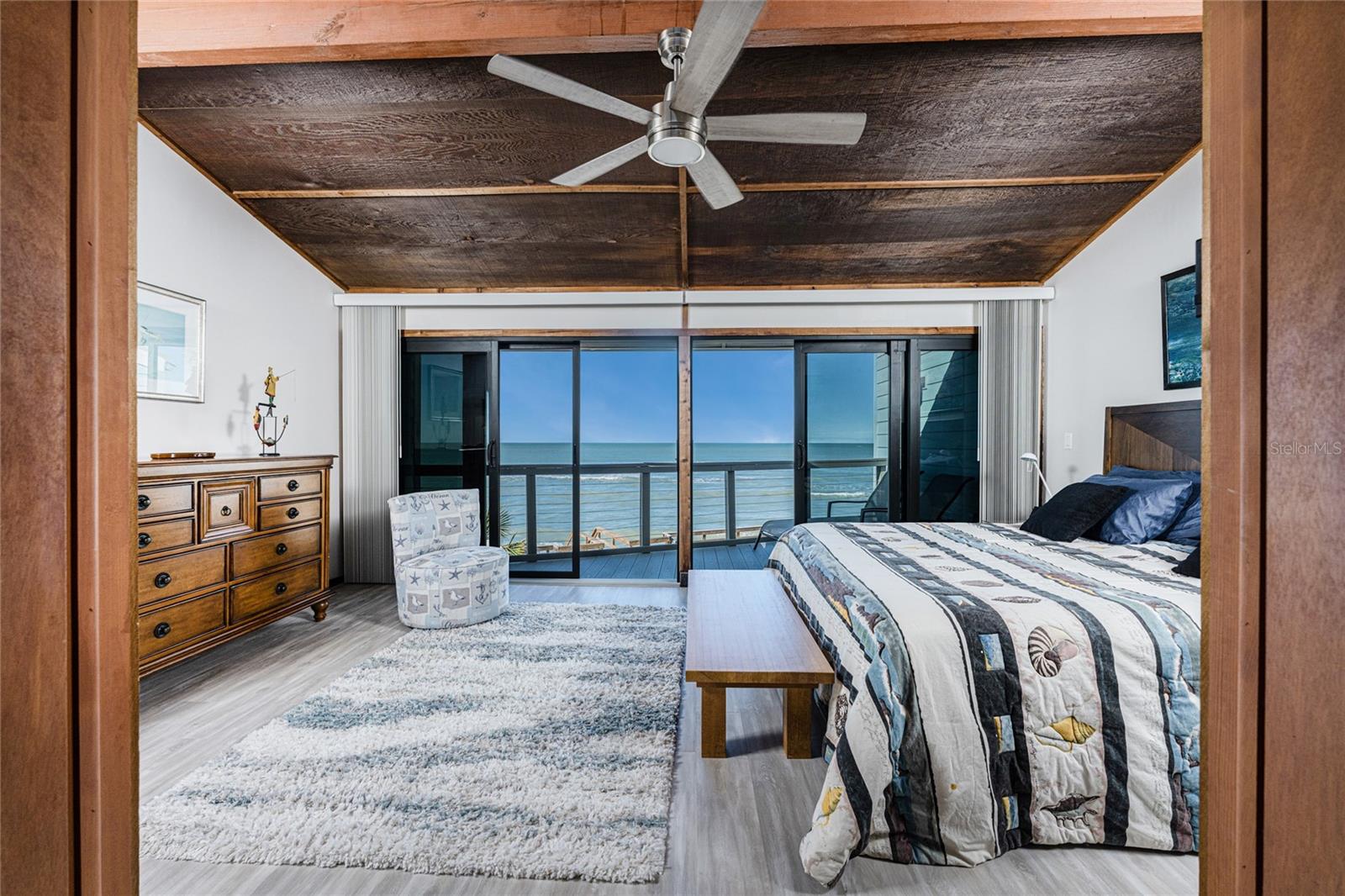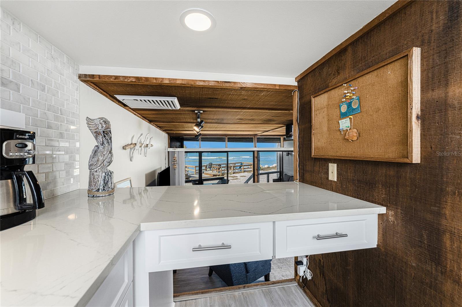 Welcome to Banyan Bluff Condominiums, a private four-residence townhome community set directly along the Gulf front of Manasota Key in Englewood, Florida. This lovely 3-bedroom, 2-bath multi-level townhome offers privacy and a tranquil atmosphere, positioned on more than an acre and comfortably set back from North Beach Road for added seclusion. The first living level is elevated on pilings approximately 16 feet above sea level, and the layout maximizes sweeping Gulf views and breathtaking sunsets from most rooms. A covered balcony off the main living area creates an inviting indoor-outdoor living space, ideal for dining outside or unwinding at day’s end. The beautifully updated kitchen includes new stainless steel appliances and quartz countertops. Upstairs, the top floor primary bedroom suite offers a vaulted ceiling, walk-in closet, an updated en-suite bathroom, and recently replaced storm-rated sliders that open to a private open balcony overlooking the Gulf. Both guest bedrooms include storm-rated windows and the guest bathroom is located just beyond the kitchen and adjoining dining area. Convenient parking includes two under-building spaces and an EV charging port. The tiled entry foyer includes an adjoining utility room with a new washer/dryer, utility sink and room for storage. The townhome is being offered turnkey furnished. Whether you choose to make it your own or place it in a rental program, this condo offers outstanding versatility. Banyan Bluff residents also enjoy a Gulf-front wooden deck, perfect for soaking up the sun or enjoying evening sunsets. Other notable updates include a metal roof in 2023, a newer electrical panel, and tankless water heater. A rare opportunity to own a stunning beachfront townhome in a quiet, exclusive setting.
