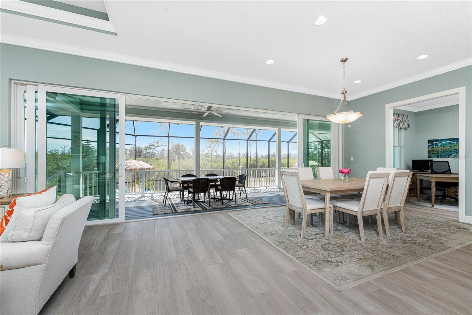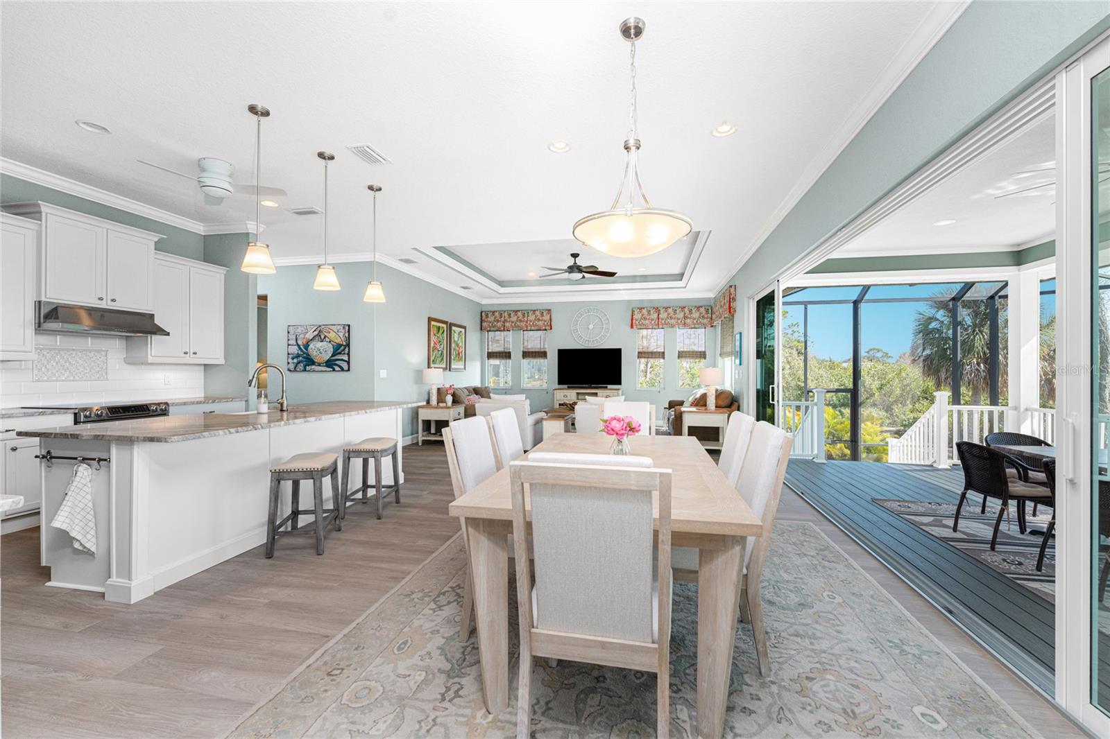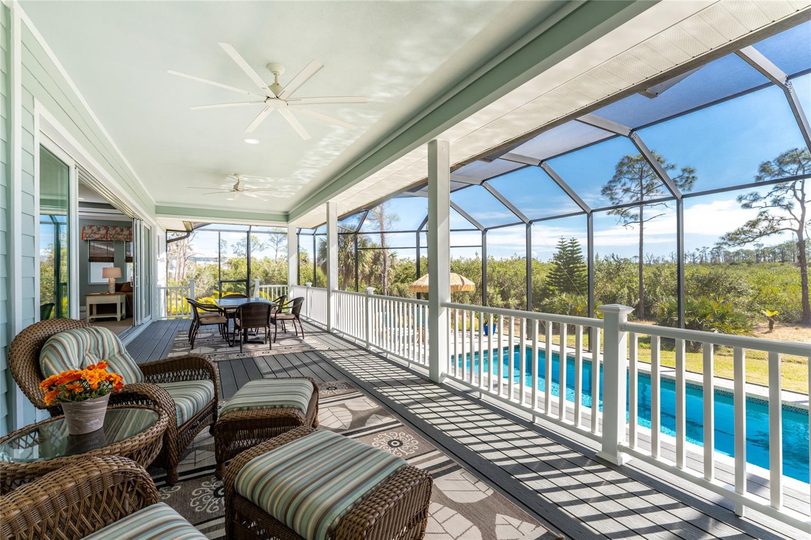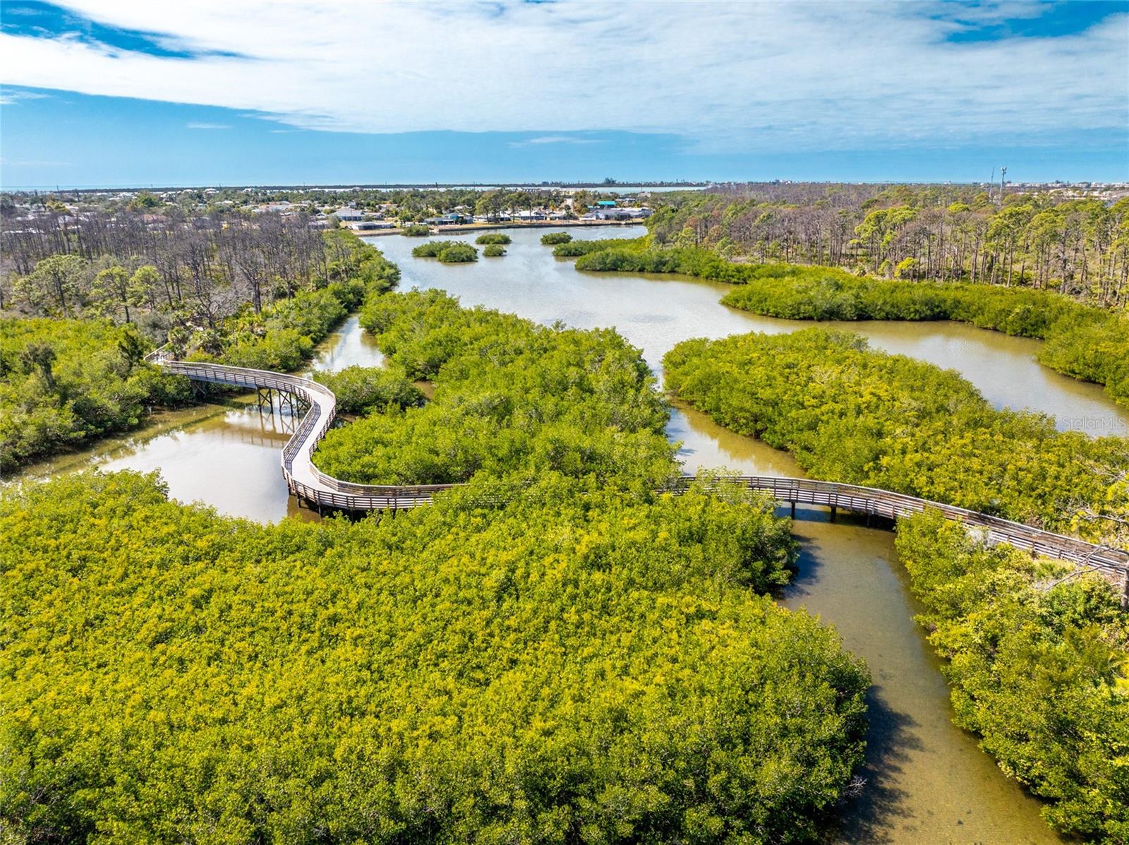 Tucked away where most people don’t even know to look, Hidden Waters lives up to its name. Set within a gated enclave of just 19 homesites, this private waterfront retreat is surrounded by HUNDREDS OF ACRES OF PROTECTED LAND, offering a rare blend of luxury, privacy, and direct access to nature that simply can’t be recreated. Step outside and you’re immediately connected to two major parks—Cedar Point Environmental and Ann & Chuck Dever Regional—linked by miles of walking, biking, and boardwalk trails starting right within the neighborhood. For those who live best on the water, a PRIVATE 30’ DOCK provides effortless shallow boat, kayaking and paddleboard access through winding mangroves channels of Oyster Creek out to Lemon Bay, the Intracoastal Waterway, and the Gulf beyond. Spend mornings cruising with manatees, afternoons fishing the backwaters, or bike to the nearby recreation center and local amenities including pickleball courts, playgrounds, splash pad, dog park and more! Larger boats are easily accommodated at nearby full-service marinas with a neighborhood day dock close by. BUILT WITH INTENTION IN 2015 and lovingly maintained, the home blends coastal architecture with modern functionality and can be negotiated TURN-KEY FURNISHED! For your peace of mind—this home features an ELEVATED living level, hurricane-rated IMPACT GLASS WINDOWS AND SLIDERS, a whole-house surge protector and a 2023 STANDING SEAM METAL ROOF. For charm and aesthetics—a welcoming front porch, high decorative ceilings, quality finishes, and expansive walls of glass frame SWEEPING PRESERVE VIEWS and dissolve the boundary between indoor and outdoor living. The open floor plan anchors the center of the home, where the kitchen, dining, and living areas flow together for everyday ease or curated gatherings. Thoughtfully designed for privacy, the split-bedroom layout places the primary suite apart from the guest rooms, creating a true retreat with direct lanai access, peaceful views, two walk-in closets, and a spacious ensuite bath. Two additional bedrooms are tucked at the front of the home on opposite sides of the foyer, each with large closets, bright natural light, and easy access to the second bathroom—perfect for guests while maintaining separation and comfort. Outside, an expansive SOUTHERN-EXPOSURE LANAI features composite decking overlooking your large SALTWATER POOL with outdoor shower and screened enclosure—designed for year-round enjoyment and effortless entertaining. Additional highlights include a FLEXIBLE OFFICE/DEN that connects seamlessly to the main living space and the back hall near the primary suite, making it convenient yet unobtrusive, an interior laundry room PLUS an OVERSIZED, TALL GARAGE with room for extra storage, hobbies, or toys! This home is a dream come true, positioned for tranquility with no rooftops and no road noise… just water, wildlife, and layered greens as far as the eye can see. Hidden Waters is a friendly, down-to-earth community where neighbors value privacy, nature, and quality of life over pretense. Although quietly tucked away, you’re still centrally located with easy access to everyday conveniences, area beaches, golf courses, and everything beyond. In a world filled with noise and overdevelopment, this property offers sanctuary in a setting that truly feels untouched. Call today to experience everything it has to offer!