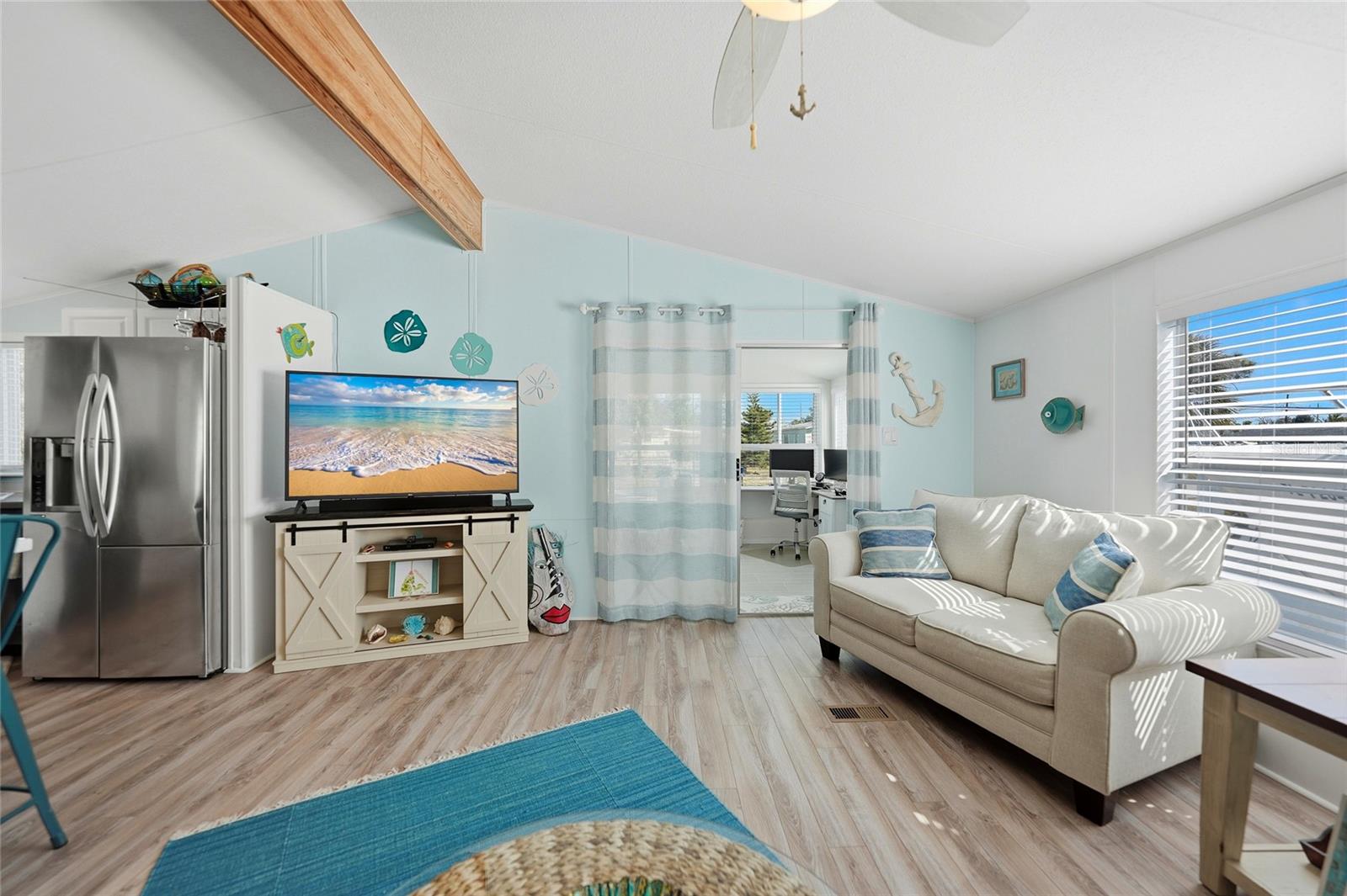 Completely remodeled and absolutely adorable, this 2 bedroom, 2 bathroom home with a bonus office offers effortless coastal living with a serene pond view. Step inside to an open, airy floor plan filled with beach-inspired décor and sea-shore color tones that create a relaxed Florida feel throughout. The stunning kitchen is a true highlight, featuring solid surface countertops, a glass tile backsplash, and plenty of workspace—perfect for both everyday living and entertaining. Engineered hardwood flooring flows seamlessly throughout the home, adding durability and modern style. The flexible office space is ideal for remote work, hobbies, or accommodating guests. Enjoy the convenience of a carport, low-maintenance living, and a peaceful setting, all just minutes from shopping and dining. Spend your days exploring Englewood Beach, nearby marinas, or launching your boat at a public boat ramp close by. Historic charm and local favorites await along Dearborn Street, only a short 10–15 minute drive away. Whether you’re searching for a full-time residence, seasonal retreat, or easy Florida getaway, this move-in-ready home delivers comfort, style, and location—all in one charming package.