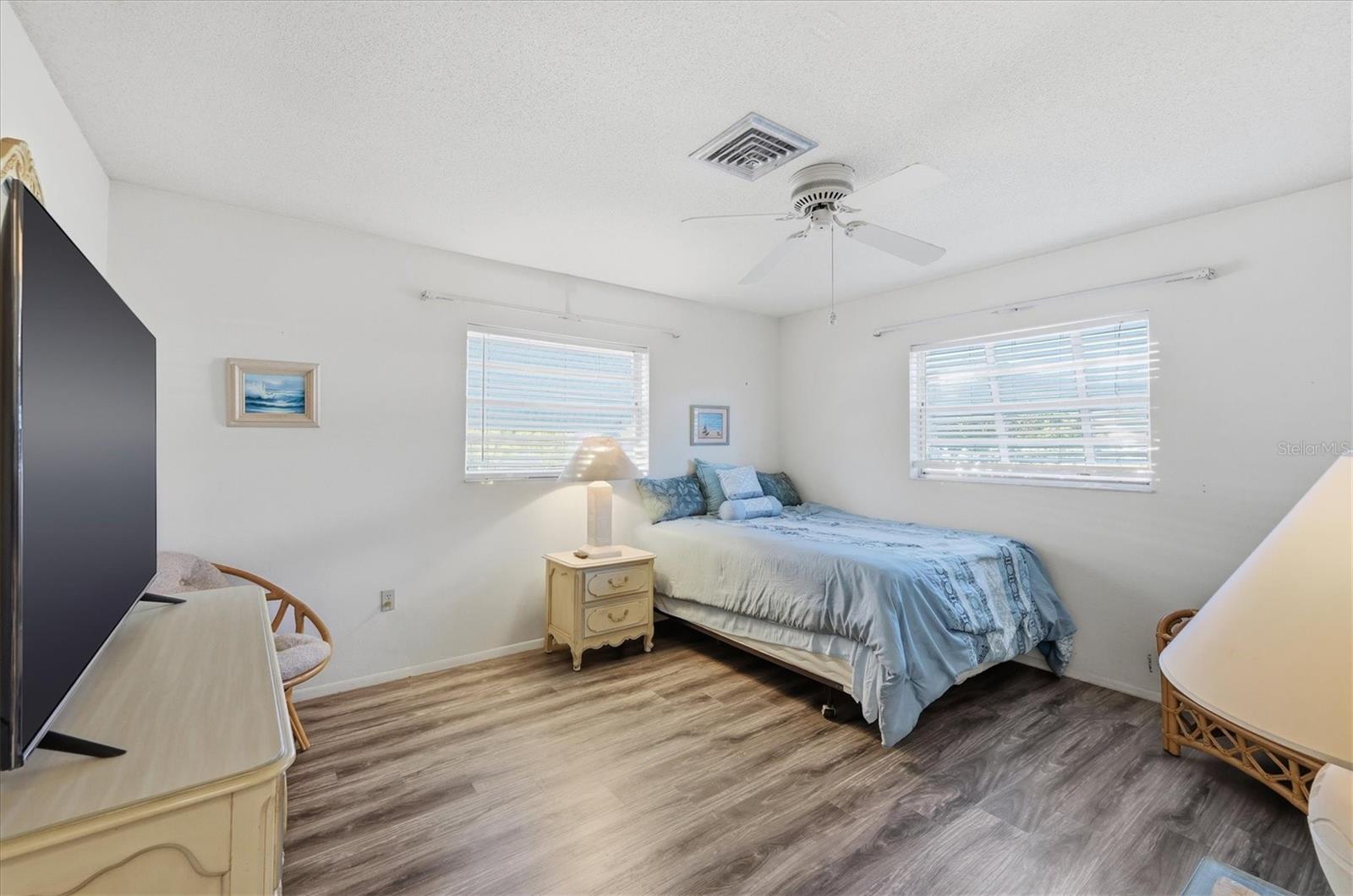 This charming, fully furnished home is perfectly positioned just 2.2 miles from the beautiful shores of Englewood Beach, where salt air, Gulf breezes, and laid-back living are part of everyday life. Offering over 1,100 square feet of well-designed living space, this home features two primary bedroom suites, making it ideal for a variety of living arrangements, guests, or even dual primary setups. One suite is located just off the kitchen and dining area, while the second is privately situated off the living room, creating a great split bedroom layout. Step outside and enjoy the spacious 22x10 patio, complete with a metal fenced-in area that is perfect for Fido and ideal for morning coffee, evening cocktails, grilling with friends, or simply soaking up the Florida sunshine. In addition, there is a large 28x15 concrete slab on the side of the home, perfect for all your toys or additional parking. The property features a hardscaped design with no grass areas, so no lawn maintenance is needed and upkeep is minimal. The 1.5 car garage has been thoughtfully converted into a comfortable bonus TV or flex room with a full screen door that brings in plenty of natural light and fresh air. Prefer traditional garage space? It can easily be converted back if desired. This home is being offered fully furnished, making it perfect as a full-time residence, seasonal getaway, or investment property. Everyday conveniences are close by, including the hospital, YMCA, shopping, dining, and grocery stores. You are also within easy reach of both Punta Gorda Airport and Sarasota International Airport for effortless travel. Recent updates include a new roof in March 2023 and an updated electrical panel in November 2023, offering peace of mind and long-term value. Whether you are searching for a relaxed beach retreat, a winter escape, or your own piece of Florida paradise, this home checks all the boxes. All that is missing is you and the memories you will create here.