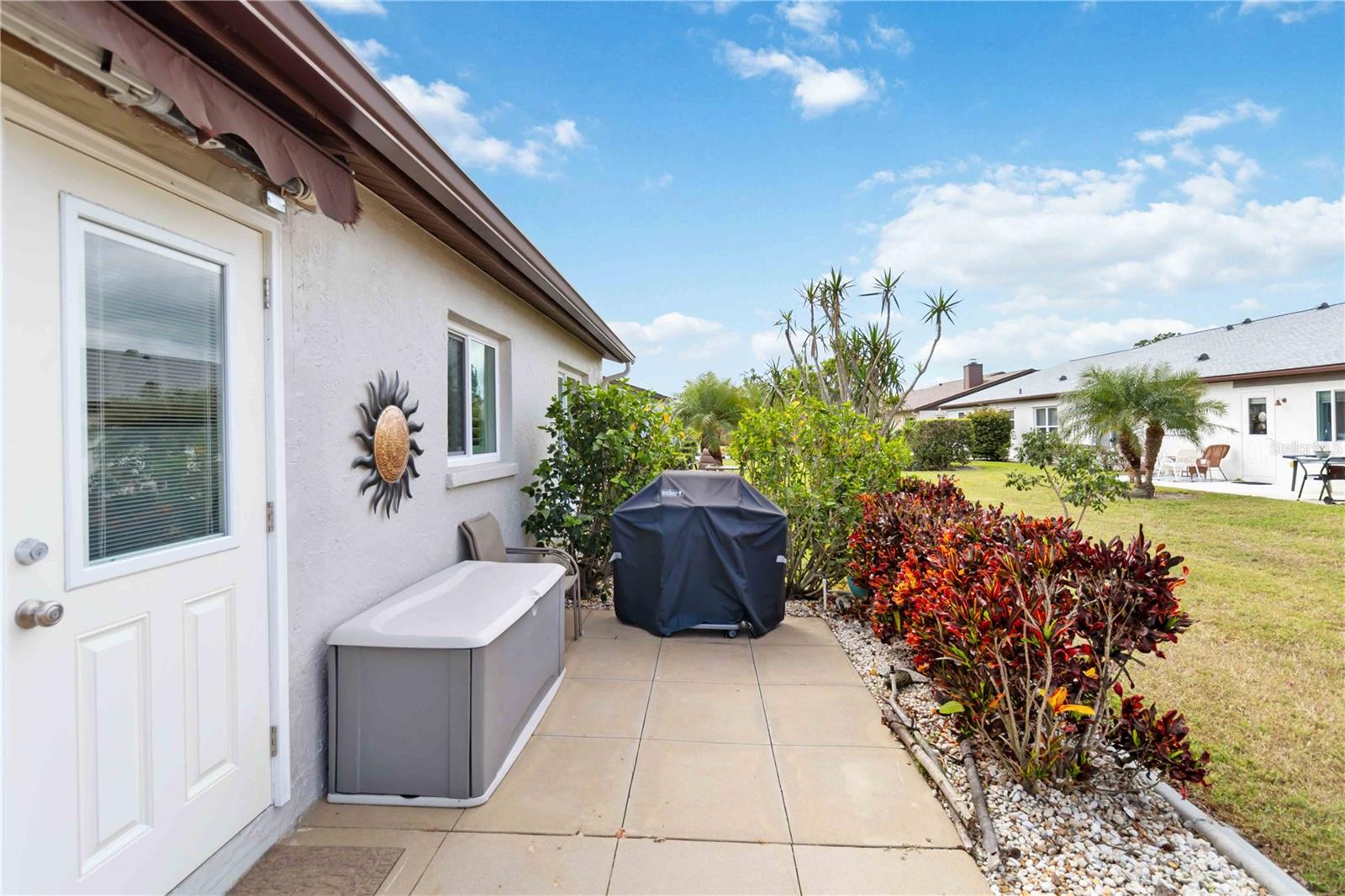Move right in to this beautifully updated villa style home in Foxwood’s 55+ community. Updates include hurricane impact windows throughout, newer roof, newer hot water heater, retractable patio awning, updated kitchen including quartz countertops and soft close drawers and cabinets, plantation shutters, updated guest bathroom and newly updated master bathroom, updated flooring (no carpet!), updated electrical outlets with USB ports, and a custom dry bar! This home is immaculate! With 2 bedrooms, 2 bathrooms, and a spacious 1,498 square feet, this home provides ample room for comfortable living. The updated kitchen has plenty of storage space including a large pantry with slide out drawers. Through the living room is a Florida room with sliding doors that can be open or closed off (and even used as an additional bedroom!) leading to a back patio with retractable awning for enjoying the beautiful SWFL weather! The split floor plan offers privacy with bedrooms on both sides of the house. This home has a desirable inside laundry room which leads to a spacious 2-car garage. Located in the X Flood Zone - no flood insurance is required. This home is in close proximity to Manasota Key Beach, Dearborn St. in downtown Englewood, numerous golf courses, excellent restaurants, and a plethora of shopping options. Outdoor enthusiasts will delight in the abundance of activities available. Within the Foxwood community itself, you'll find an array of amenities to enjoy. It’s just a short walk or golf cart ride to the fun-filled clubhouse which offers different activities daily, ensuring there's always something exciting happening. Take a refreshing dip in the heated pool, engage in the popular sport of pickleball, or challenge your friends to a game of tennis. Furthermore, the community is golf cart-friendly!! This home and community have everything you need to enjoy life!