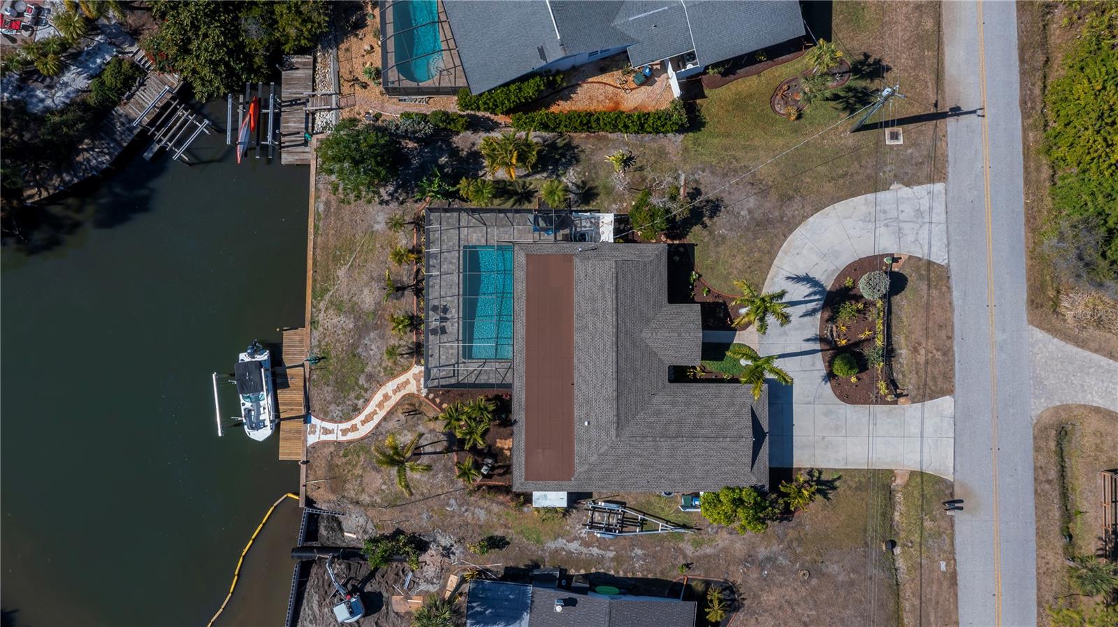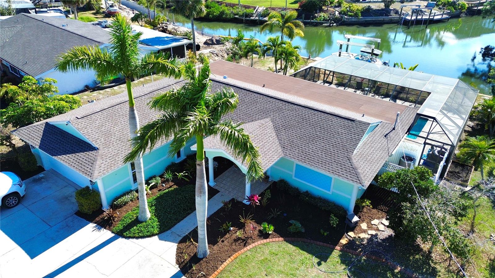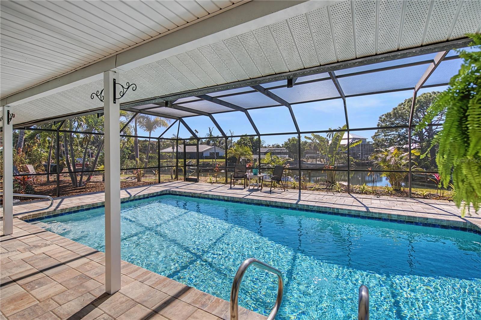 Welcome to “Sunset Point on Lemon Bay” where refined coastal living meets an effortless boating lifestyle—just steps from your own backyard. Set along 85 feet of premier saltwater frontage, this exceptional residence overlooks an extra-wide canal with immediate access to Lemon Bay, placing open water within minutes of departure. A brand-new 13,000-lb boat lift and 35’ dock create the ultimate setup for boating enthusiasts, while nightly sunset views and frequent visits from manatees and native wildlife elevate the experience to something truly special. Arriving home, an oversized circular driveway framed by two majestic Royal Palms sets a tone of understated grandeur. Inside, the home has been meticulously updated with no detail overlooked—expansive marble tile flooring, crown molding, wide baseboards, and seamless indoor-outdoor living through pocketing sliders from both the living and dining areas. Designed for entertaining, the outdoor living space is nothing short of spectacular. A massive 1,850 sq ft screened enclosure surrounds the heated, recently resurfaced pool, complemented by a covered brick-paver lanai and fully equipped summer kitchen—perfect for hosting sunset gatherings after a day on the water. A pool-access bath adds convenience and function for guests. The modern coastal kitchen features marble countertops, stainless steel appliances, a generous breakfast bar, chic pendant lighting, and designer tile backsplash, seamlessly connecting to the home’s open living areas. A split-bedroom layout ensures privacy, while the primary suite offers a tranquil retreat complete with a private sitting room and French doors leading to the backyard oasis. The spa-inspired en-suite bath showcases dual vanities, granite countertops, and a seamless glass shower. Recent upgrades include a new roof (2022), new A/C (2024), new sprinkler system (2024), new pool heater (2024), fresh interior and exterior paint (2024), and the convenience of city water and sewer. The bonus space in the master bedroom could easily be converted to a third bedroom! Perfectly positioned in a rare neighborhood of estate-sized homes and properties, this residence offers both privacy and proximity—just 3 miles to historic Dearborn Street with its farmers markets, car shows, live entertainment, dining, and boutique shopping, minutes to four stunning Gulf beaches, and a short drive to Venice. This is more than a home—it’s a waterfront lifestyle defined by sunsets, serenity, and seamless access to the open water. Schedule your showing and experience it for yourself TODAY!