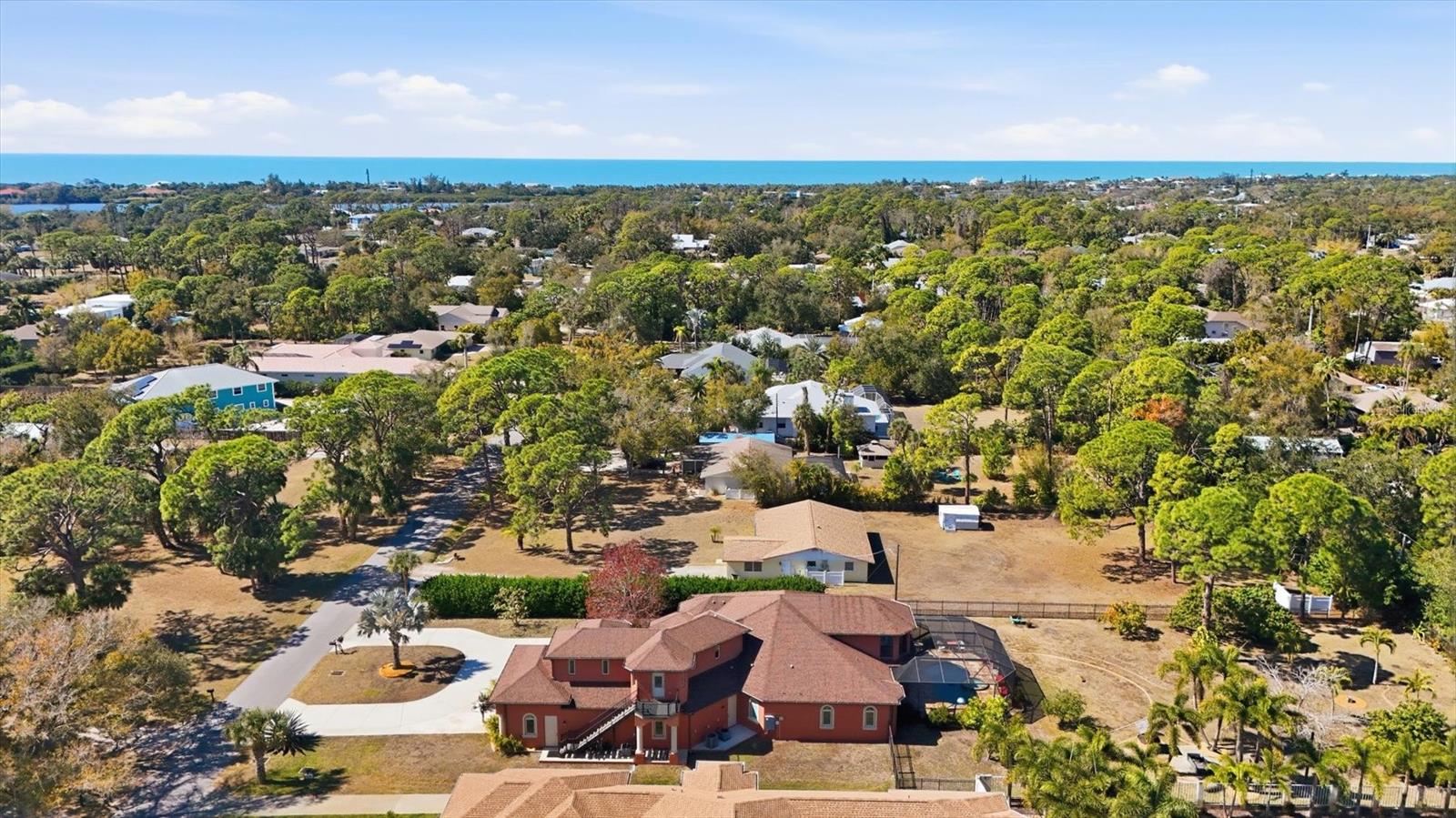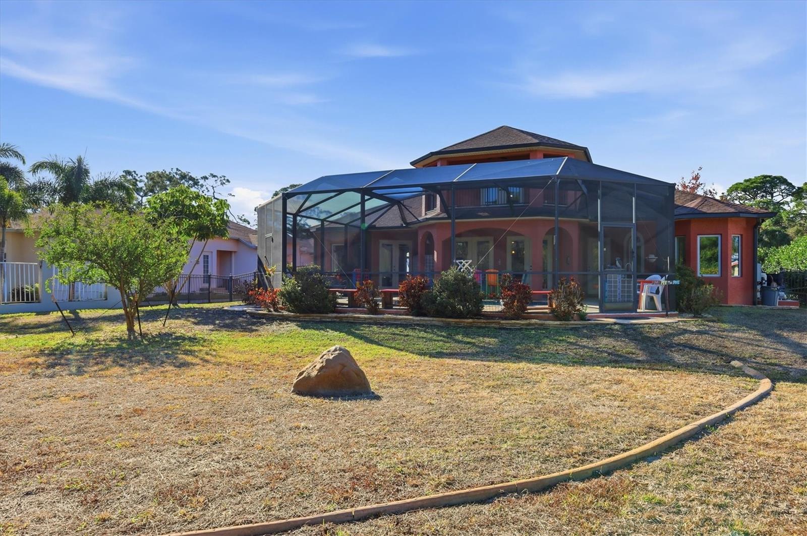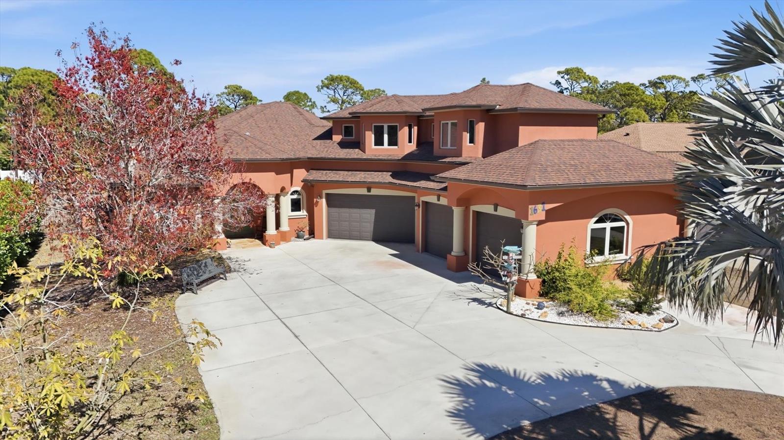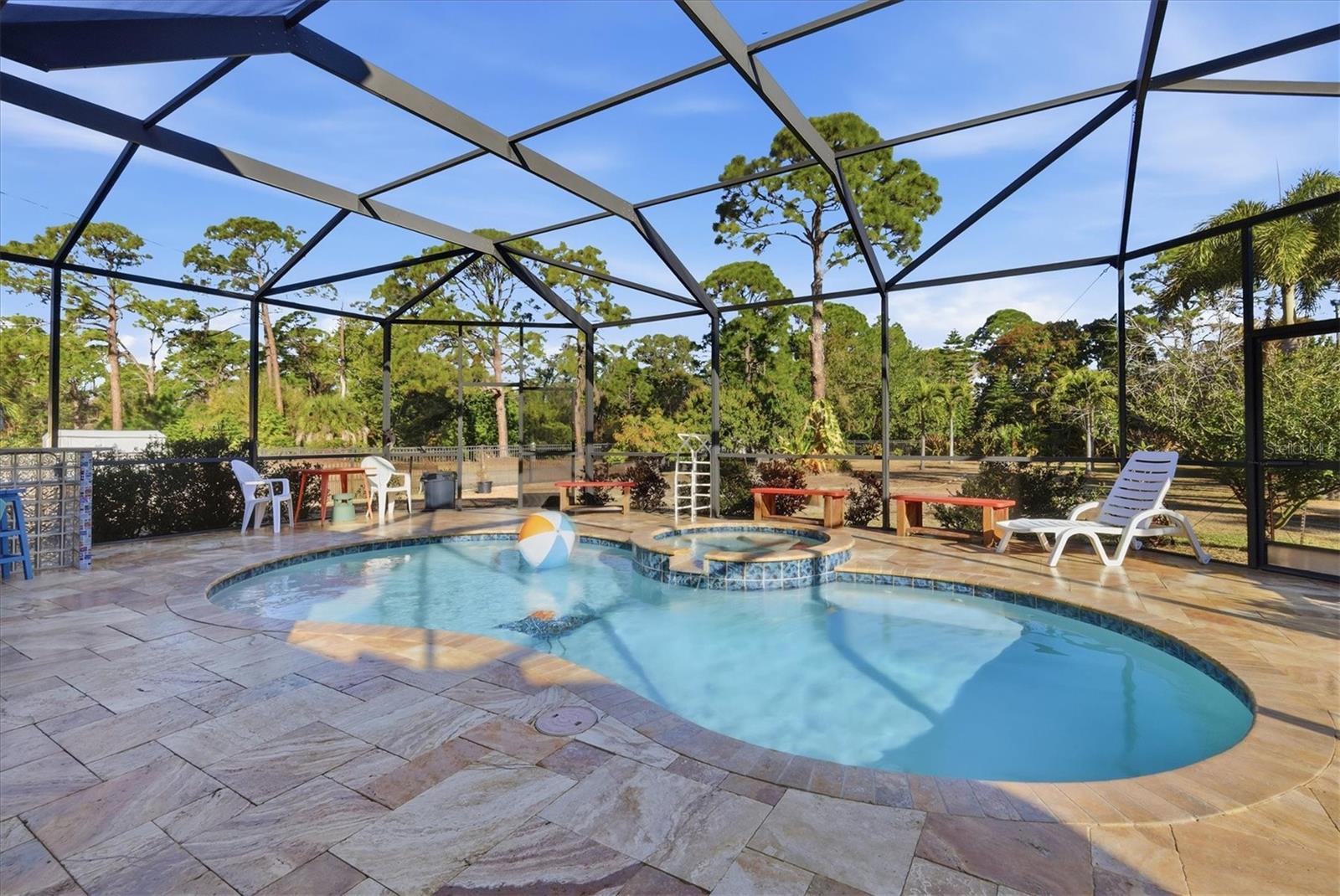 Discover an exceptional blend of luxury, engineering, and versatility at 1631 Maria Street in Englewood, Florida. Built in 2016 and offering 3,582 square feet under air, this 4-bedroom, 3-bathroom estate is thoughtfully designed for refined living, advanced functionality, and long-term comfort. This home is located on a highly desired dead-end street, so no need to worry about through traffic. As well as being in an X-flood zone and no HOA allowing for peace of mind along with privacy. The residence showcases solid custom cherry cabinetry throughout, paired with premium Cambria countertops that deliver both durability and timeless elegance. Architectural features include arched openings, volume ceilings, and carefully curated finishes that create a cohesive and upscale interior. Impact-rated glass doors and windows enhance storm protection, security, and energy efficiency while allowing abundant natural light. The main living spaces flow seamlessly to the outdoor retreat, where a resort-style pool with integrated hot tub is surrounded by a screened enclosure and generous entertaining space—ideal for year-round enjoyment. The outdoor area is supported by well irrigation and a 12-zone full-lot irrigation system, maintaining the lush landscaping and extensive fruit tree collection with efficiency. A standout feature of the home is the separate in-law suite, complete with a full kitchen and private entrance, offering exceptional flexibility for extended stays or private accommodations. A dedicated theater room, professionally hardwired for a 7-speaker surround sound system, and private balcony, enhances the home’s entertainment capabilities. Cat 5 cable wiring is installed throughout the main home, garage, and in-law suite, supporting modern connectivity and technology needs. Infrastructure and storage are equally impressive. The home includes a large 4-car garage, an elevator shaft located within the garage with a breakaway floor in the guest suite, and an in-ground safe for added security. A vented pantry with complete plumbing hookups, clearly marked, allows for conversion into a convenient pool half bath. Additional features include outlets in exterior soffits designed for seasonal or architectural lighting, an additional electric circuit at the well pump with underground conduit, and impact-rated systems throughout. The fully fenced backyard includes added puppy protection and features a mature collection of fruit-bearing trees, including Kent, Carrie, and Nam Dok Mai mango trees, along with Barbados cherry, fig, large mulberry, and lychee, creating a distinctive and functional outdoor environment. Conveniently located approximately one mile from Manasota Beach, the property also provides easy access to shopping, dining, boating, fishing, golf courses, and a wide range of recreational and entertainment amenities, offering an exceptional balance of privacy, luxury, and coastal lifestyle.