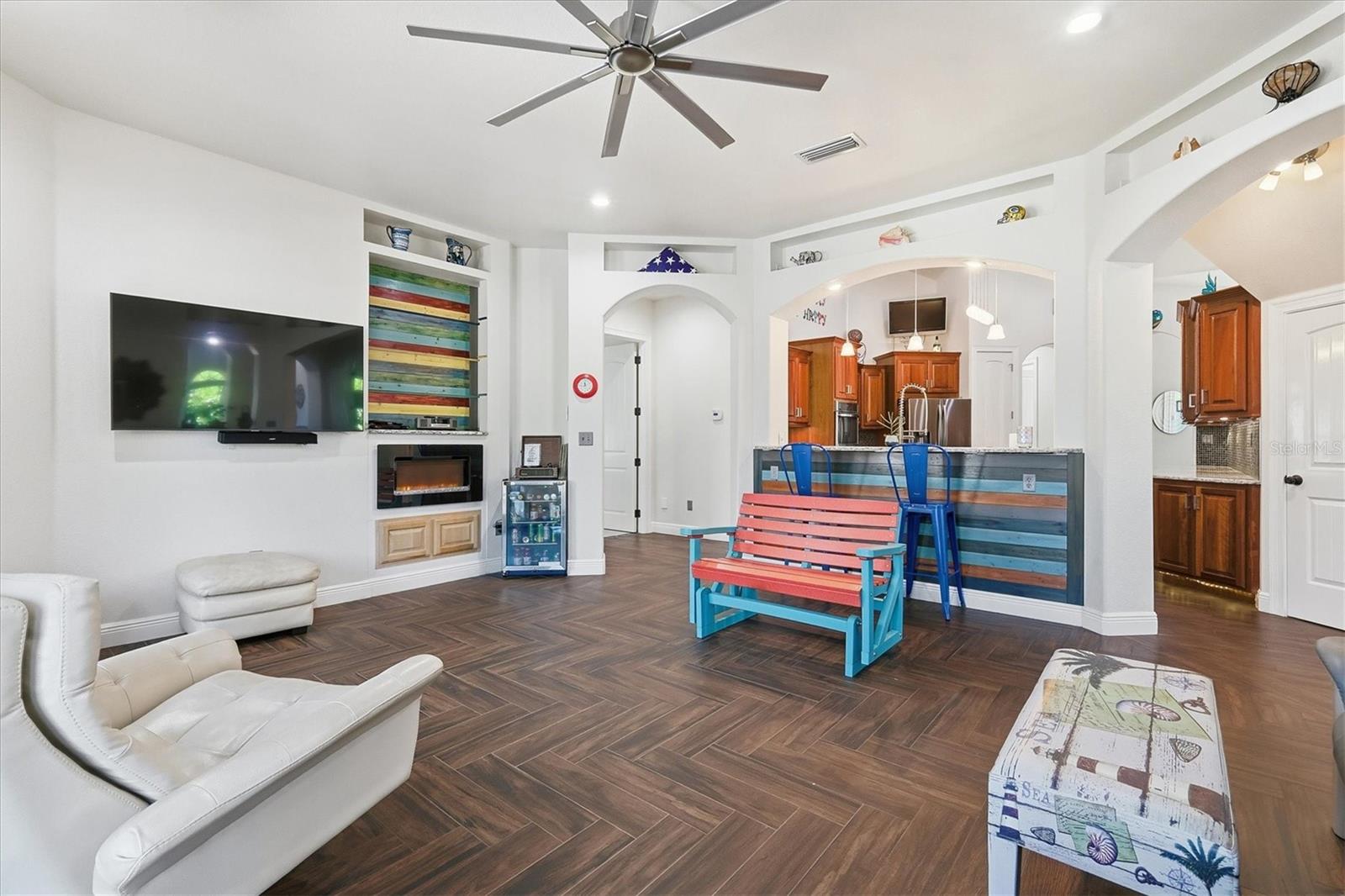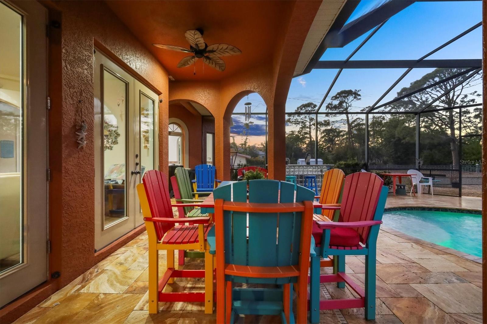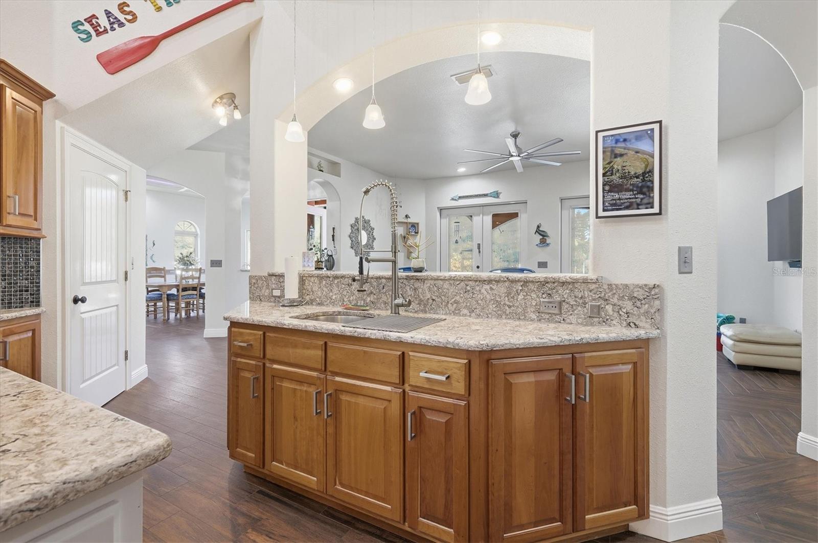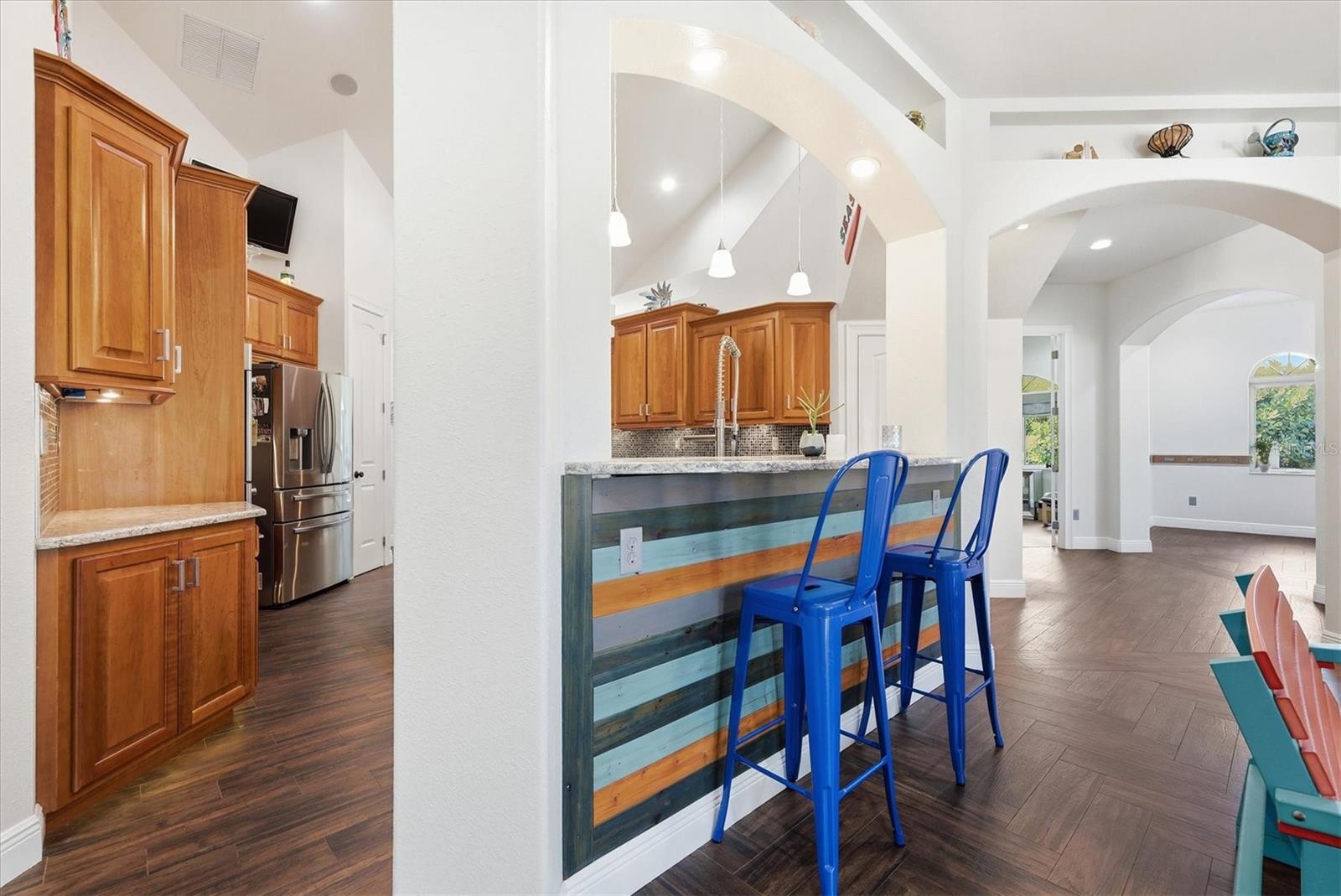 Discover an exceptional blend of luxury, engineering, and versatility at 1631 Maria Street in Englewood, Florida. Built in 2016 and offering 3,582 square feet under air, this 4-bedroom, 3-bathroom estate is thoughtfully designed for refined living, advanced functionality, and long-term comfort. This home is located on a highly desired dead-end street, so no need to worry about through traffic. As well as being in an X-flood zone and no HOA allowing for peace of mind along with privacy. The residence showcases solid custom cherry cabinetry throughout, paired with premium Cambria countertops that deliver both durability and timeless elegance. Architectural features include arched openings, volume ceilings, and carefully curated finishes that create a cohesive and upscale interior. Impact-rated glass doors and windows enhance storm protection, security, and energy efficiency while allowing abundant natural light. The main living spaces flow seamlessly to the outdoor retreat, where a resort-style pool with integrated hot tub is surrounded by a screened enclosure and generous entertaining space—ideal for year-round enjoyment. The outdoor area is supported by well irrigation and a 12-zone full-lot irrigation system, maintaining the lush landscaping and extensive fruit tree collection with efficiency. A standout feature of the home is the separate in-law suite, complete with a full kitchen and private entrance, offering exceptional flexibility for extended stays or private accommodations. A dedicated theater room, professionally hardwired for a 7-speaker surround sound system, and private balcony, enhances the home’s entertainment capabilities. Cat 5 cable wiring is installed throughout the main home, garage, and in-law suite, supporting modern connectivity and technology needs. Infrastructure and storage are equally impressive. The home includes a large 4-car garage, an elevator shaft located within the garage with a breakaway floor in the guest suite, and an in-ground safe for added security. A vented pantry with complete plumbing hookups, clearly marked, allows for conversion into a convenient pool half bath. Additional features include outlets in exterior soffits designed for seasonal or architectural lighting, an additional electric circuit at the well pump with underground conduit, and impact-rated systems throughout. The fully fenced backyard includes added puppy protection and features a mature collection of fruit-bearing trees, including Kent, Carrie, and Nam Dok Mai mango trees, along with Barbados cherry, fig, large mulberry, and lychee, creating a distinctive and functional outdoor environment. Conveniently located approximately one mile from Manasota Beach, the property also provides easy access to shopping, dining, boating, fishing, golf courses, and a wide range of recreational and entertainment amenities, offering an exceptional balance of privacy, luxury, and coastal lifestyle.