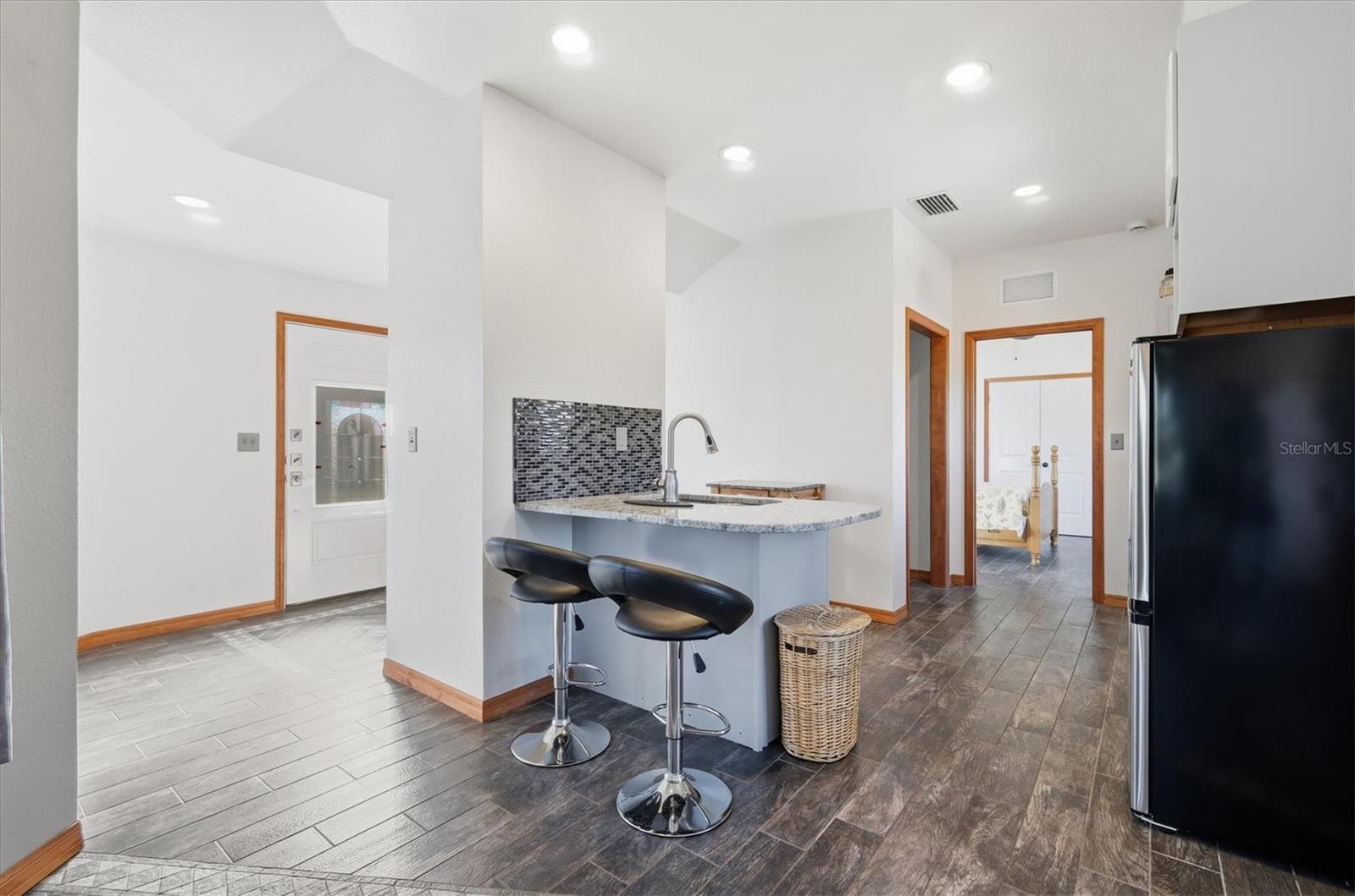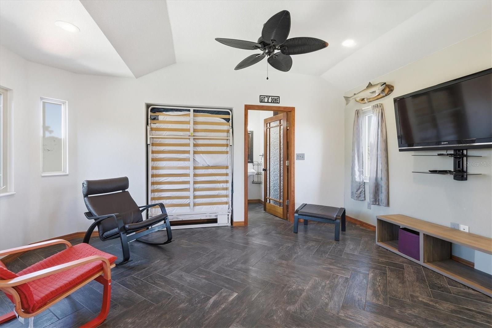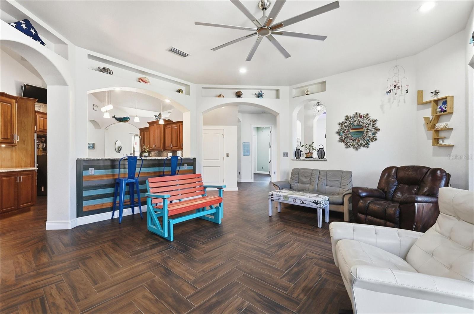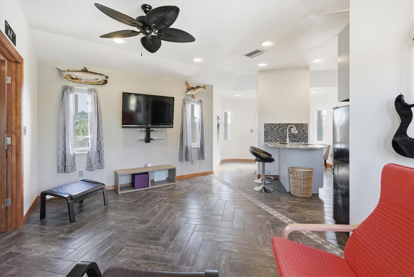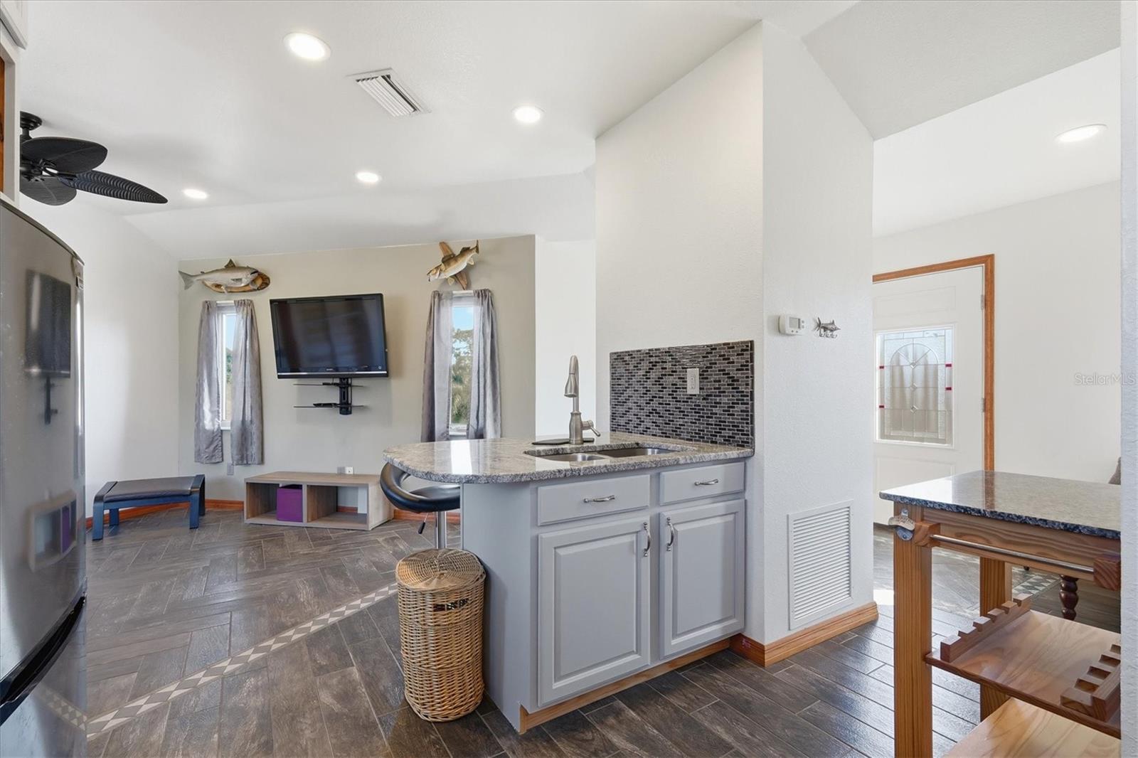 Discover an exceptional blend of luxury, engineering, and versatility at 1631 Maria Street in Englewood, Florida. Built in 2016 and offering 3,582 square feet under air, this 4-bedroom, 3-bathroom estate is thoughtfully designed for refined living, advanced functionality, and long-term comfort. This home is located on a highly desired dead-end street, so no need to worry about through traffic. As well as being in an X-flood zone and no HOA allowing for peace of mind along with privacy. The residence showcases solid custom cherry cabinetry throughout, paired with premium Cambria countertops that deliver both durability and timeless elegance. Architectural features include arched openings, volume ceilings, and carefully curated finishes that create a cohesive and upscale interior. Impact-rated glass doors and windows enhance storm protection, security, and energy efficiency while allowing abundant natural light. The main living spaces flow seamlessly to the outdoor retreat, where a resort-style pool with integrated hot tub is surrounded by a screened enclosure and generous entertaining space—ideal for year-round enjoyment. The outdoor area is supported by well irrigation and a 12-zone full-lot irrigation system, maintaining the lush landscaping and extensive fruit tree collection with efficiency. A standout feature of the home is the separate in-law suite, complete with a full kitchen and private entrance, offering exceptional flexibility for extended stays or private accommodations. A dedicated theater room, professionally hardwired for a 7-speaker surround sound system, and private balcony, enhances the home’s entertainment capabilities. Cat 5 cable wiring is installed throughout the main home, garage, and in-law suite, supporting modern connectivity and technology needs. Infrastructure and storage are equally impressive. The home includes a large 4-car garage, an elevator shaft located within the garage with a breakaway floor in the guest suite, and an in-ground safe for added security. A vented pantry with complete plumbing hookups, clearly marked, allows for conversion into a convenient pool half bath. Additional features include outlets in exterior soffits designed for seasonal or architectural lighting, an additional electric circuit at the well pump with underground conduit, and impact-rated systems throughout. The fully fenced backyard includes added puppy protection and features a mature collection of fruit-bearing trees, including Kent, Carrie, and Nam Dok Mai mango trees, along with Barbados cherry, fig, large mulberry, and lychee, creating a distinctive and functional outdoor environment. Conveniently located approximately one mile from Manasota Beach, the property also provides easy access to shopping, dining, boating, fishing, golf courses, and a wide range of recreational and entertainment amenities, offering an exceptional balance of privacy, luxury, and coastal lifestyle.