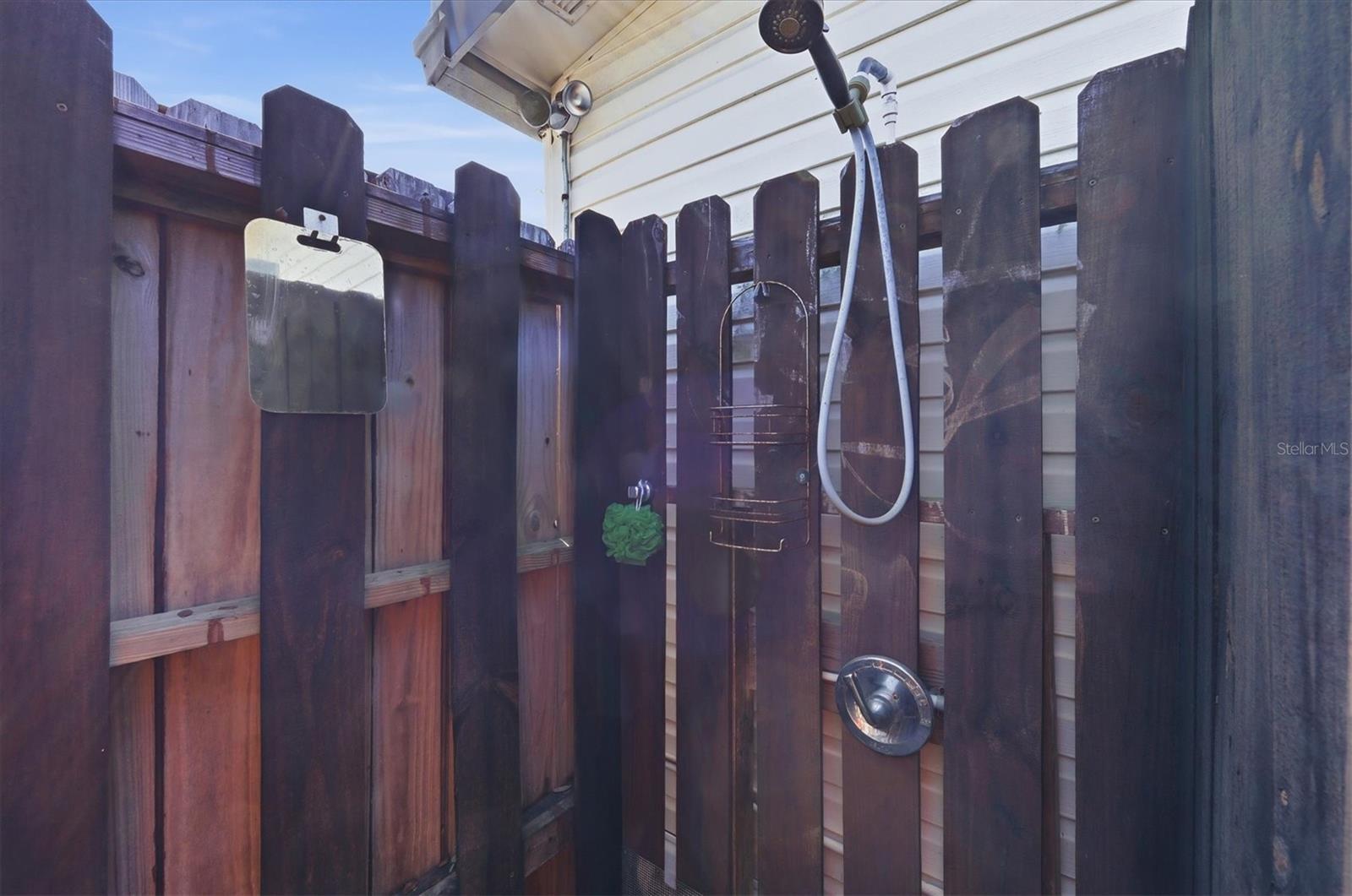 Awning(s), Lighting, Outdoor Shower, Rain Gutters, Storage